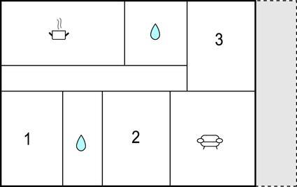 Baderom (nr. 1) - WC: Varmt og kaldt vann. Dusj