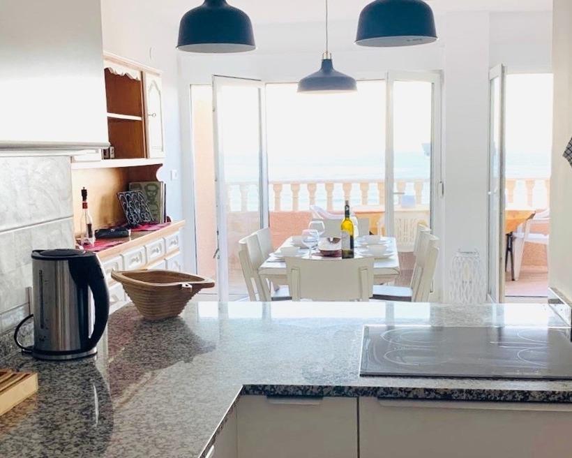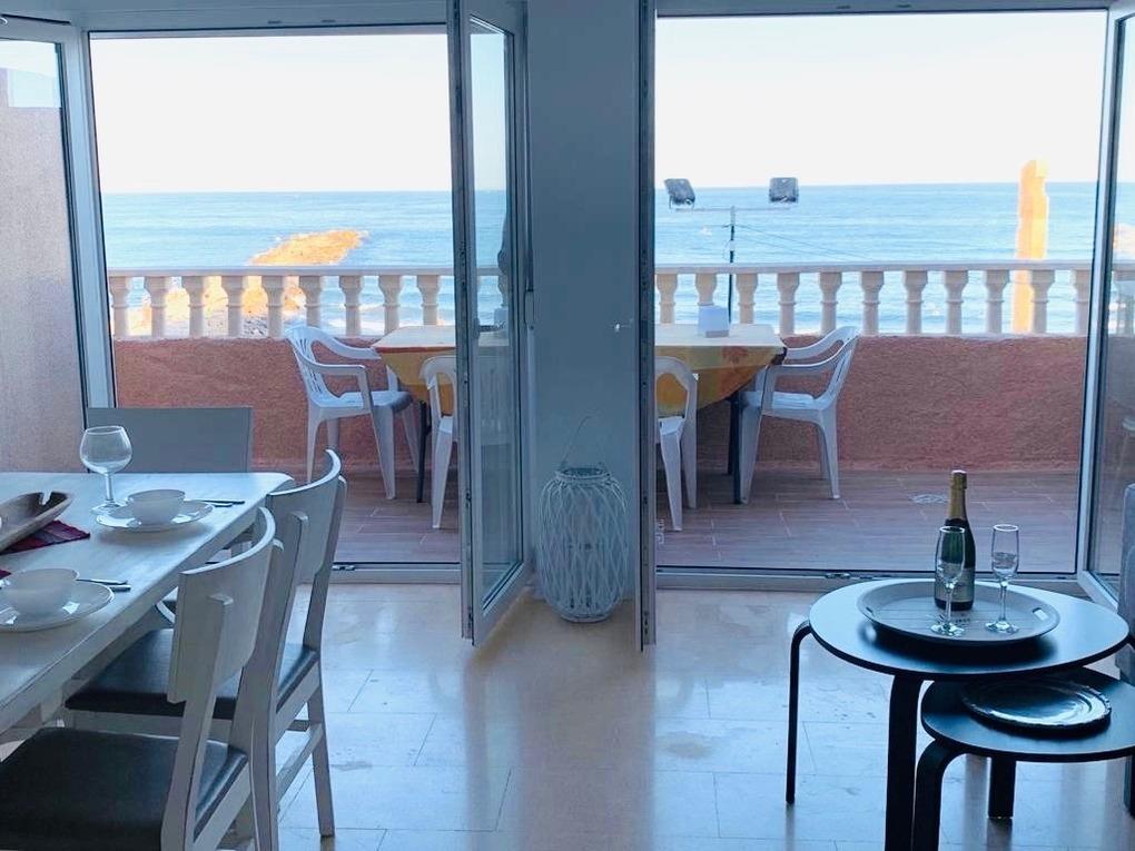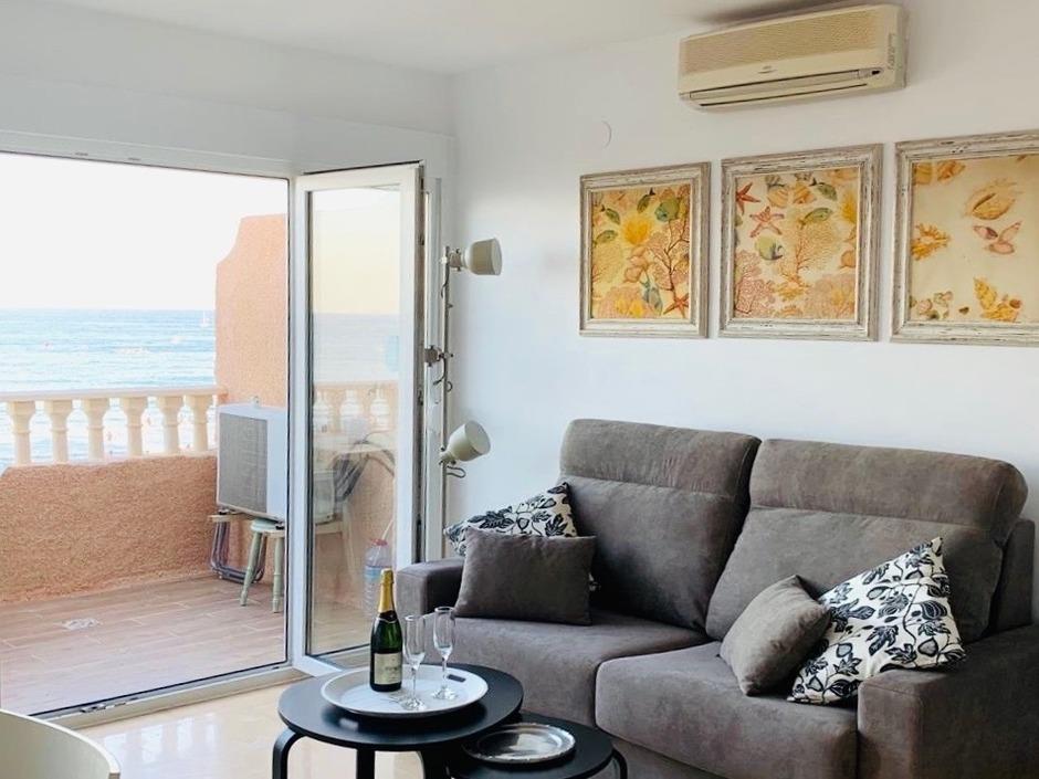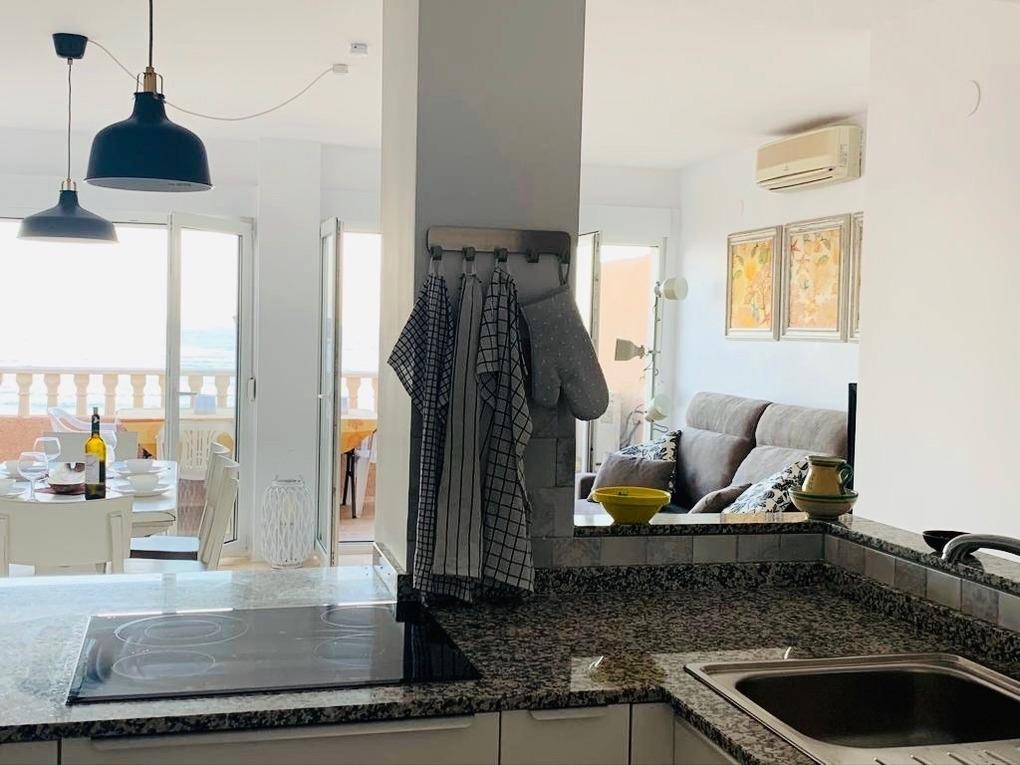 mit traumhaftem Blick aufs kristallklare Mittelmeer!. Diese 96m2 große, sonnige und gemütliche Maisonette-Wohnung befindet sich in zentraler Lage, direkt an der Promenade: Restaurants, Bars, Cafés, Apotheken, Geschäfte,… alles in unmittelbarer Nähe. Supermärkte und Straßenbahnhaltestelle in 4 Gehminuten erreichbar. Die modern und geschmackvoll eingerichtete Unterkunft bietet Ihnen 2 SZ mit je zwei Einzel-Betten, ein WZ mit Schlafsofa und Essecke, eine praktische KÜ im amerikanischen Stil - mit allen gängigen Küchengeräten, 2 BZ mit D und WC und einen möblierten Balkon. Beide SZ, Essecke, WZ und KÜ haben einen direkten Meerblick! Bettwäsche, Handtücher und Waschmaschine vorhanden, SAT-TV, WiFi, und AC mit Heizfunktion. Die Unterkunft in der 2. Etage ist mit Aufzug erreichbar und ist nur 29 Km bis von dem internationalen Flughafen Alicante entfernt.
