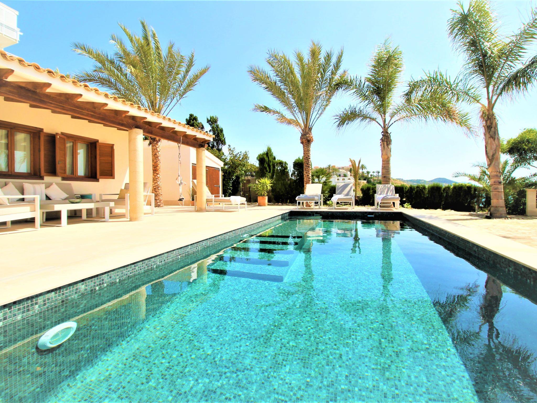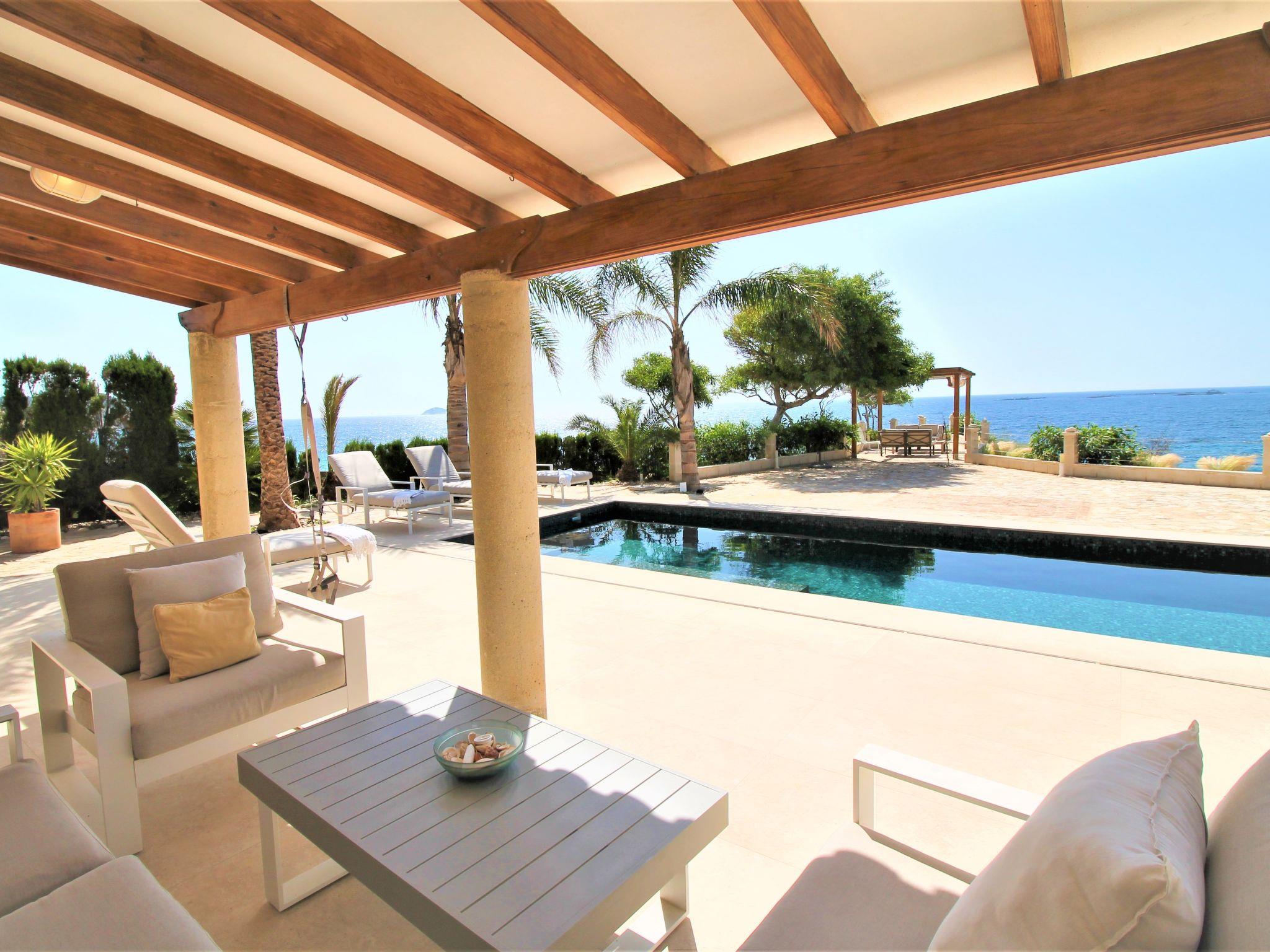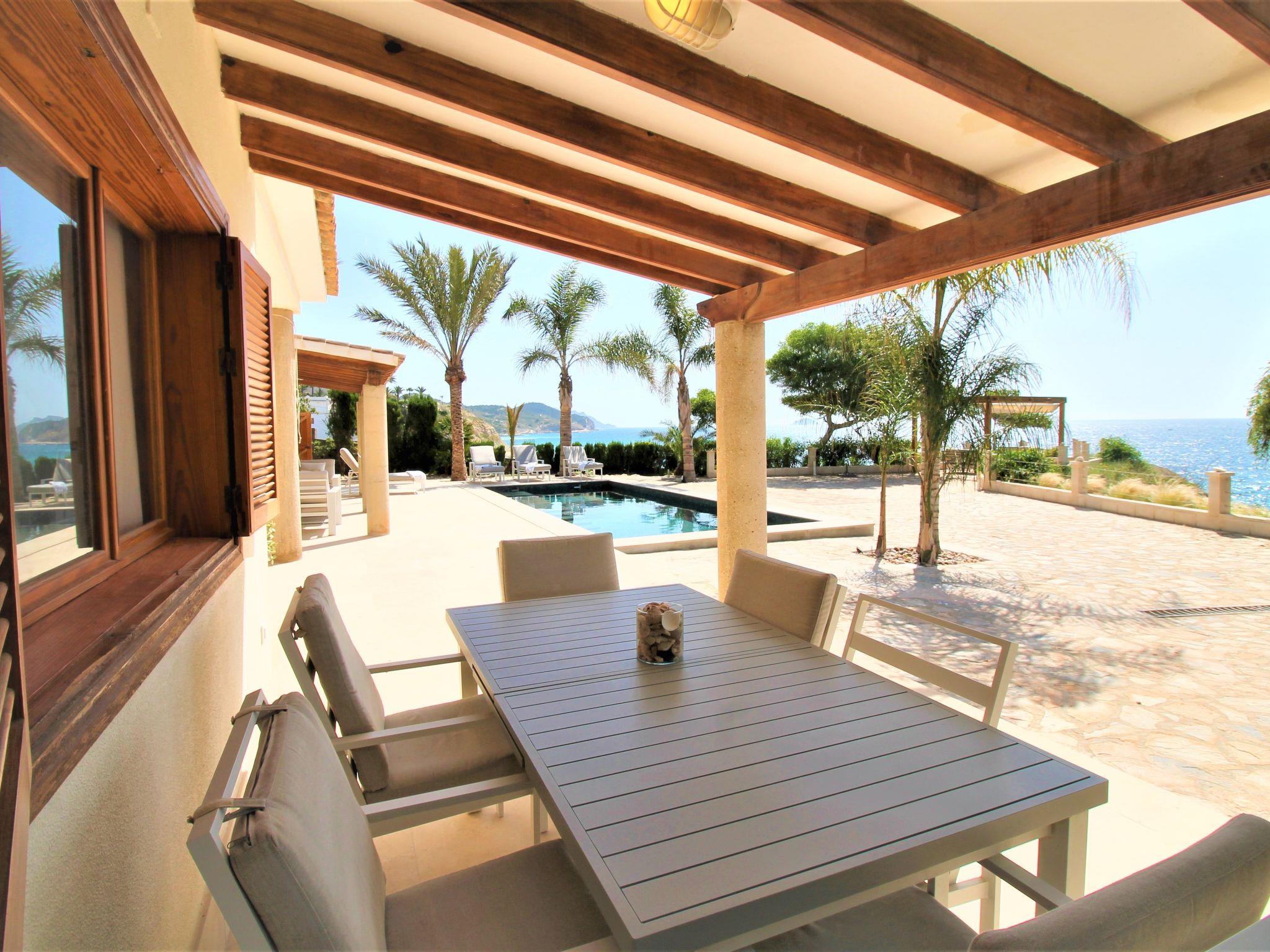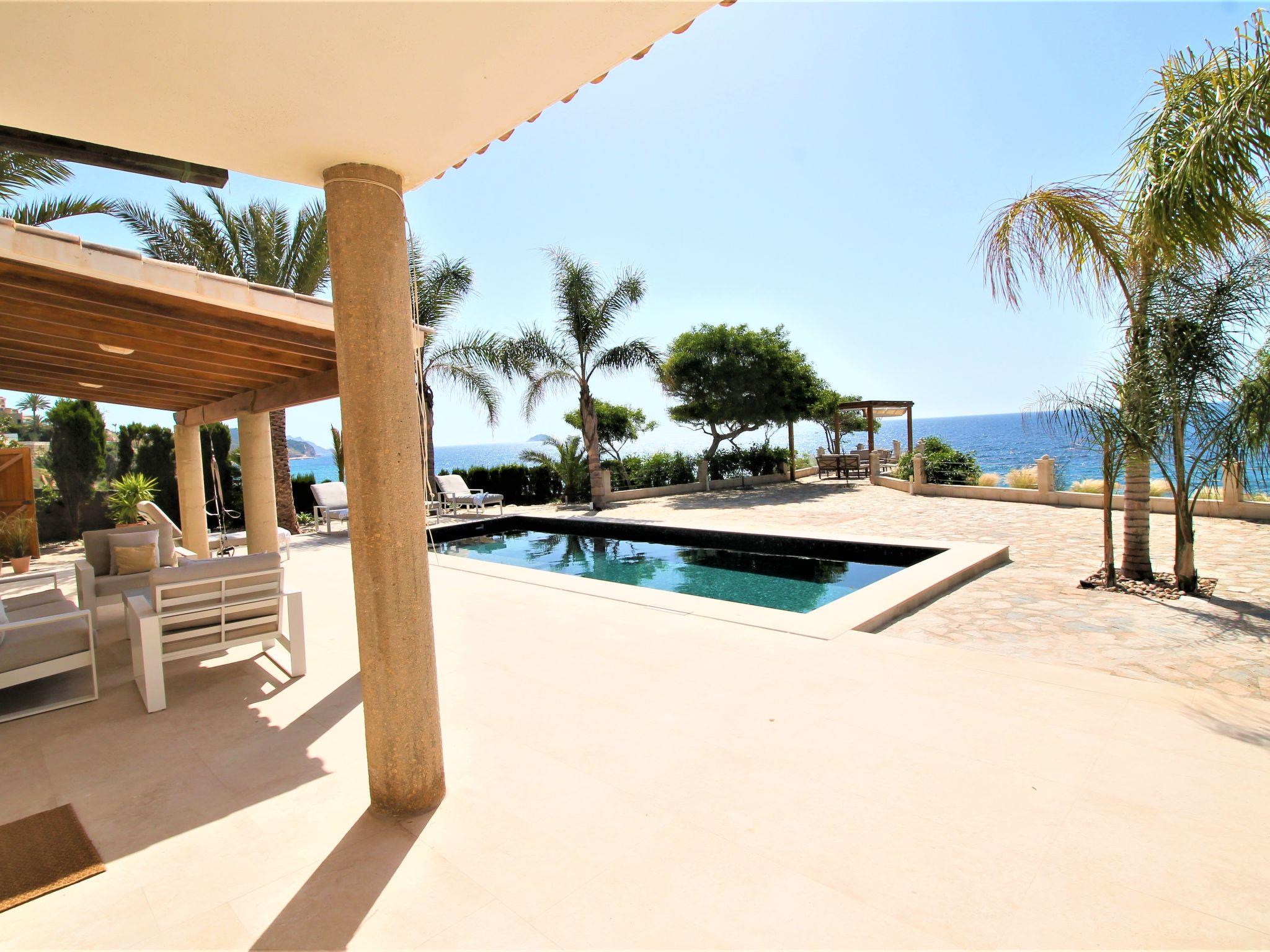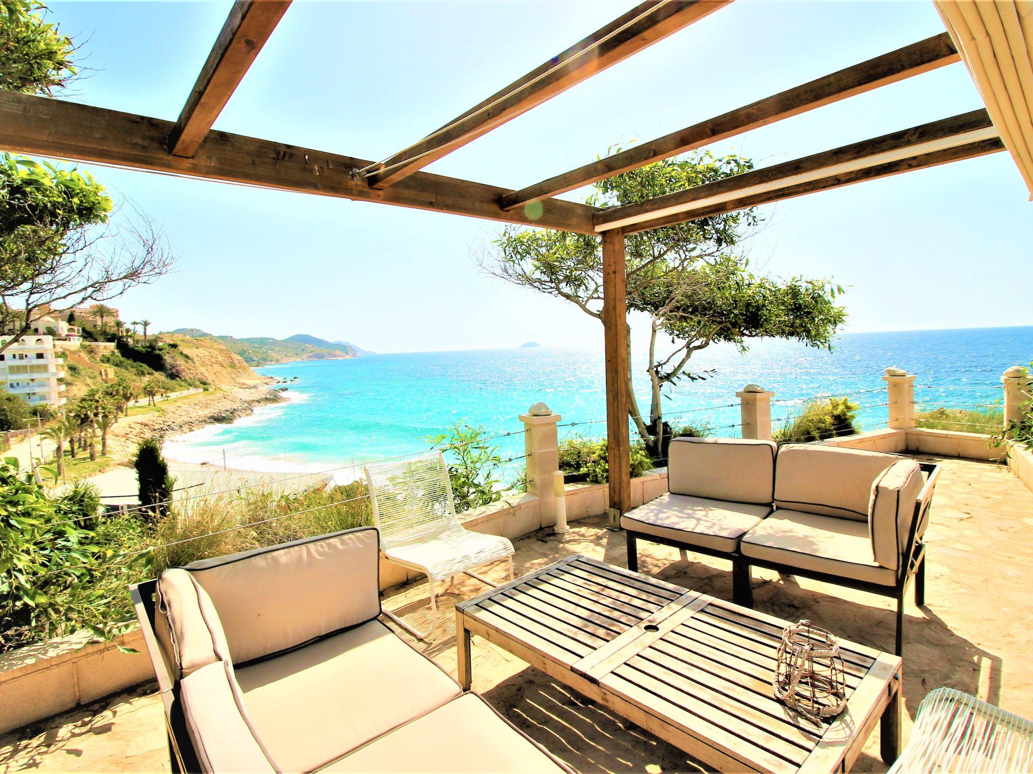 Villajoyosa 1 km from Del puerto: Very large, comfortable house "Taty". In the resort 800 m from the centre of Villajoyosa, in the district El Puerto, in a quiet, sunny position, 50 m from the sea, 50 m from the beach, direct access to the beach, east facing position. Private: property 800 m2 (fenced) with trees, beautiful garden to relax, swimming pool (4 x 10 m, depth 140 - 140 cm, seasonal availability: 01.Jan. - 31.Dec.). Outdoor shower, patio (80 m2), arbour, pergola (100 m2), garden furniture, barbecue. Motor access (100 m via unmade road). Parking on the premises. Supermarket 1 km, shopping centre 3 km, restaurant, bar 600 m, bus stop "Villajoyosa" 50 m, railway station "Villajoyosa" 3 km, sandy beach "Villajoyosa" 300 m pebble beach "Villajoyosa" 50 m. Golf course (9 hole) 10 km, tennis 300 m, walking paths from the house 50 m. Nearby attractions: Terra Mitica Benidorm 7 km, Terra Natura Benidorm 7 km, Aqualandia Benidorm 9 km, Mundomar Bnidorm 9 km, Alicante 35 km, Valencia 140 km. Please note: baby equipment on request. The owner does not accept any youth groups. Neighbourhood highly sensitive to noise. Quietness and good behaviour expected.