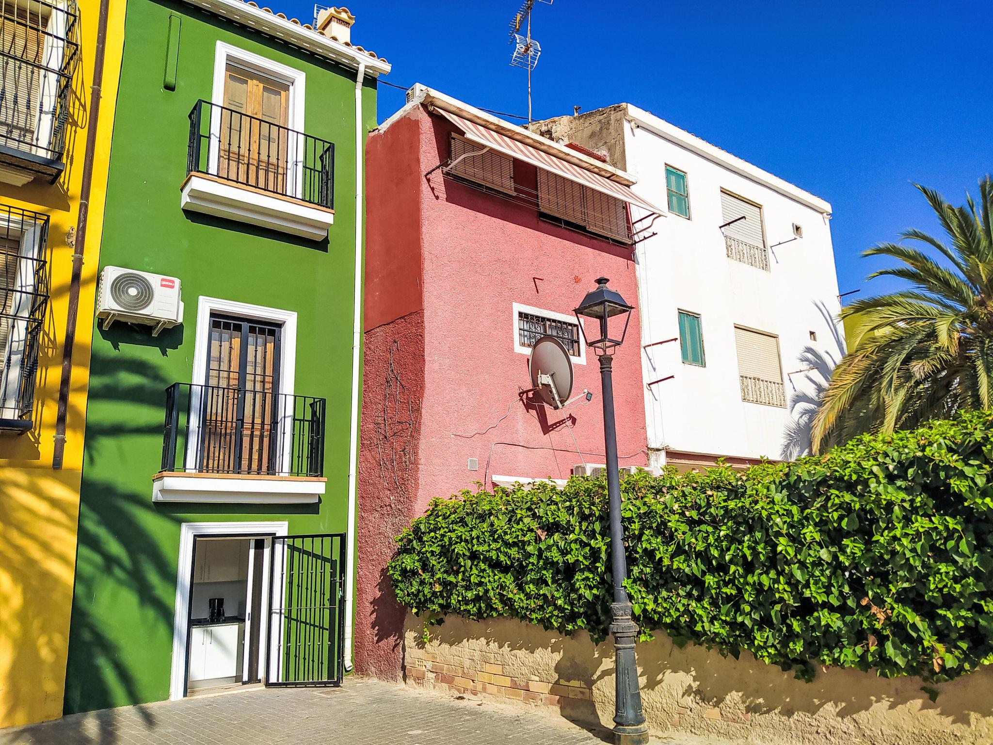 "Casa Colores al Mar", 3-room terraced house 46 m2 on 3 levels. Object suitable for 4 adults. Bright, simple and practical furnishings: kitchenette 11 m2 (oven, dishwasher, 4 ceramic glass hob hotplates, toaster, kettle, microwave, freezer, electric coffee machine) with bar, dining table. Air-conditioning, forced-air heating. Upper floor: shower/WC. 2nd upper floor: 2 rooms 7 m2, each room with 1 french bed (140 cm, length 200 cm), fan. Lounge with digital TV, air conditioning and forced-air heating. Exit to the balcony. Shower/WC. View of the resort. Facilities: washing machine, iron, hair dryer. Internet (WiFi, free). Please note: not suitable for small children. TV only ES. Excellent location, 100m from the beach of Villajoyosa. VT-487059-A // Reg. Nr.: ESFCTU00000301600042168100000000000000000VT-487059-A8