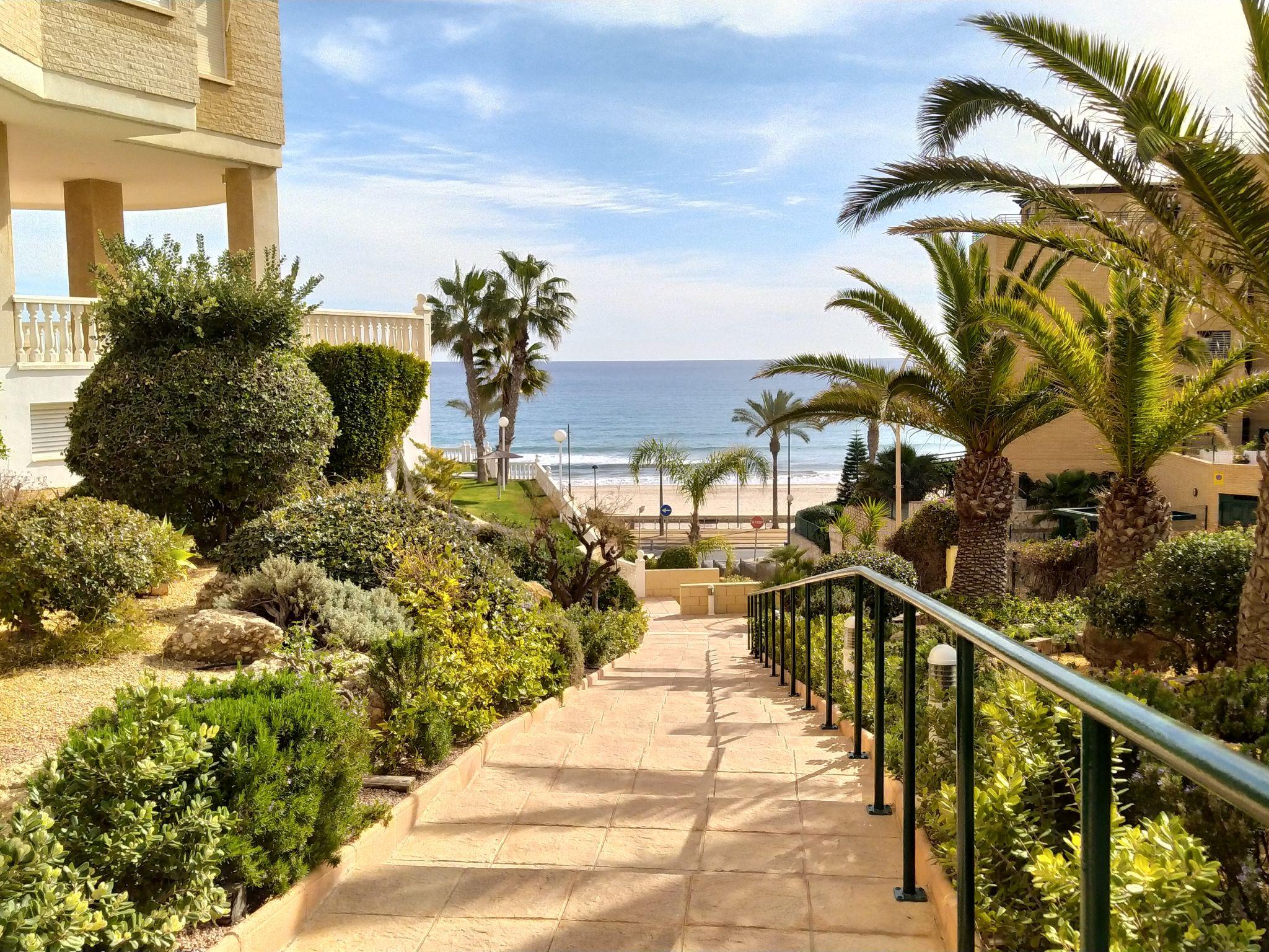 Muchavista 2 km from El Campello: Very large, comfortable apartment block "Urbaeuropa", 10 storeys. On the outskirts, 2 km from the centre of El Campello, in a quiet, sunny position, 100 m from the sea, 100 m from the beach, road to cross. For shared use: property (fenced), terraced garden with lawn and plants, swimming pool angular (5 x 15 m, depth 30 - 190 cm, seasonal availability: 01.Jan. - 31.Dec.) with internal staircase. Children's pool, outdoor shower, tennis (extra), children's playground (slide, swing). In the house: lift. Roofed, parking. Supermarket 2 km, shopping centre 1 km, restaurant, bar 200 m, bus stop "Av. Fabraquer, 35" 300 m, railway station "Les Llances" 700 m, sandy beach "Muchavists" 100 m. Sports harbour 4 km, golf course (18 hole) 3 km. Nearby attractions: Aqualandia Benidorm 30 km, Mundomar Benidorm 30 km, Terra Mitica Benidorm 30 km, Altea 40 km, Alicante 14 km, Aeropuerto Alicnte 24 m. Please note: baby equipment on request. The owner does not accept any youth groups. Neighbourhood highly sensitive to noise. Quietness and good behaviour expected.