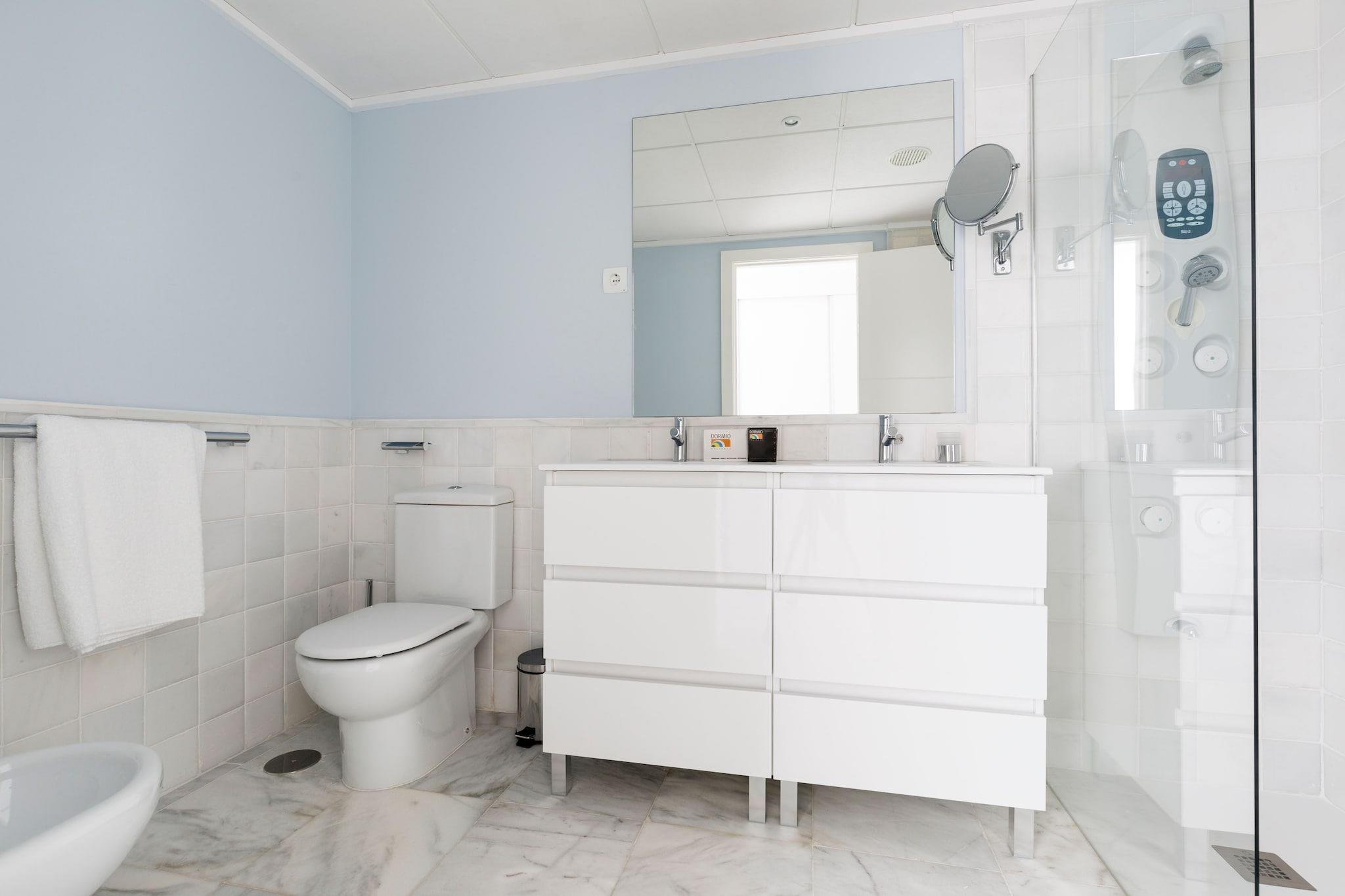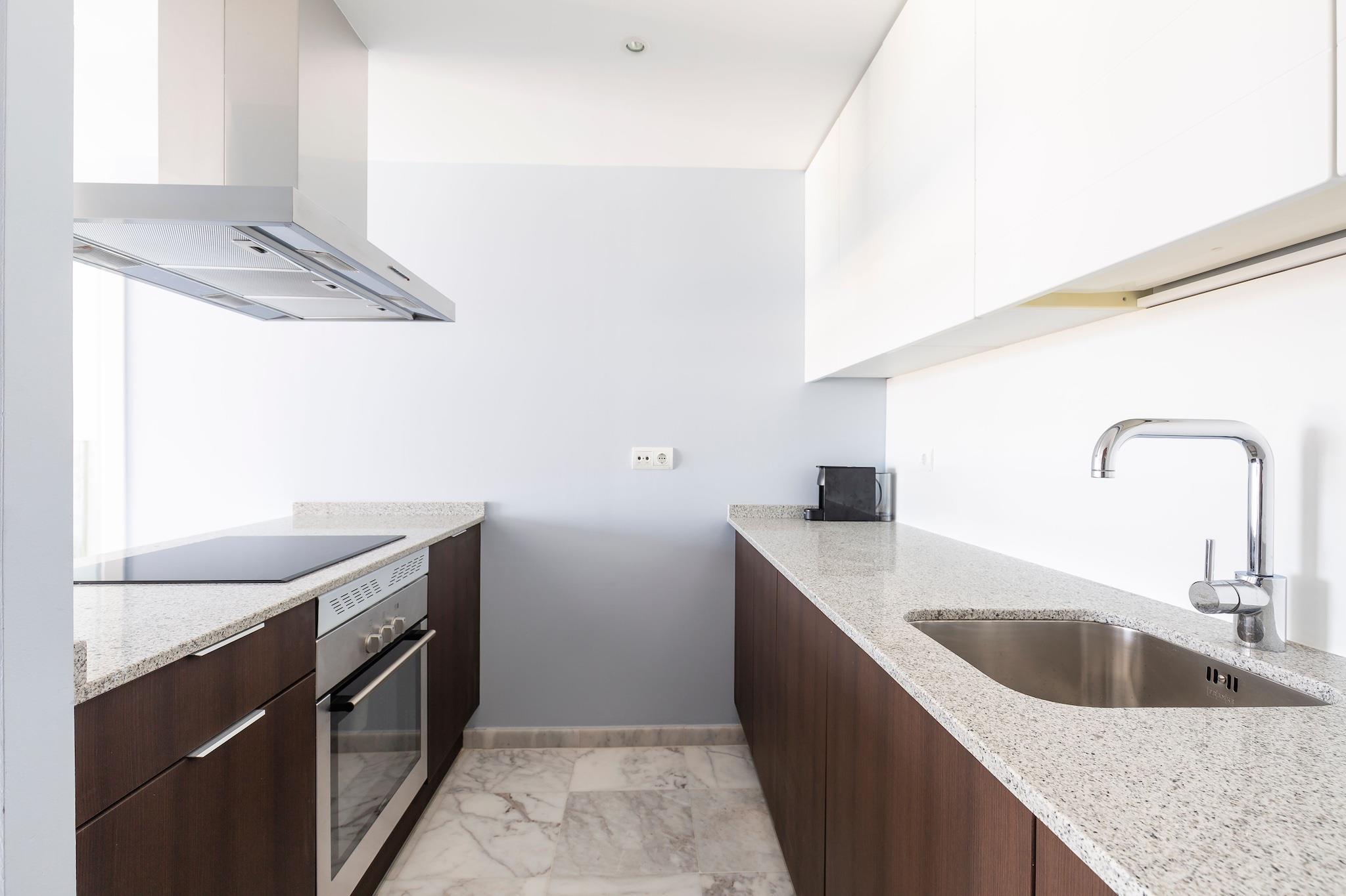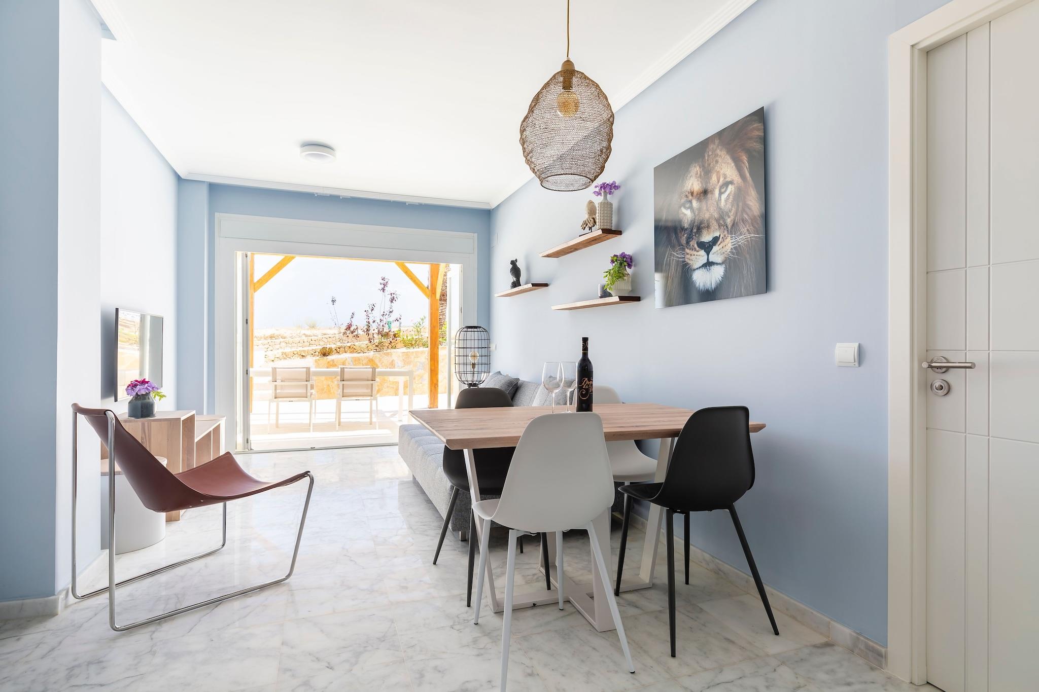 Moderne kysttilfluktssted Denne luksusleiligheten på Costa Blanca tilbyr en blanding av moderne eleganse og middelhavssjarm. Stuen med åpen planløsning har marmorgulv og smakfull innredning, og skaper en rolig atmosfære. Gå gjennom terrassedører til en møblert terrasse med delvis utsikt over Middelhavet, perfekt for utendørs servering. Leiligheten har klimaanlegg, noe som sikrer komfort på varme dager, og har et velutstyrt kjøkken med stekeovn, oppvaskmaskin og vaskemaskin. Utforsk El Campello El Campello har 23 kilometer kystlinje, og tilbyr en rekke strender og bukter å utforske. Playa Muchavista er kjent for sin gylne sand og klare vann, ideelt for bading og soling. For en mer tilbaketrukket opplevelse, besøk Cala La Nuza eller Platja de l'Almadrava. Historieentusiaster kan utforske Illeta dels Banyets, et arkeologisk sted med romerske og mauriske ruiner. Byen er også vertskap for maurernes og kristne festivalen, en livlig feiring av lokal historie og kultur. Nyt lokale smaker El Campello tilbyr en mangfoldig kulinarisk scene, med restauranter som serverer tradisjonell spansk og middelhavsmat. La Vaquería Mediterránea er kjent for sine autentiske retter og innbydende atmosfære. For en matopplevelse ved stranden tilbyr Xaloc Lounge Restaurant praktfull havutsikt og en meny med lokale spesialiteter. Casa Mar tilbyr en koselig atmosfære med et utvalg av tapas og en omfattende vinliste.