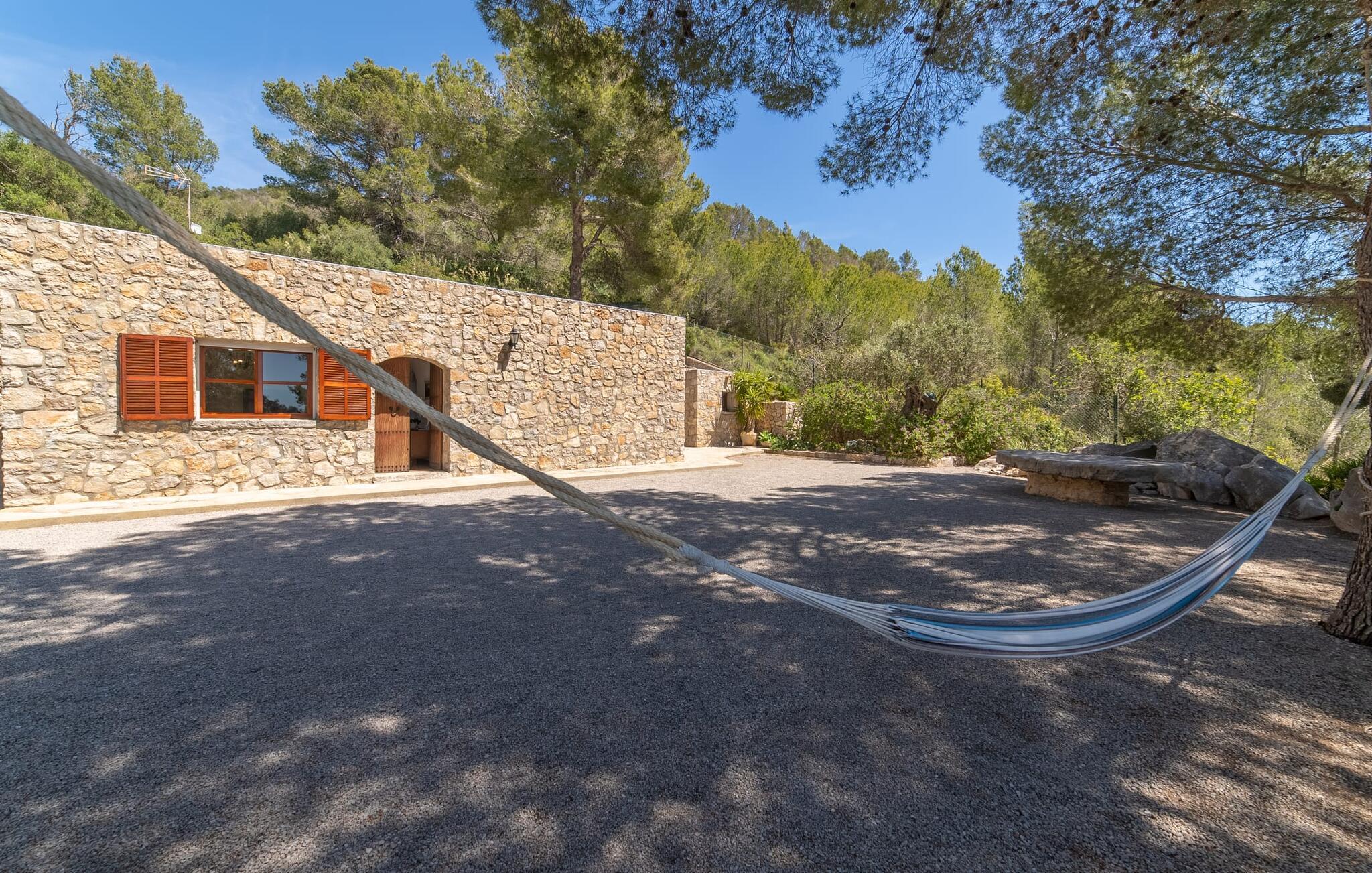Bondegården El Cipres de Cala Millor ligger på en høyde og er omgitt av et vilt og romantisk område på ca. 2 500 m², perfekt for feriestedet ditt. Den terrasserte tomten ligger i skyggen av trærne og er et ideelt sted for avslapping.