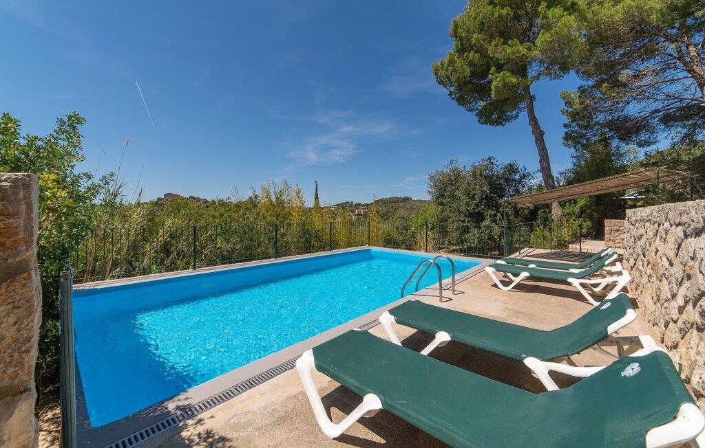 Nyt en forfriskende dukkert i bassenget, mens soltilbedere vil finne sin favorittplass på en av solsengene. Her er det god plass for barna til å leke og utforske, slik at hele familien kan få en morsom ferie. Fra spiseplassen ved siden av huset kan du nyte den fantastiske utsikten og tilberede et herlig måltid på gassgrillen for hyggelige kvelder. Uteområdet, som forsterkes av et utendørsbasseng, utstråler en naturlig og harmonisk atmosfære.