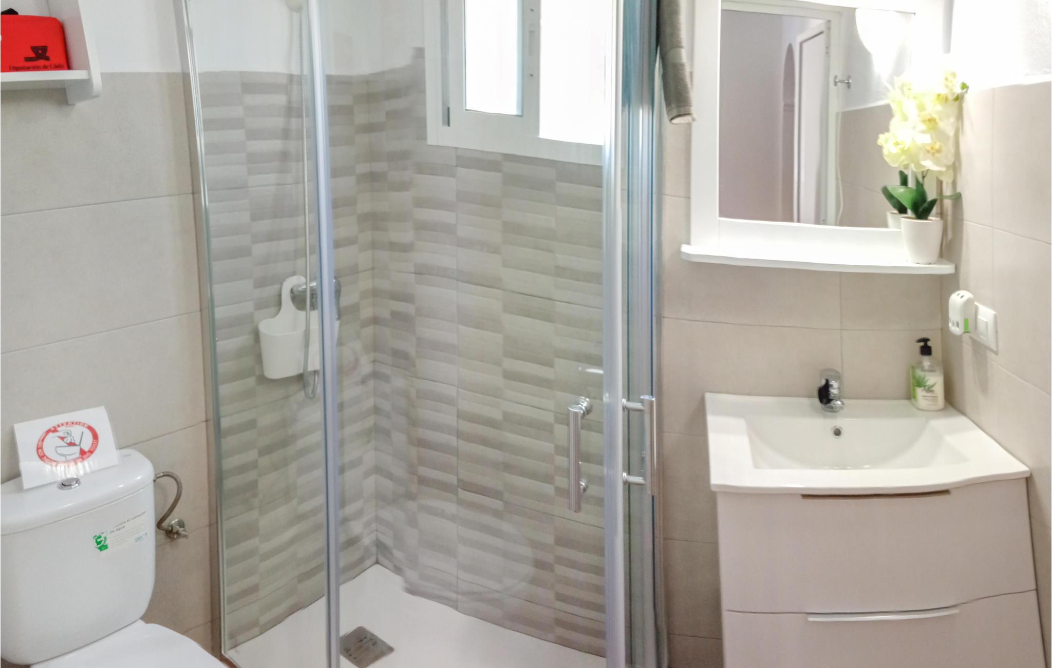 - WC med varmt og kaldt vann, Dusj