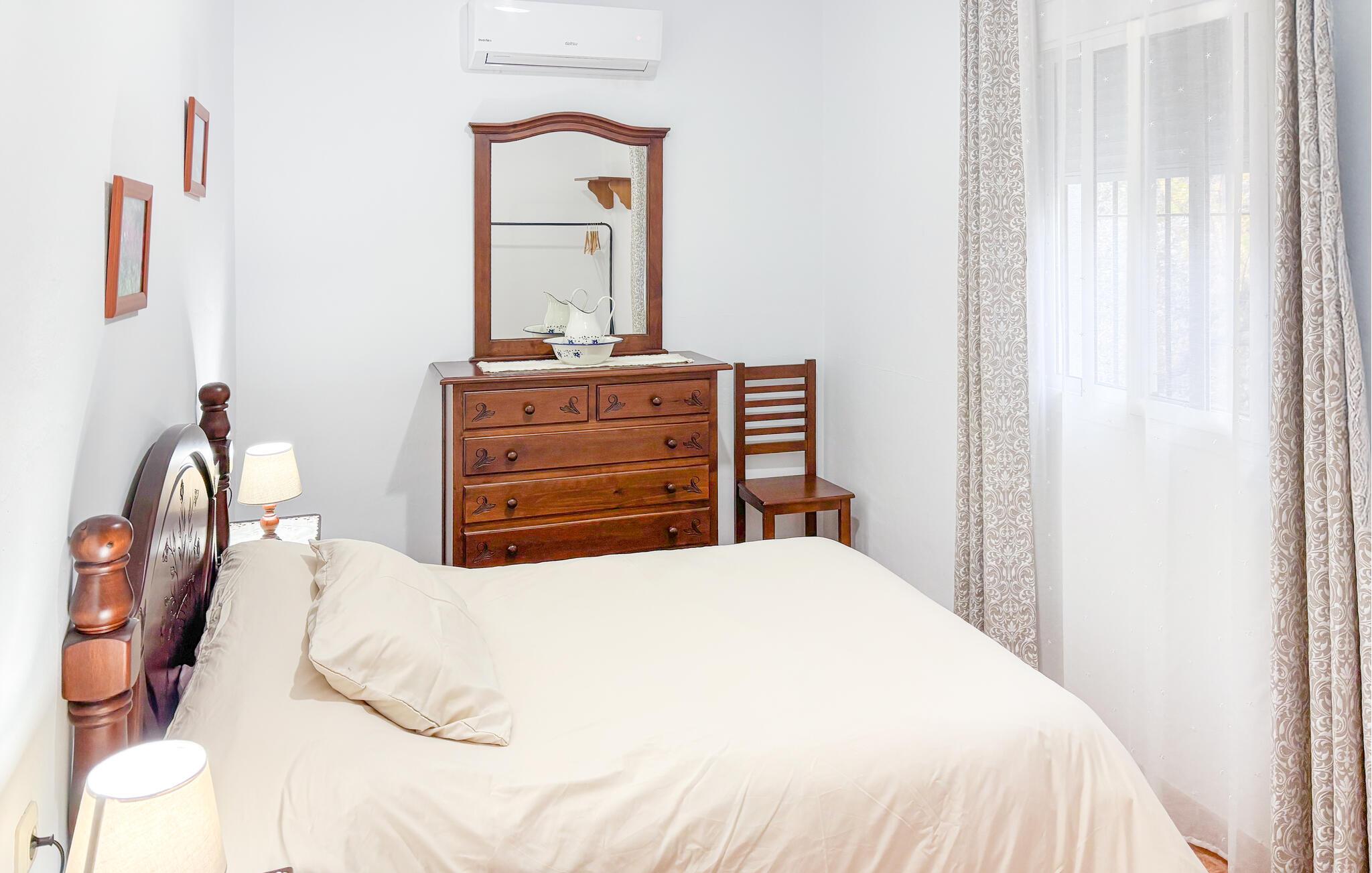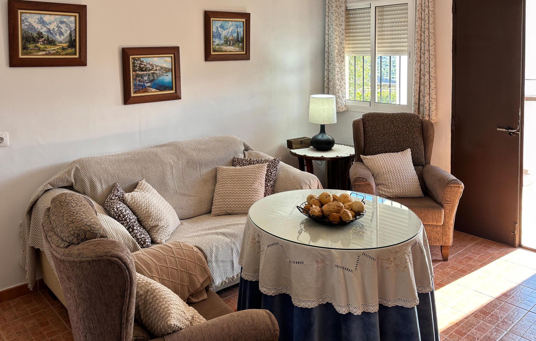 Dette sjarmerende lille feriehuset ligger i El Gastor, en av de vakre hvite landsbyene i provinsen Cádiz og med en fantastisk utsikt over det ekstraordinære landskapet i Sierra de Grazalema. Den er utstyrt med en overbygd veranda og stor terrasse, ideell for koselige måltider utendørs. Den romslige stuen, det velutstyrte kjøkkenet og to komfortable soverom fullfører det koselige interiøret i huset. Du kan få ved til peisen mot en ekstra kostnad. Det ideelle valget for de som elsker naturen og foretrekker det fremfor den typiske strandferien. Området rundt tilbyr severdigheter som de viktige megalittiske bygningene eller bare unik panoramautsikt som inviterer deg til å drømme.