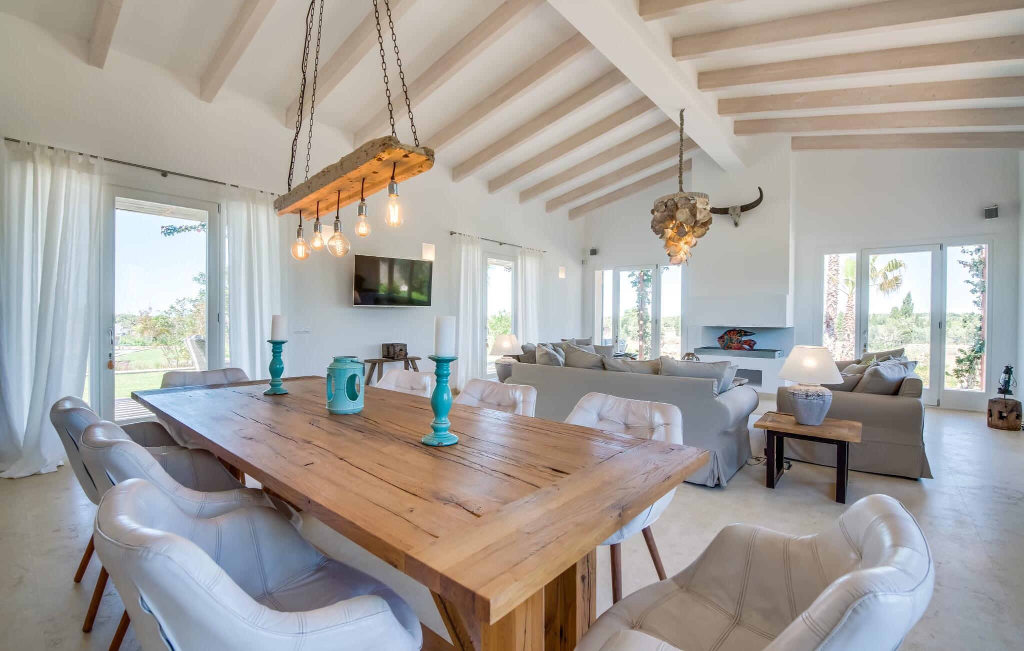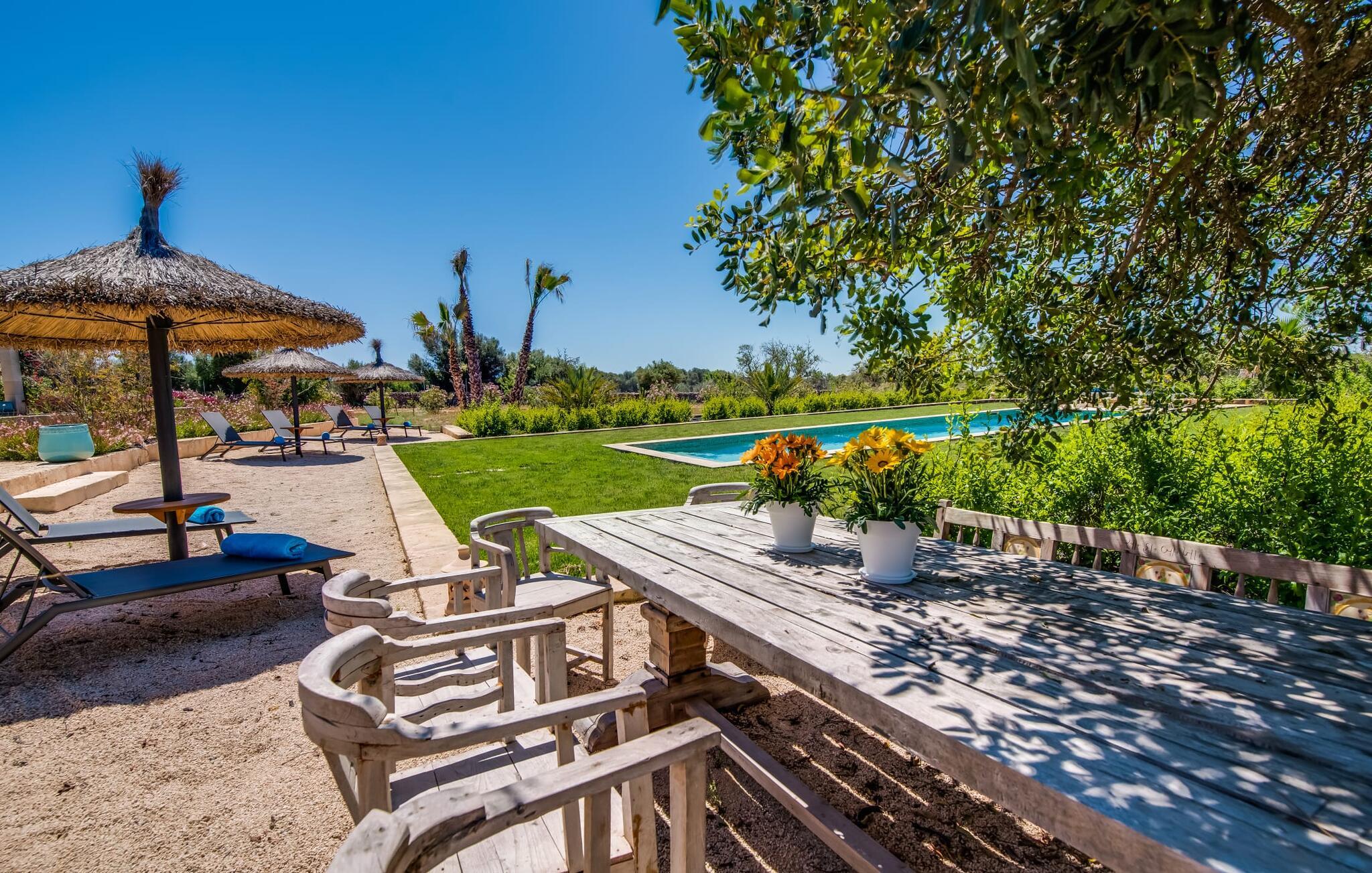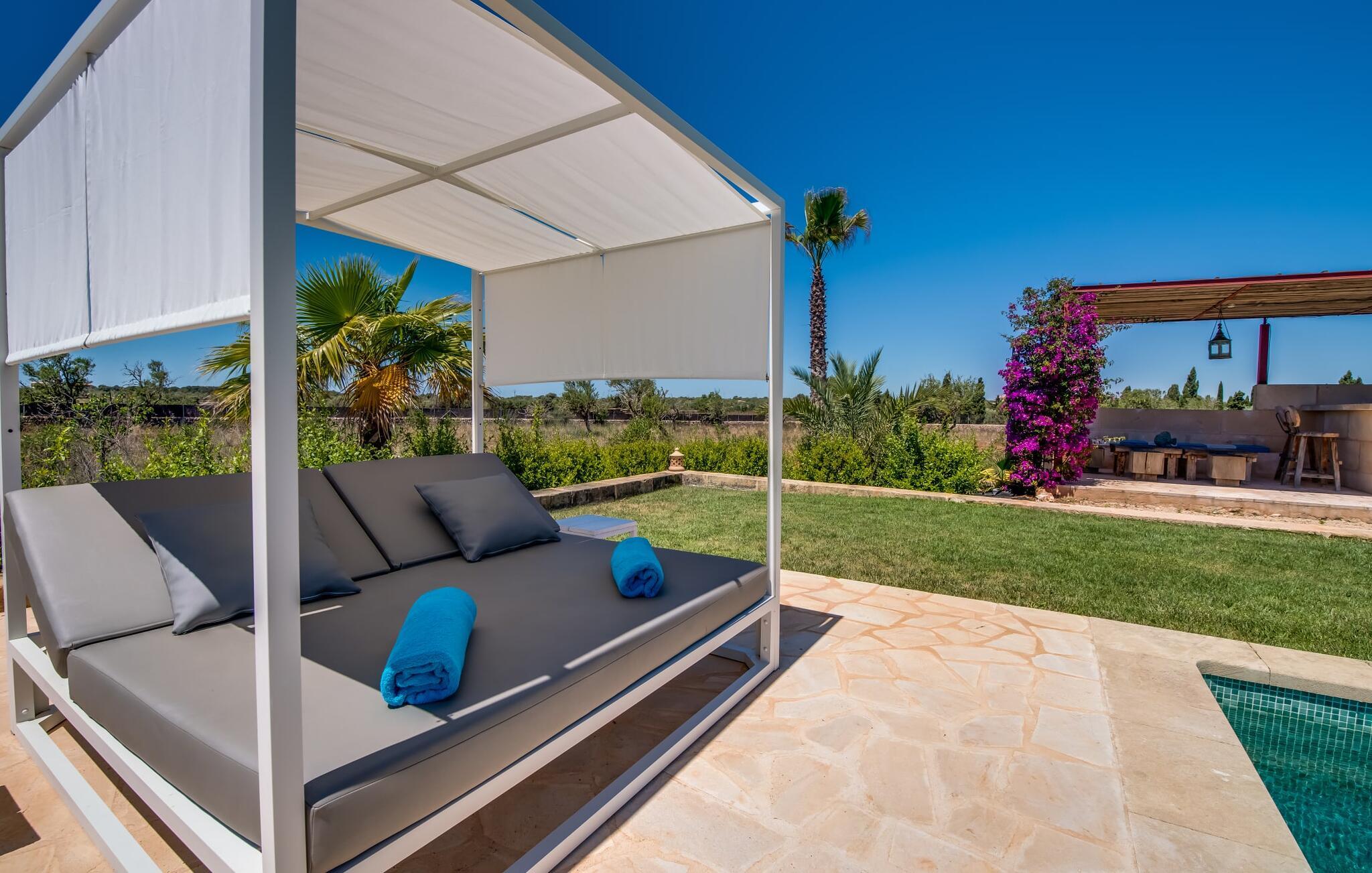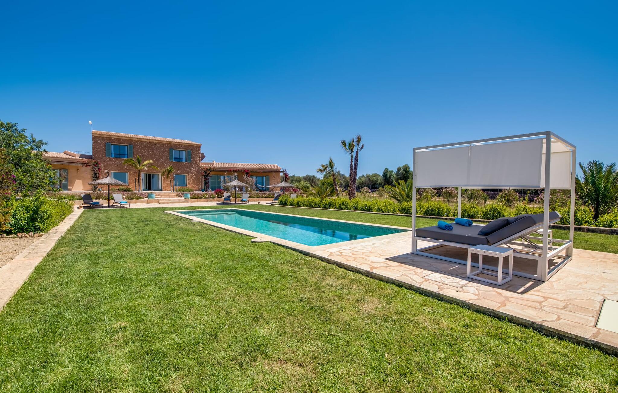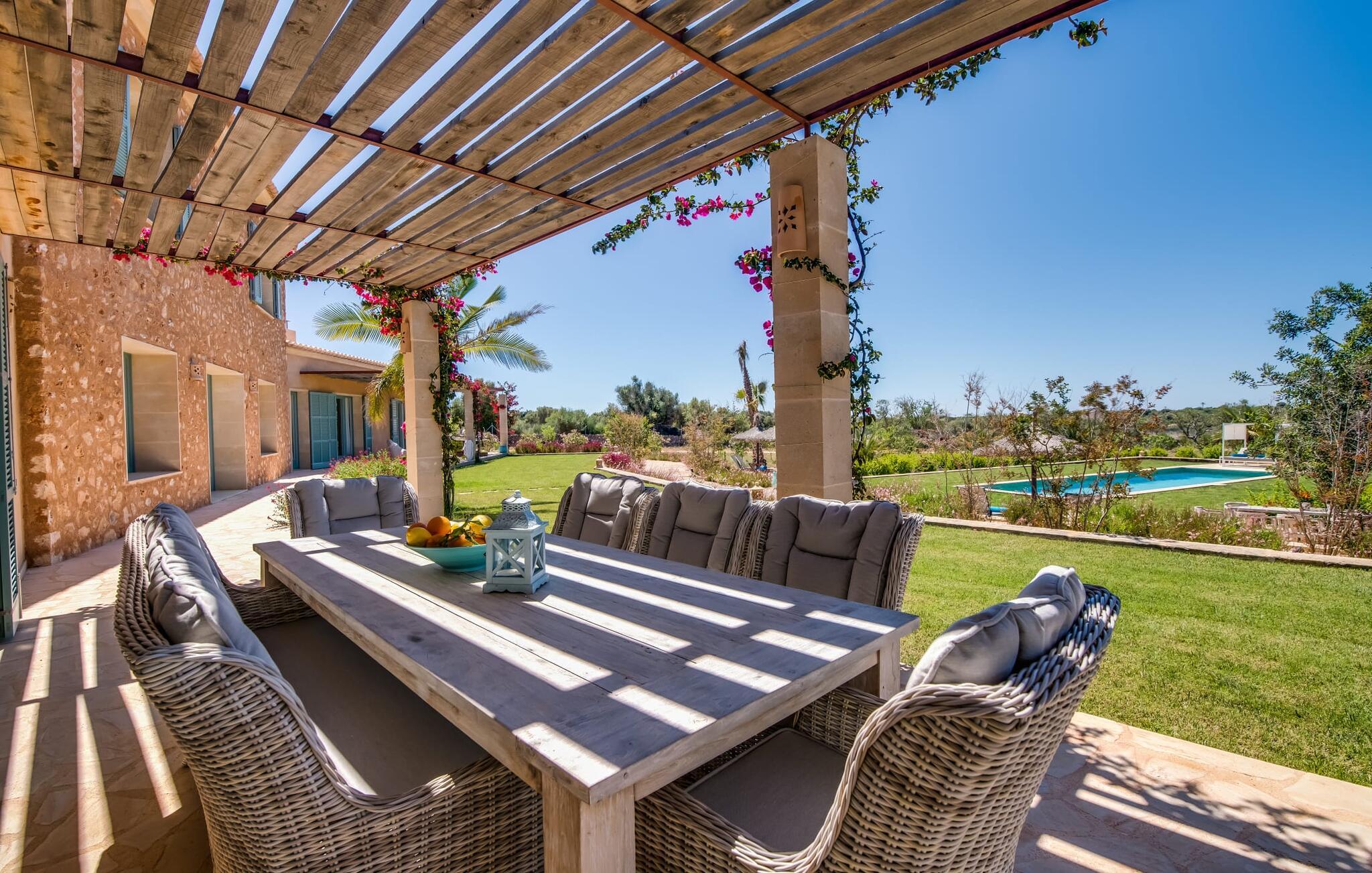 Denne maleriske og fredelige finca-perlen med det idylliske navnet er bygget i middelhavsstil og med mye glass sør på Mallorca, og ligger i solen slik at du virkelig kan nyte fred og privatliv. Det langstrakte treningsbassenget med solsenger og avslappingssenger danner en pil sammen med den toetasjes hovedbygningen og de to fløyene, og vil garantert falle i smak hos gjester som ønsker å nyte tiden på øya med luksuriøs komfort. Bare den omkringliggende terrassen i steinbruddstein, med sitt luftige tretak, salongmøbler av høy kvalitet og vidstrakt utsikt over landskapet, gjør "El Idilio" til et utstillingsvindu som vil vekke begeistring. Fincaen byr på god plass til å tilbringe tid sammen med familien eller en gruppe, som par eller alene, og til å kombinere sosialt samvær med tilbaketrekning og dyp avslapning. Catering, planlegging av arrangementer, sykkelutleie, taxiservice, skjønnhetsbehandlinger og restaurantreservasjoner kan også organiseres på forespørsel og mot en avgift.