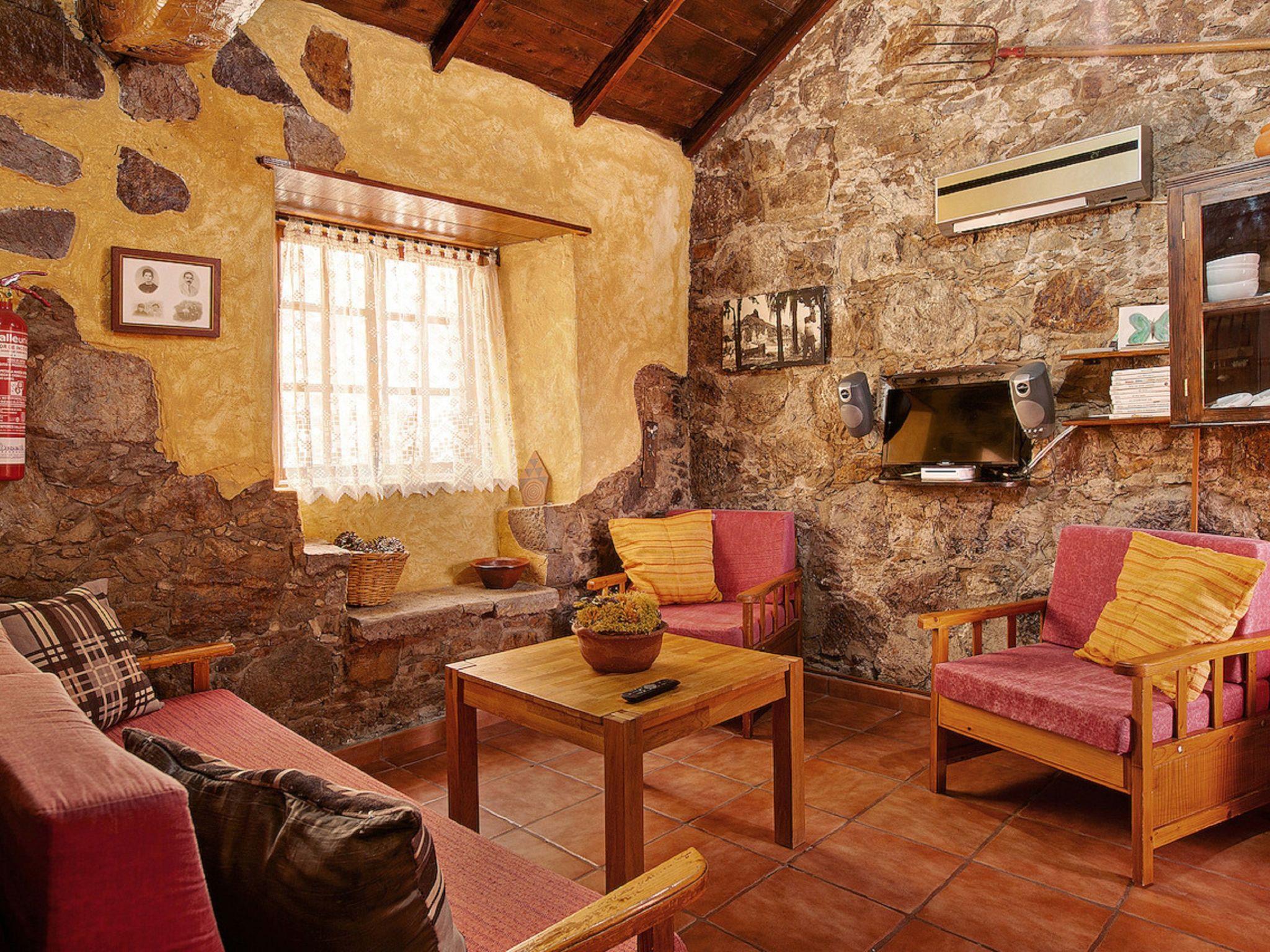 Traditional Canarian country house, restored, over 250 years old, made of stone with wooden floors, maintaining the original structure and materials of its construction. Its furniture has been preserved and restored without discarding the enjoyment and comfort of today's advances, incorporating electrical appliances and other elements that make the stay comfortable. In its two patios you can enjoy starry nights while having ample space for barbecues, enjoying the sun or children playing. (free wifi - wii video console) It is very easy to get to know the whole island, starting from the area, from the Pepita house, roads and paths lead to all directions of the Island, in short, the very center of Gran Canaria. In short, the Pepita la de las Flores rural house, the first rural house in the entire municipality of Tejeda, is well known by the older people of the place as it was the first shop in the area, after Juan, Pepita's husband, arrived from Cuba with some money and they were able to start this small business. Our rural house has spacious rooms with views of the spectacular landscape, a fully equipped kitchen and a variety of modern services that will liven up your stay. Enjoying a weekend or a relaxing holiday has never been so easy and affordable. All services are included in the price Capacity 6 people 1 double bedroom 1 bedroom with two single beds 1 extra double bed Kitchen-dining room-living room Bathroom Terrace Parking Pets allowed Terrace area1 55 m2 Terrace area2 15 m2 Property area 800 m2 Equipment Bedrooms: bed linen and cot. Kitchen: kitchenware, electric oven, mixer, coffee maker, kettle, microwave, toaster, etc. Multimedia TV with more than 7500 songs of all kinds, music, videos of the Canary Islands and the area, information on trails, nature, biodiversity, restaurants, etc. Wii console, free WiFi Bathroom: sink, shower, washing machine, dryer, hair dryer and iron for clothes. Terrace and garden: barbecue, sun loungers, outdoor tables and chairs. Heating throughout the house.