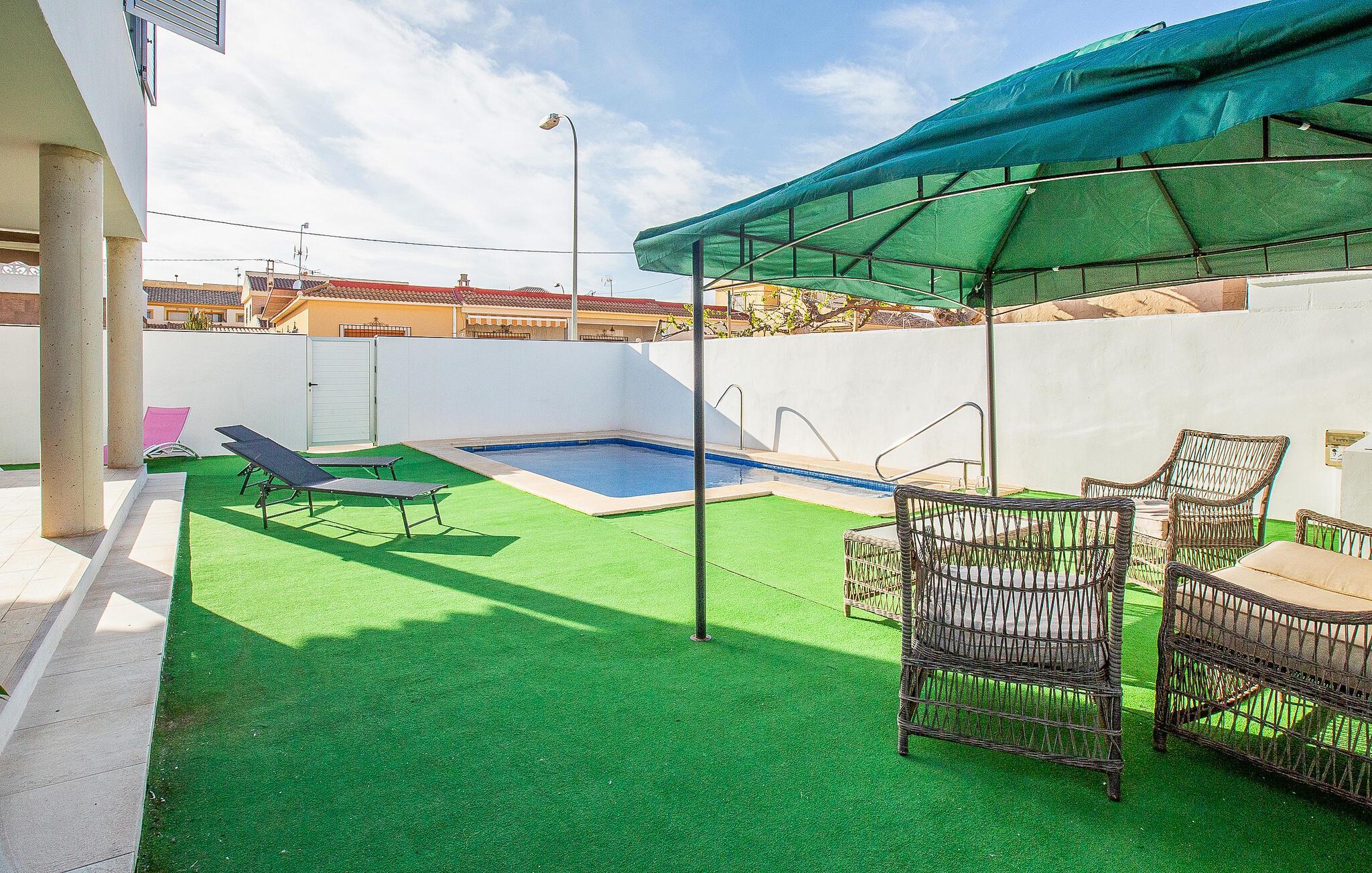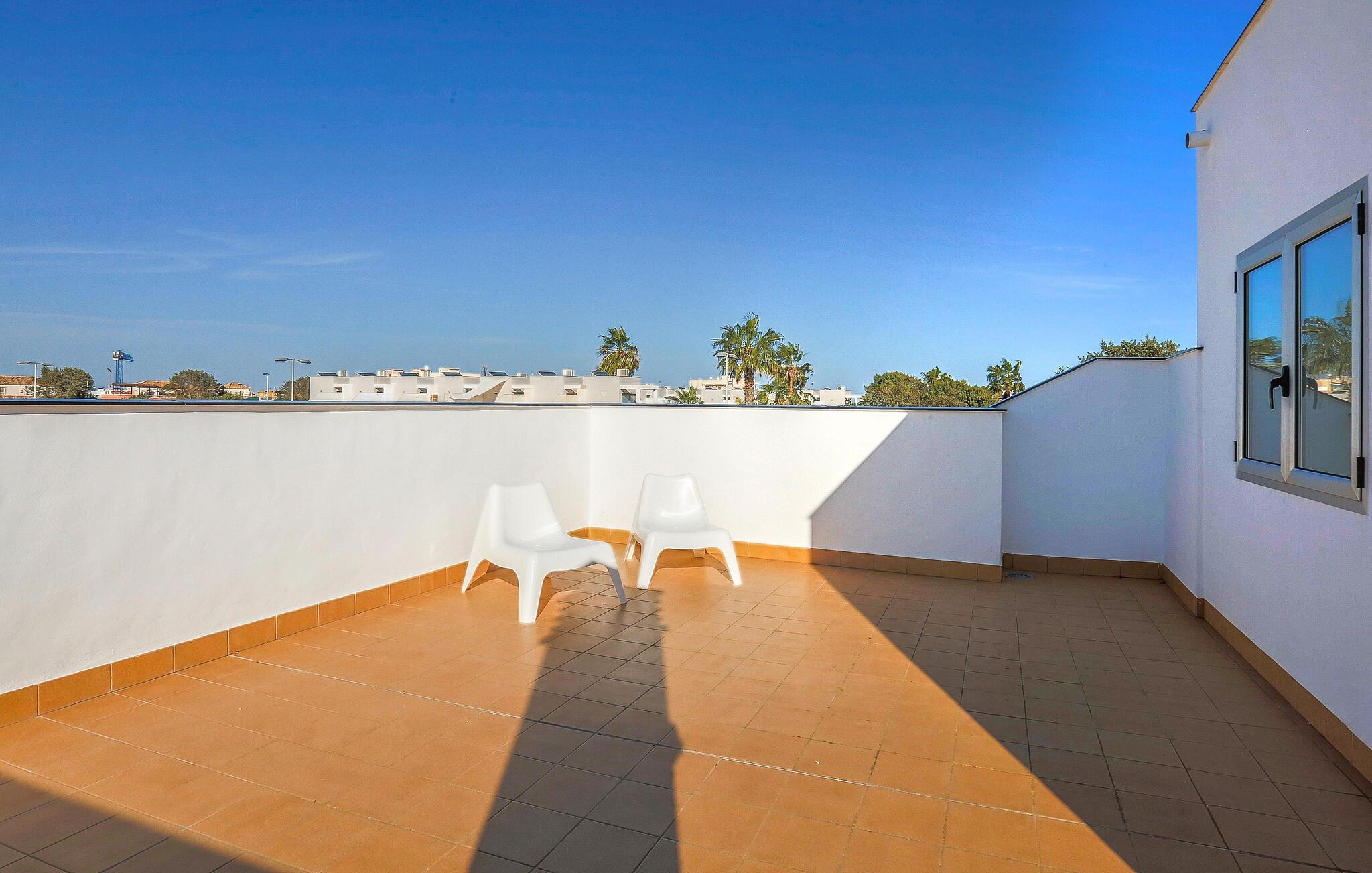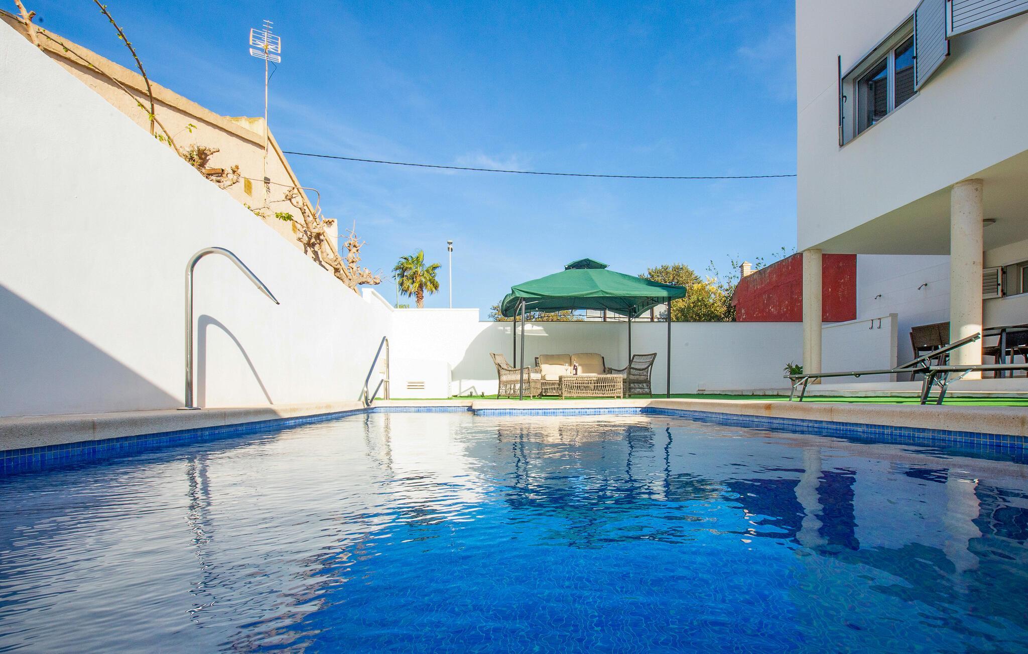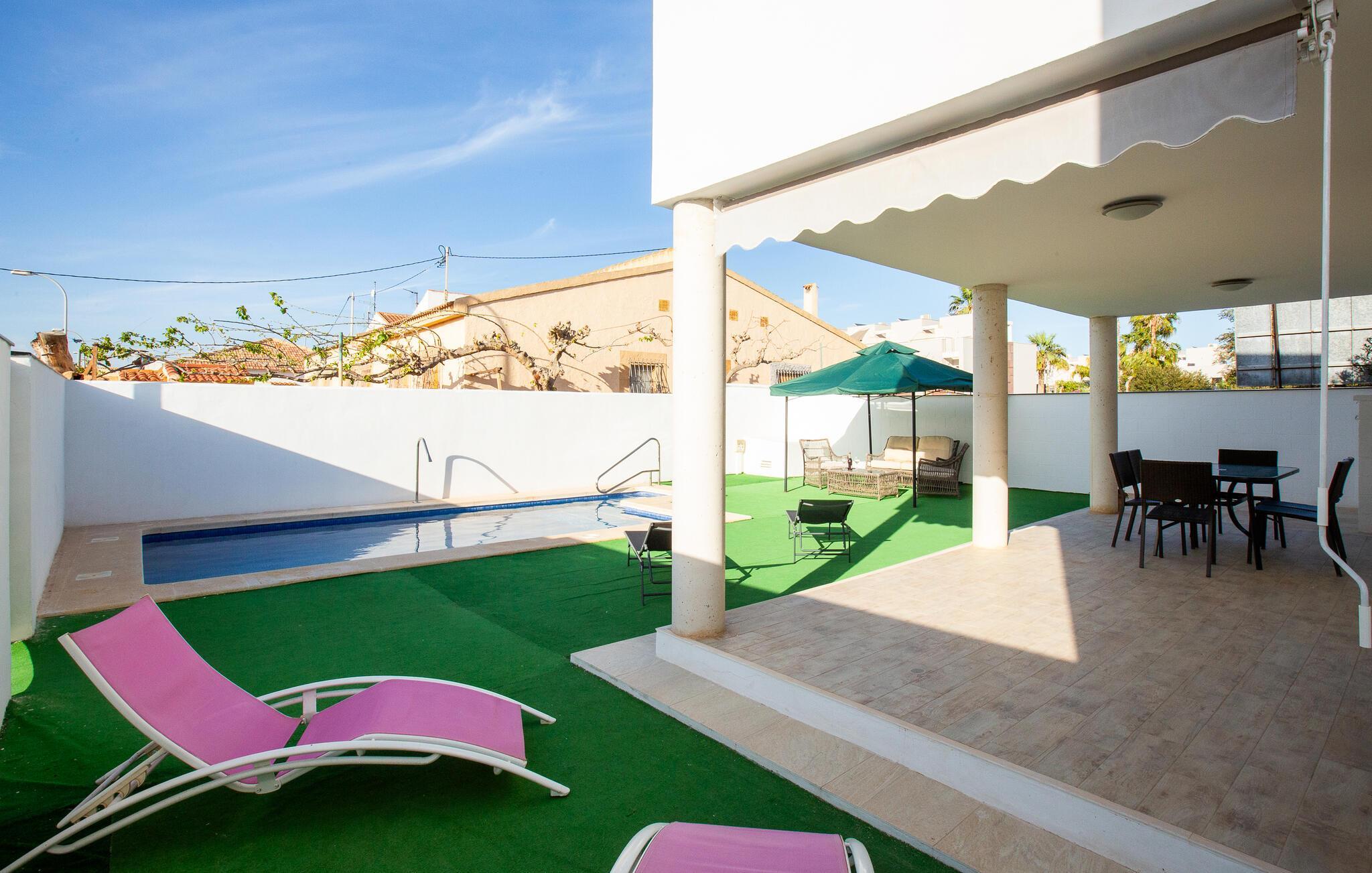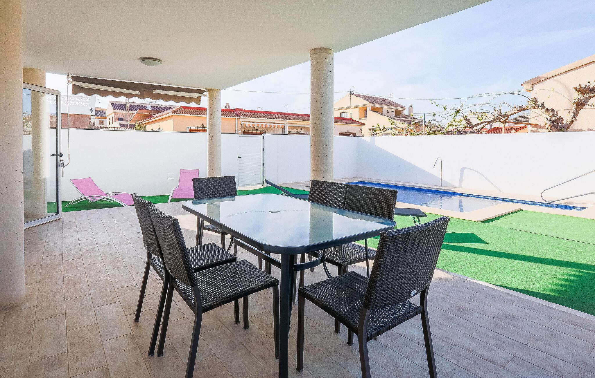 Velkommen til dette attraktive feriehuset i El Mojon. Våkn opp uthvilt om morgenen i den fargerike atmosfæren i feriehuset, og lag en deilig frokost på det åpne kjøkkenet. Mens dere spiser sammen ved spisebordet, kan dere legge de første planene for dagens ferie. Eller gå ut på terrassen og nyte dagens første solstråler. Og kanskje hopper dere rett i bassenget med saltvannsklorering etterpå og nyter det friske vannet. Flere koselige sittegrupper ved bassenget innbyr til å bli sittende og nyte et godt glass vin fra regionen. Her kan du slappe av med en god bok under parasollen. I tillegg innbyr den romslige balkongen i øverste etasje til soling og rolige stunder.