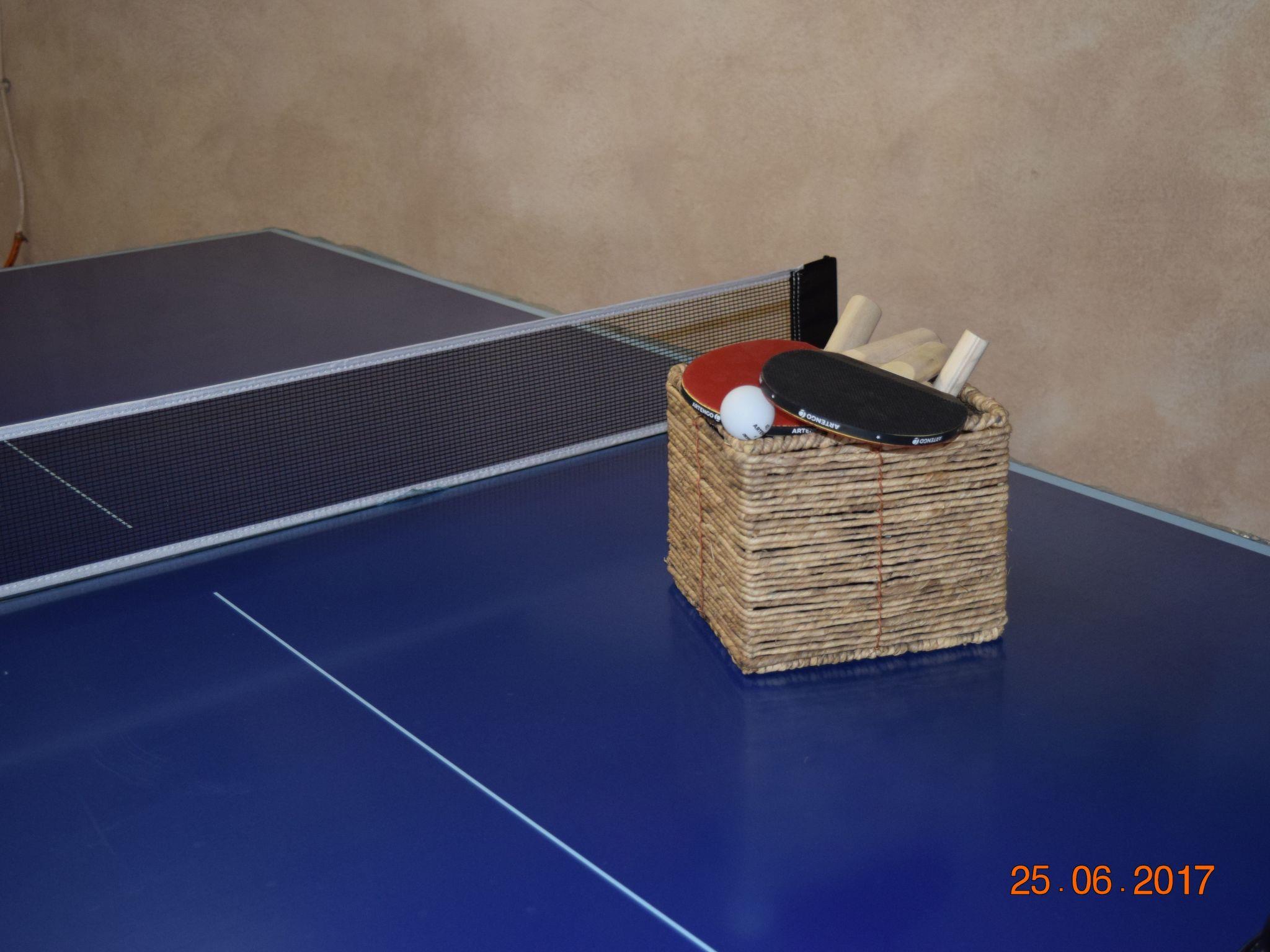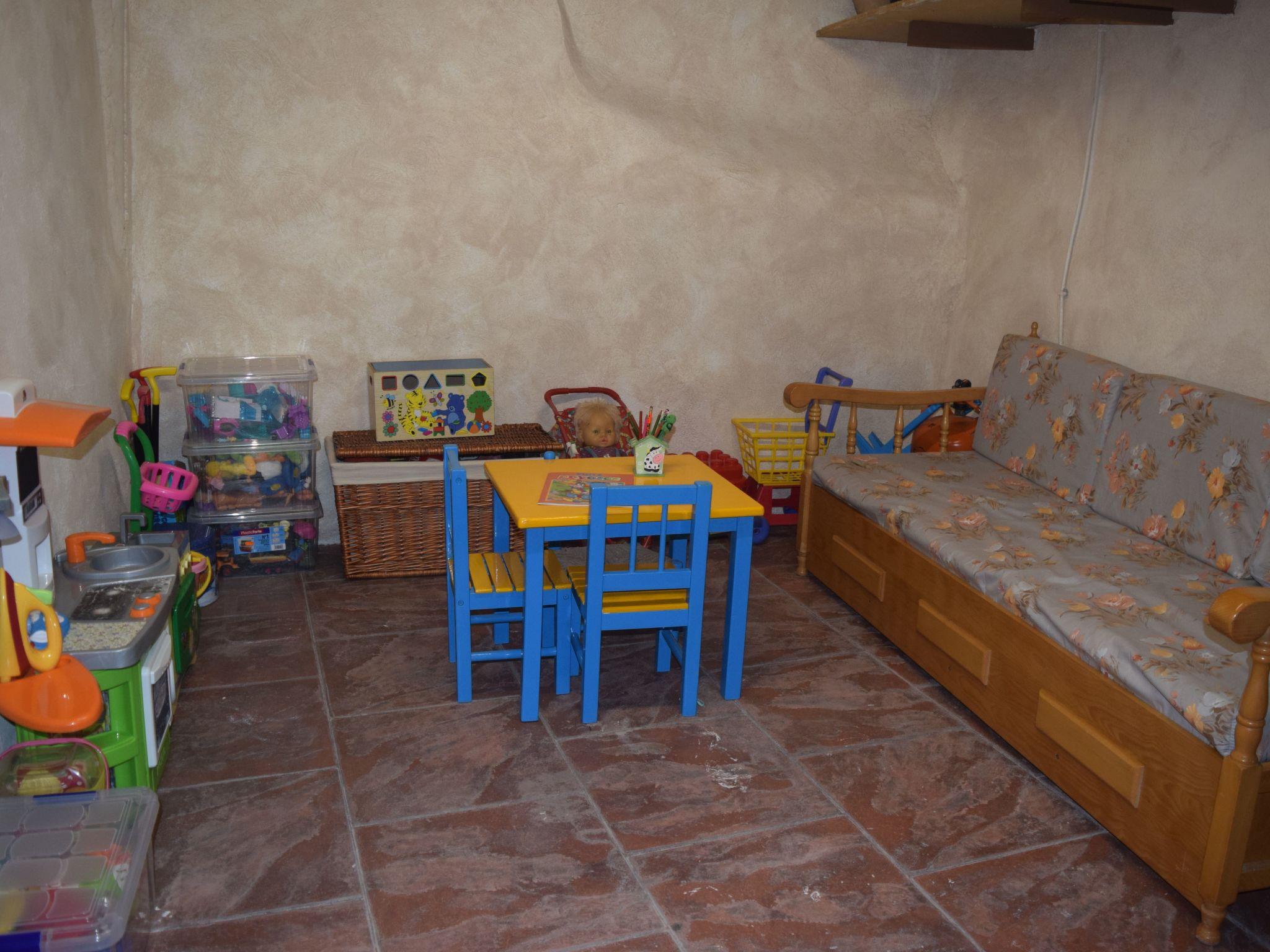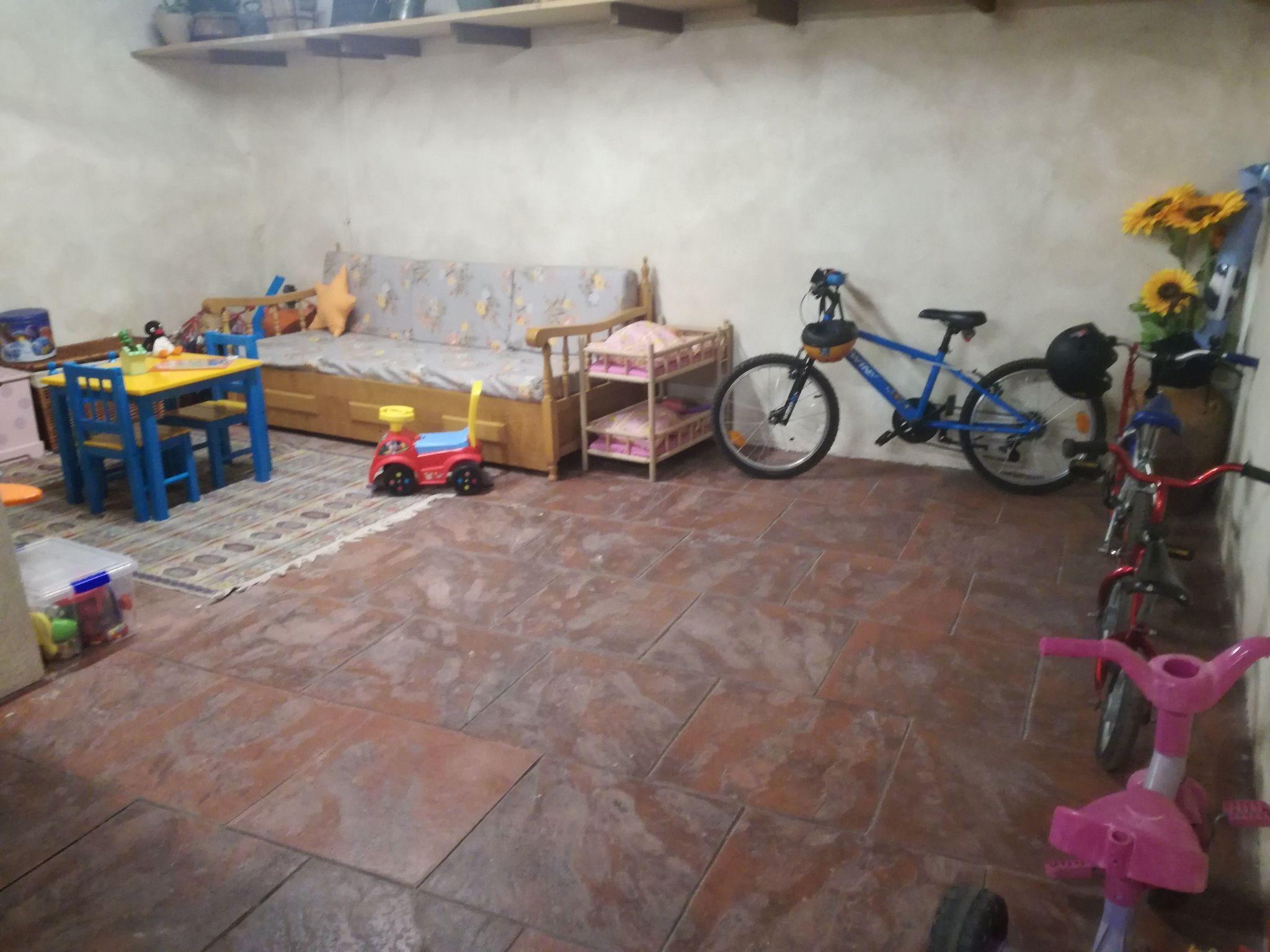The house consists of two floors. On the ground floor there is a large room with board games for children and adults and a ping-pong table, as well as a library with books for all ages. From this room you can access the street and a square where the children can play quietly. On the first floor there are three bedrooms, a dining room, a fully equipped kitchen, a sink and a bathroom. From the dining room you have access to an interior patio with garden furniture, barbecue, barbecue, ctr.