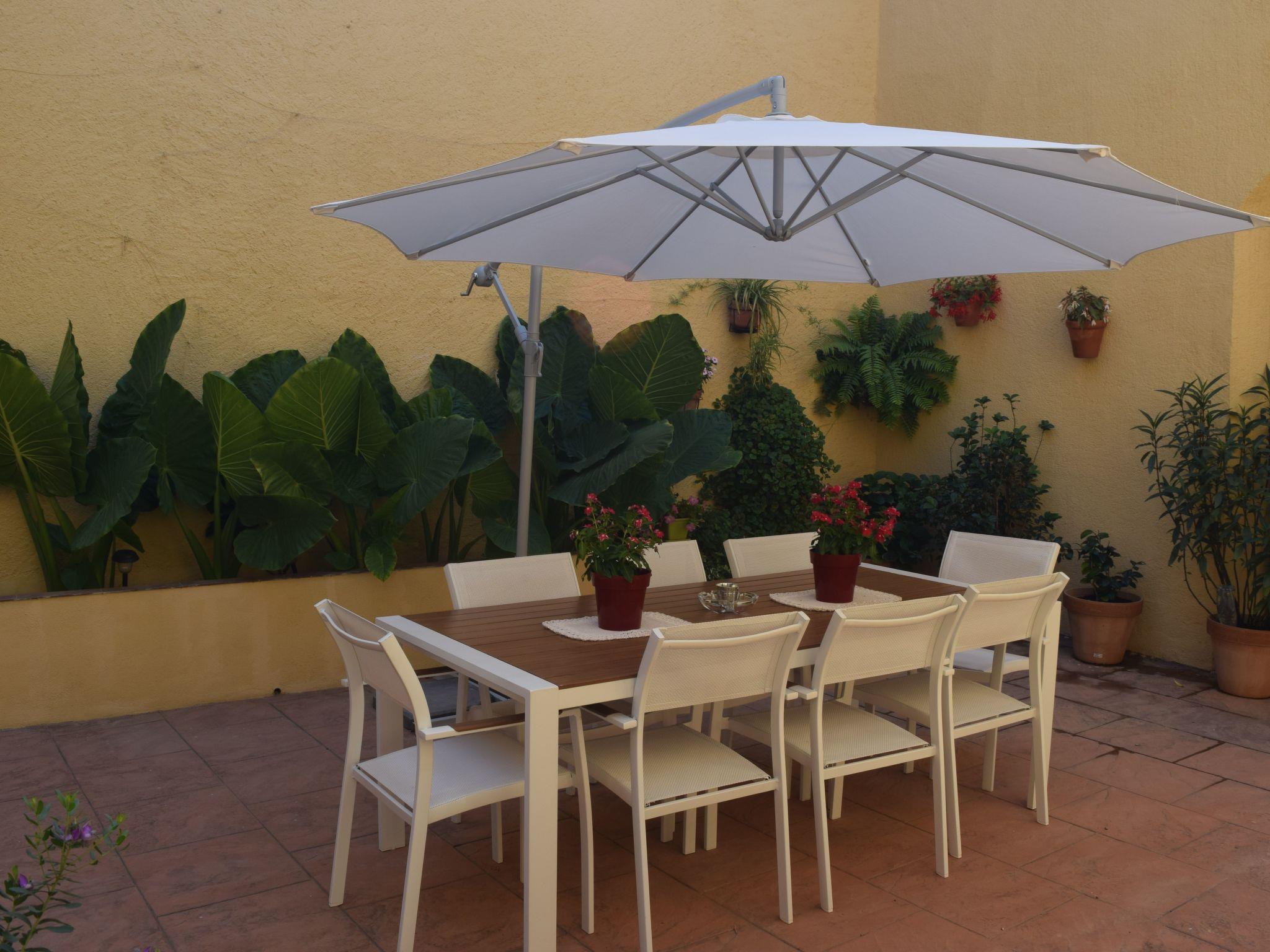The house has an outdoor patio equipped with a large table, comfortable chairs, parasol, barbecue, and everything you need to make a good paella at lunch or dinner under the watchful eye of the illuminated bell tower. From the patio you can also access the square in front of the house.