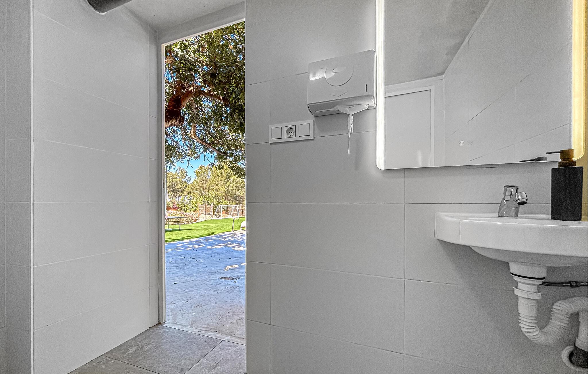 Tilbring tiden din på det romslige uteområdet og oppdag en rekke fritidsaktiviteter. Det store bassenget innbyr til en forfriskende dukkert, og er omgitt av en solrik treterrasse. Slapp av på solsengene eller bruk det overbygde salongområdet for hyggelige kvelder utendørs. Takket være utekjøkkenet kan du enkelt tilberede feriemåltidene dine ute. Du kan også spille bordtennis eller bruke den romslige plenen til sportslige aktiviteter.
