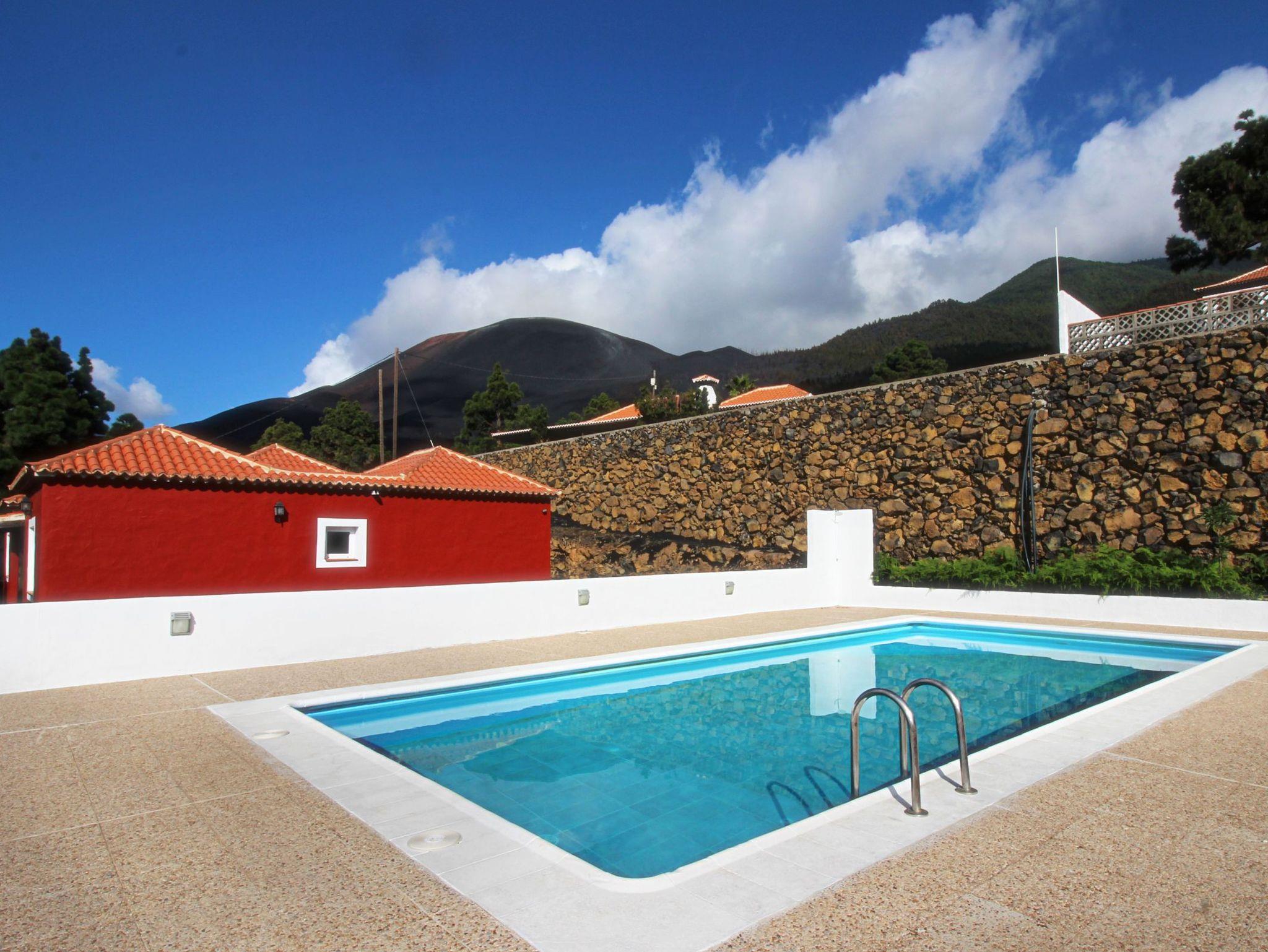 Der erkaltete Lavastrom des im Jahr 2021 ausgebrochenen Vulkans Tajogaite führt direkt an der Terrasse des Hauses vorbei. Zum Haus kommen Sie über die neu gebaute Straße, die durch den Vulkanfluss führt.
