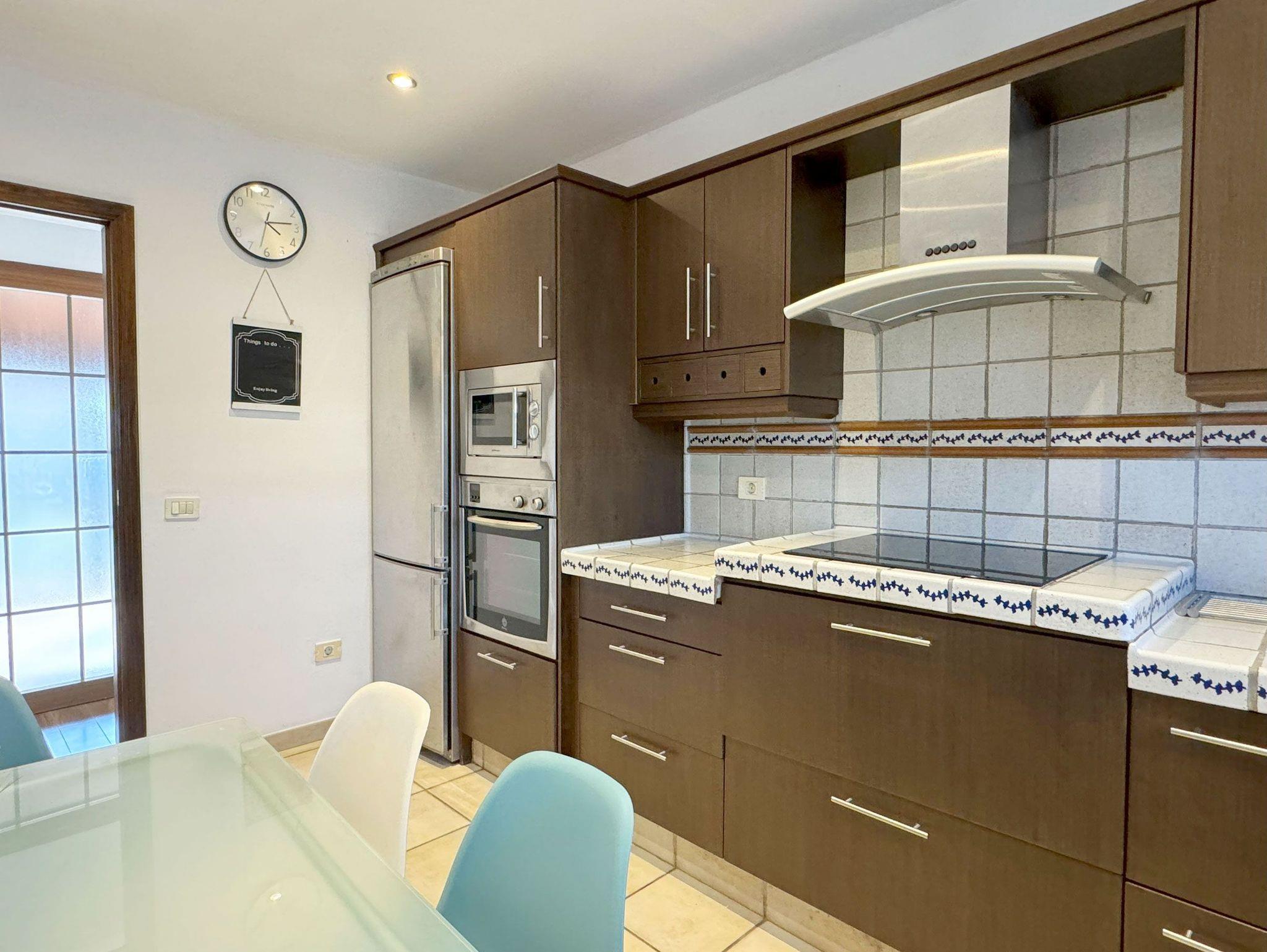 Die voll ausgestattete Küche bietet alle Annehmlichkeiten, während der Essbereich im Wintergarten ein schönes Ambiente für das gemeinsame Mahl schafft.