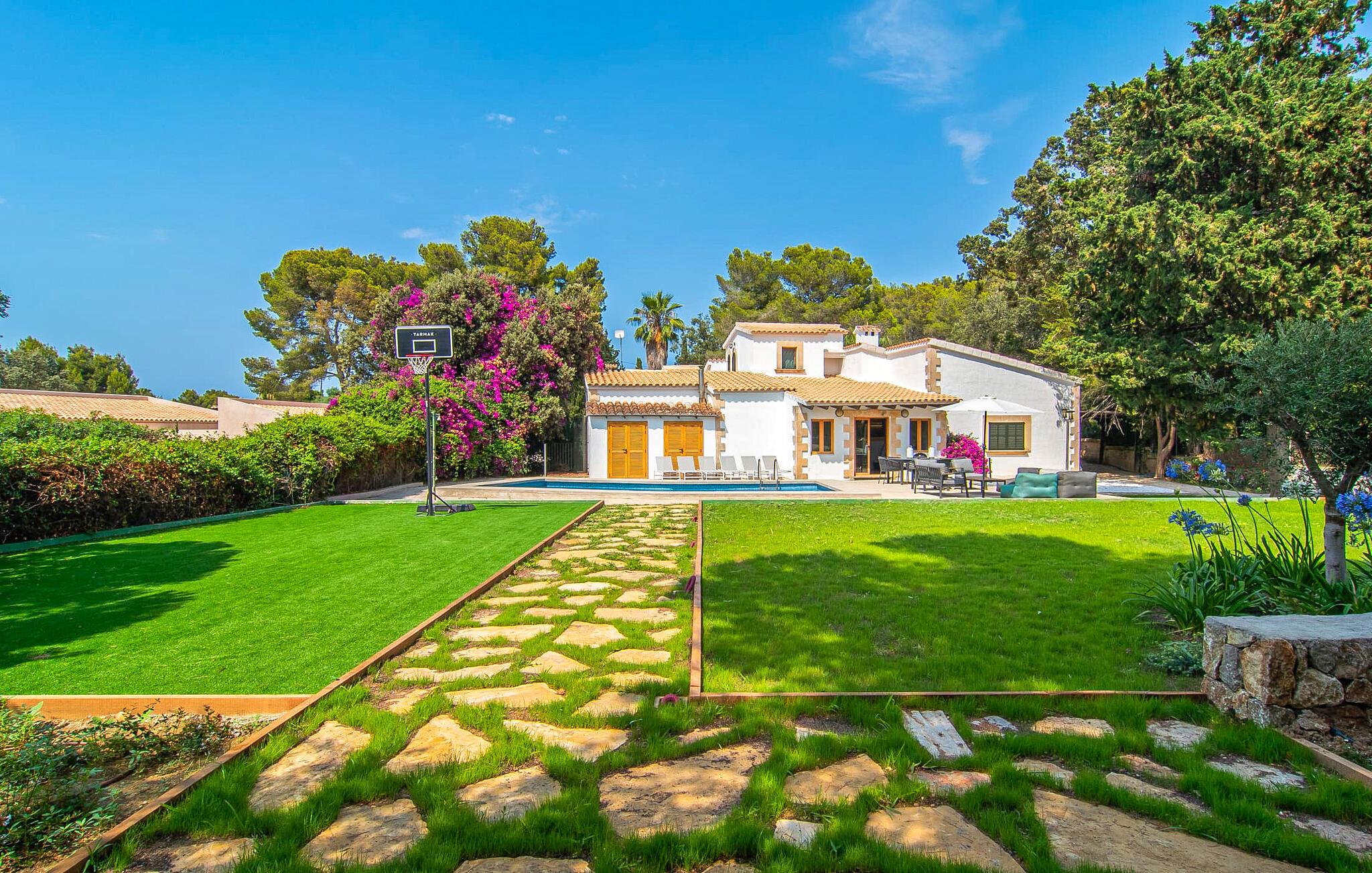 Villa El tulipán blanco nordøst på Mallorca ligger på en tilbaketrukket hagetomt. Villaen har en romslig solterrasse og et vakkert, grunt basseng. For de som foretrekker å bade i havet, er det to barnevennlige sandstrender innen gangavstand. I hagen kan du spille fotball, og det er en basketballkurv. Ved siden av huset er det en koselig hage med en mursteinsgrill og en mobil grill.