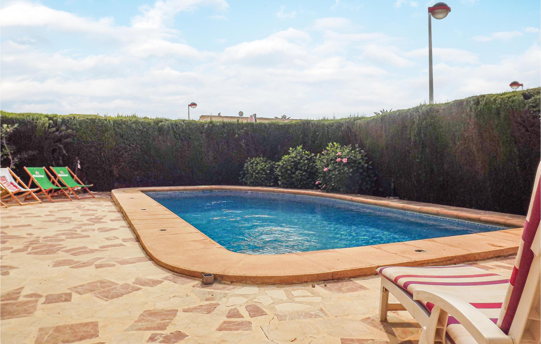 Slapp av i et feriehus nær stranden med privat hage og basseng.