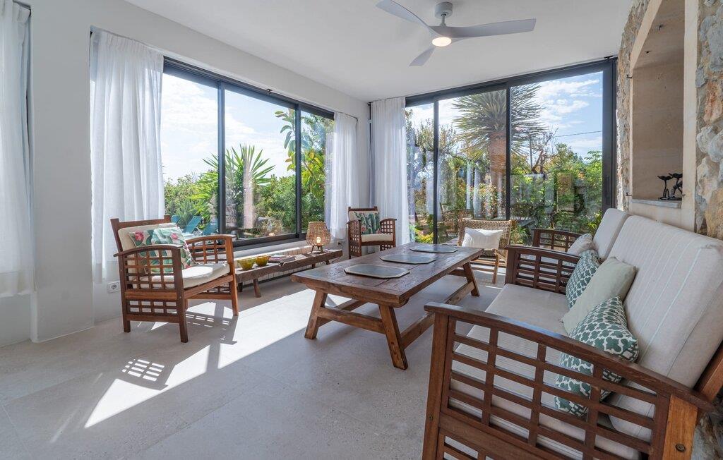 Omgitt av frodig, typisk middelhavsvegetasjon med oliventrær, palmer, kaktus og fargerike blomsterplanter, besøker vi den sjarmerende, rustikke Villa Els Ametllers i utkanten av Plà de Mallorca. Plà er det grønne området midt på øya, en usedvanlig sentral beliggenhet som gjør det enkelt å komme seg til større byer som Inca. Den vakre villaen og de fantastiske terrassene har en fantastisk rolig beliggenhet, langt unna byens liv og røre, men likevel i nærheten av byen. Du kan kjøre dit for å hente alt du trenger i det daglige. Her finner du supermarkeder, og på torsdager er det et ukemarked som er typisk for øya, og som anbefales på det varmeste. Det ligger barer og restauranter spredt langs gågaten i gamlebyen i Inca. Inca har gjort seg bemerket som et sentrum for sko- og lærhandel, og på markedet og i outlet-butikkene kan du kjøpe velkjente produkter fra kjente merker til en billig penge. Glem ikke å besøke markedshallene i Carrer Miquel Duran, som er åpne hver dag unntatt søndager. Den deilige duften av mallorkinske oliven, mandler og sitrusfrukter vil omslutte deg fullstendig.