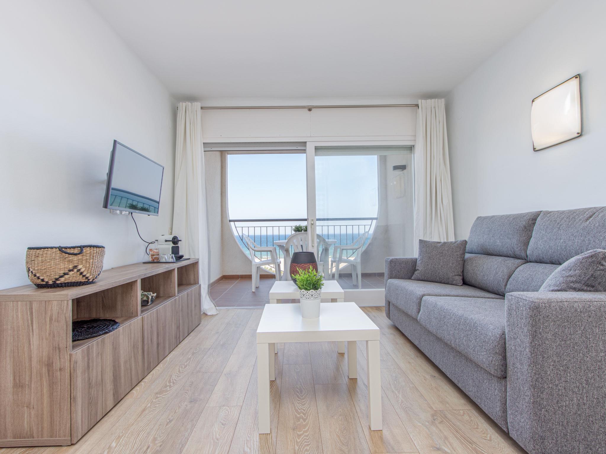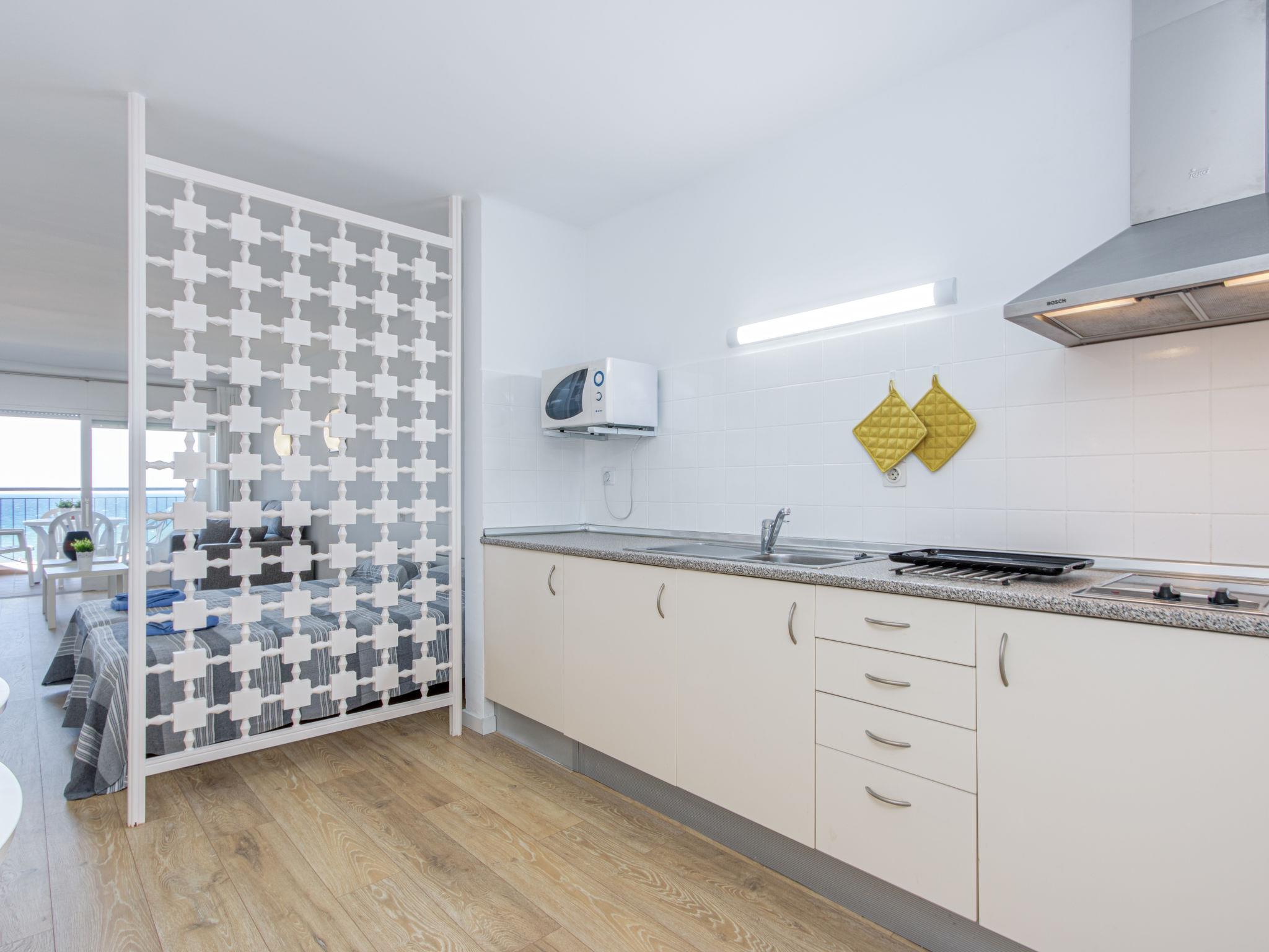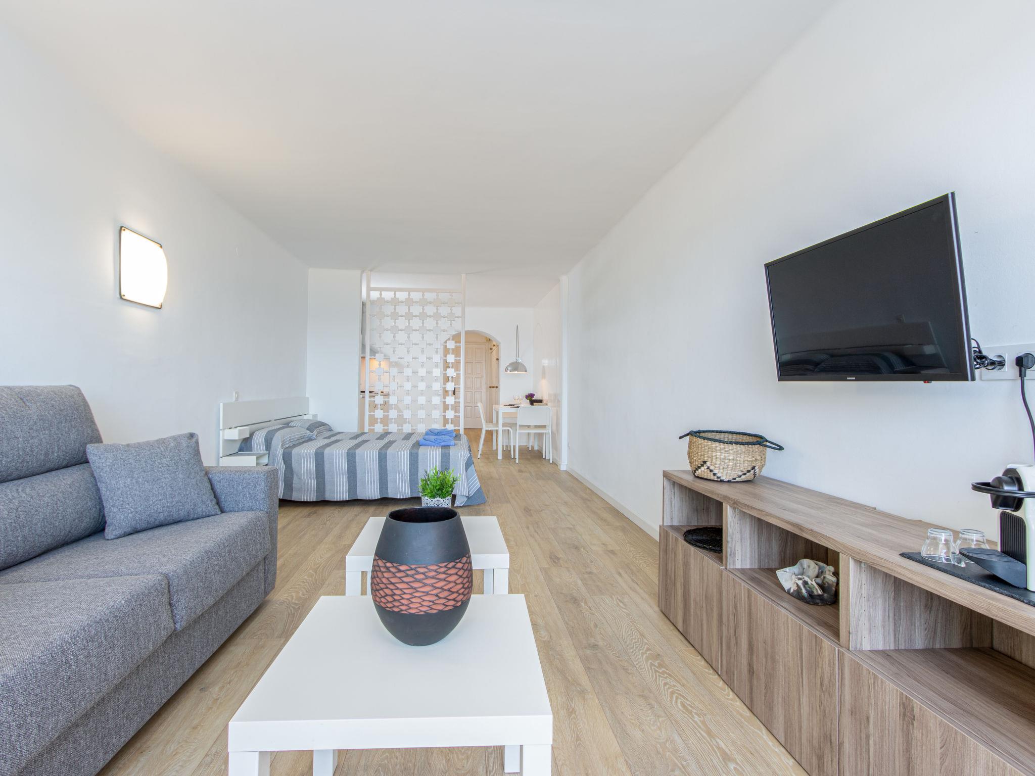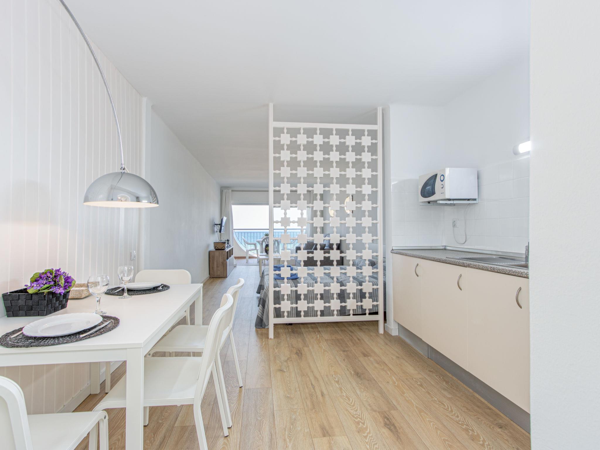 "Bahia I", 1-room apartment 47 m2 on 6th floor. Practical furnishings: large living/dining room with 2 beds (90 cm), 1 double sofabed, digital TV and flat screen. Exit to the terrace. Open kitchen (microwave). Shower/WC. No heating option. Terrace 8 m2. Terrace furniture. Marvellous panoramic view of the sea. Facilities: washing machine. Internet (WiFi, free). Please note: TV only ES. Fully renovated in 2020. HUTG010189 // Reg. Nr.: ESFCTU000017020000436494000000000000000000HUTG0101897