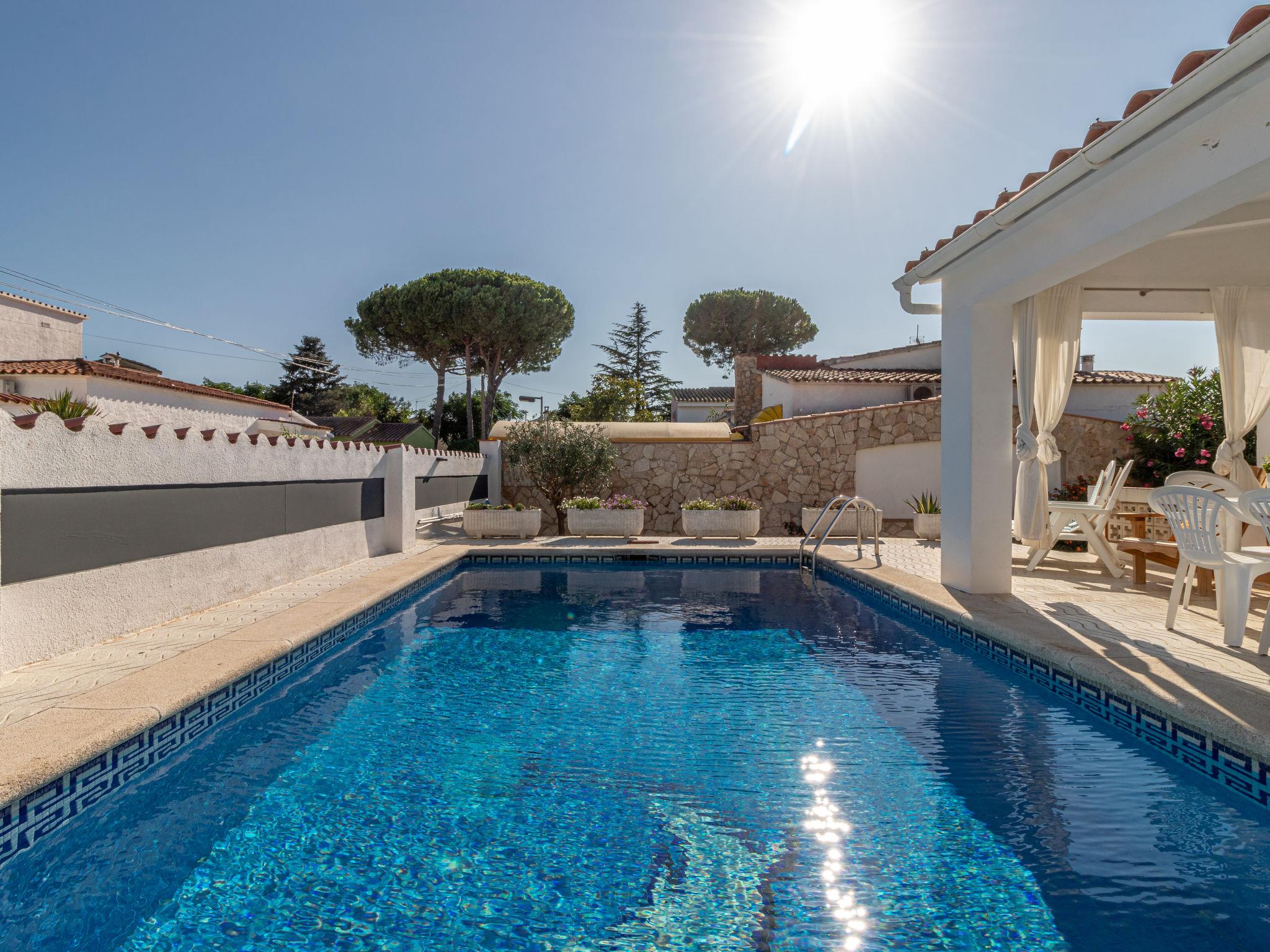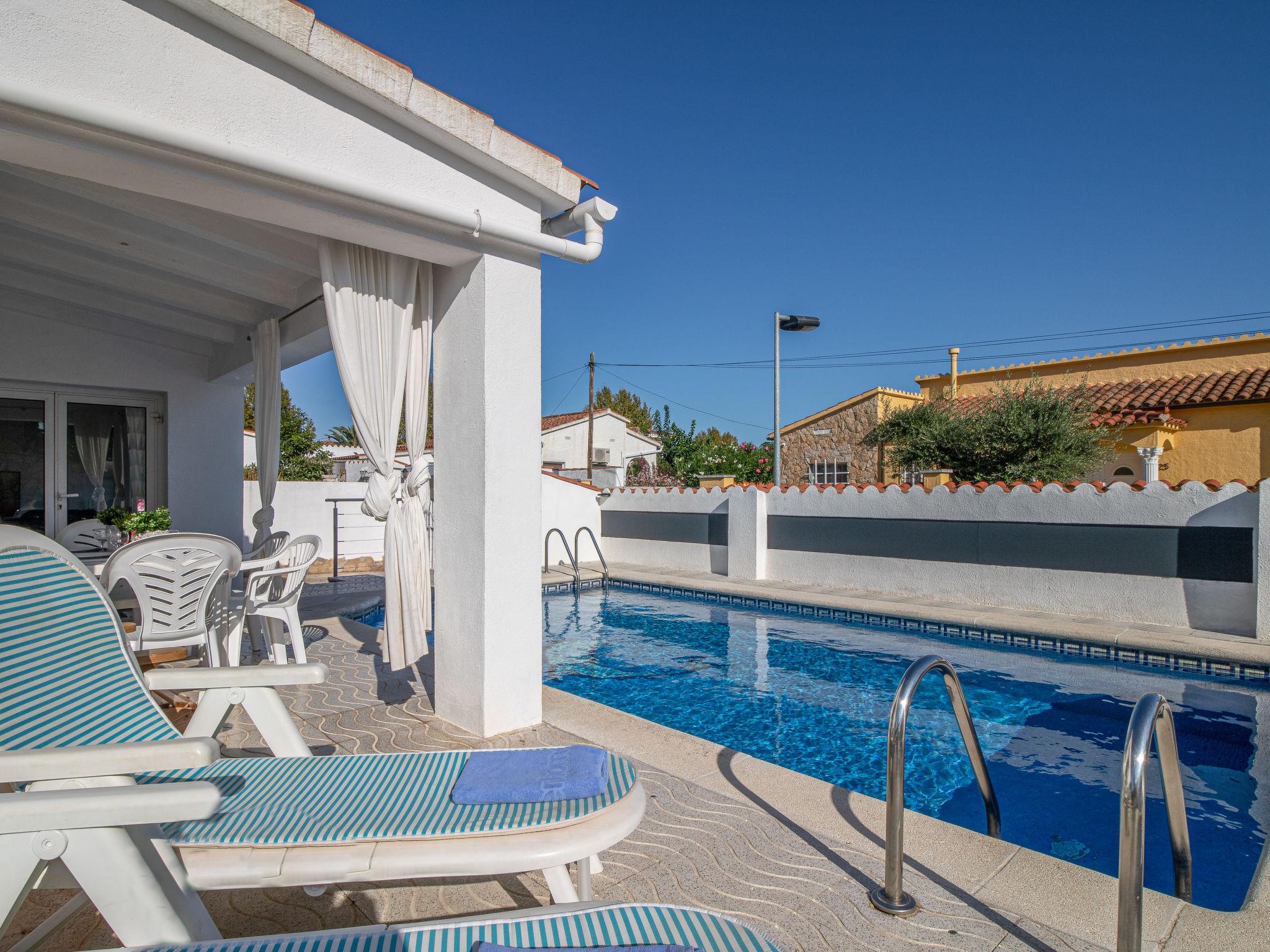 Cosy, comfortable house "Montgri". In the district of Montgri, 800 m from the centre of Empuriabrava, in a quiet, sunny position residential area (villas), traffic calmed area, 1 km from the sea, 1 km from the beach, 220 m from the river, in a cul-de-sac. Private: property (fenced), beautiful, well-kept garden with lawn and wildlife garden, swimming pool angular (4 x 7 m, seasonal availability: 01.Jan. - 31.Dec.). Outdoor shower, pergola, terrace, garden furniture, barbecue. In the house: washing machine. Parking (for 2 cars) on the premises. Shop 550 m, grocery, supermarket 1 km, shopping centre 800 m, restaurant 350 m, bar, bakery 550 m, café, bus stop 300 m, sandy beach "Empuriabrava" 800 m. Sports harbour 3 km, golf course (18 hole) 5 km, tennis 2 km, minigolf 800 m, cycle lane 250 m. Nearby attractions: Túnel del viento y skydive Empuriabrava 2 km, Parque Acuático Roses 6 km, Casino y festival de Peralada 12 km, Museo Dalí Figueres 15 km, Ruïnes de Empuries 21 km, Monasterio de Sant Pere de Rodes 23 km. The keys‘ handover takes place by the agency Interhome in Empuriabrava.