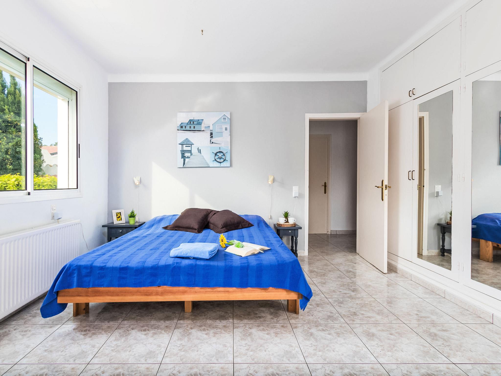 4-room house 120 m2. Bright, practical and comfortable furnishings: living/dining room with dining table, satellite TV and digital TV (flat screen). Exit to the terrace, to the swimming pool. 1 room with 1 double bed (2 x 80 cm, length 190 cm), shower/WC. 1 large room with 1 double bed (2 x 80 cm, length 190 cm). Exit to the terrace, to the swimming pool. 1 room with 1 double bed (2 x 80 cm, length 190 cm). Open kitchen (4 hot plates, oven, dishwasher, microwave, electric coffee machine) with bar. Bath/WC. No heating option. Garden, lawn. Terrace furniture, barbecue, deck chairs (4), covered balcony. View of the swimming pool. Facilities: washing machine, iron. Internet (WiFi, free). Parking (fenced 2 cars). Please note: maximum 1 pet/ dog allowed. TV only FR, DE, ES. The room that has a bathroom has no door between them. HUTG008192 // Reg. Nr.: ESFCTU000017020000079950000000000000000000HUTG0081922