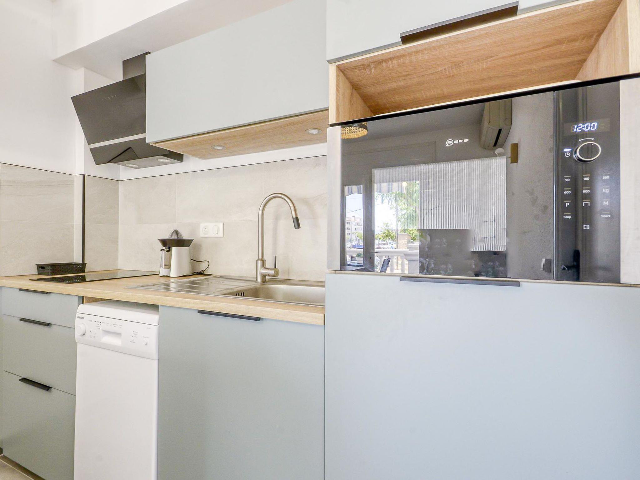 Simple apartment block "Port Mistral", 3 storeys. In the district of Alberes 1.2 km from the centre of Empuriabrava, in a quiet, sunny position, traffic calmed area, 1.5 km from the sea, directly by the canal. Public parking on the road. Grocery, supermarket 50 m, shopping centre 100 m, restaurant, bar, bakery, internet café 50 m, bus stop "Empuriabrava Cruïlla" 2.4 km, railway station "Figueres Renfe Adif" 15 km, sandy beach "Empuriabrava" 1.5 km, 50 m. Sports harbour 2 km, golf course (18 hole) 15 km, sailing school 2 km, tennis 600 m, minigolf 600 m, riding stable 1.2 km, walking paths from the house 50 m, cycle lane. Nearby attractions: Centro paracaidismo Skydive 1 km, Túnel del viento Empuriabrava 1 km, Parque acuático Aquabrava Roses 4 km, Museo Dalí Figueres 15 km, Casino y castillo de Peralada 14 km, Cadaqués y Cap de Creus 25 km. The owner does not accept any youth groups. The keys‘ handover takes place by the agency Interhome in Empuriabrava. The building is situated on the shores of the canal, next to a green zone.
