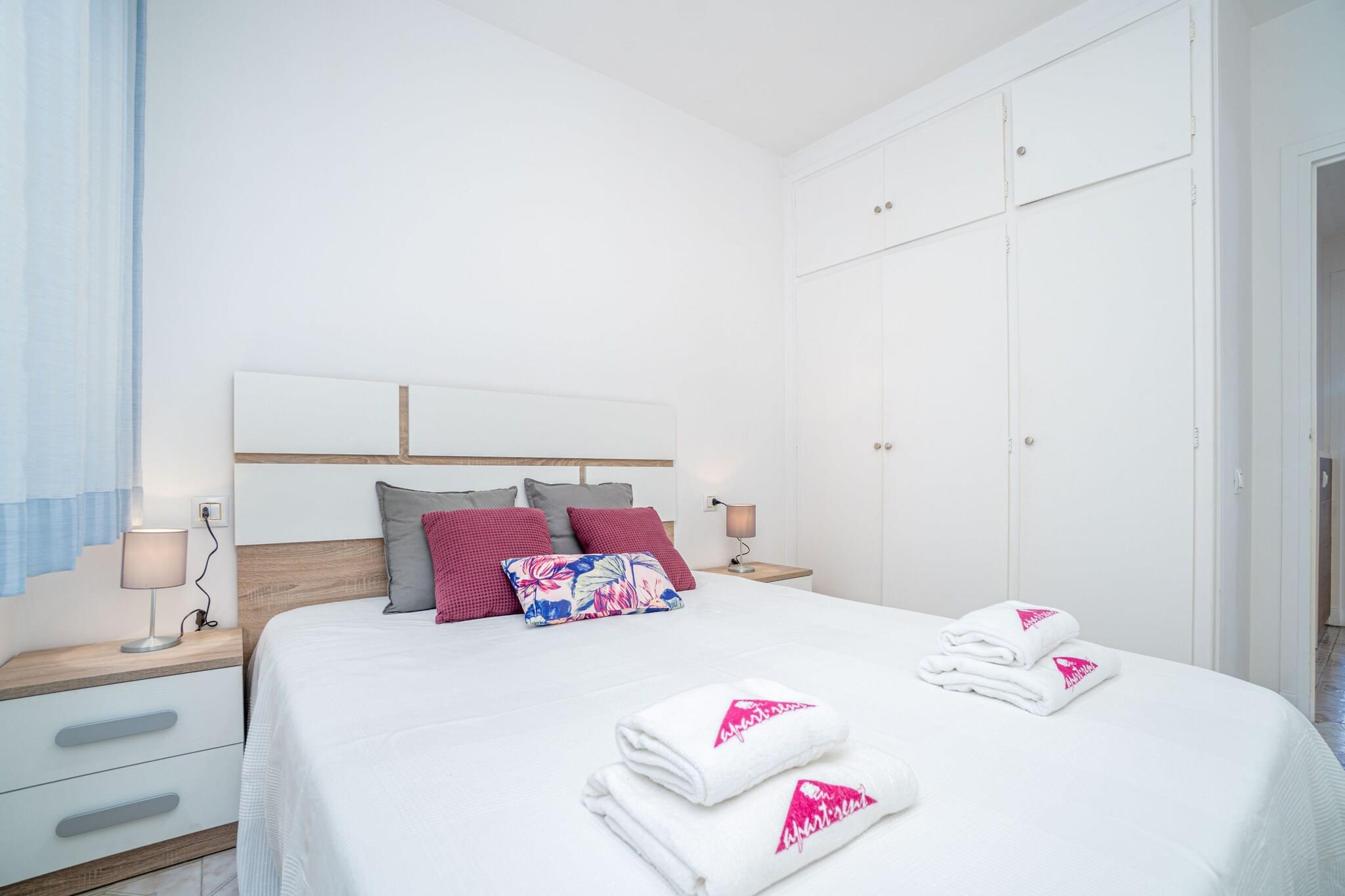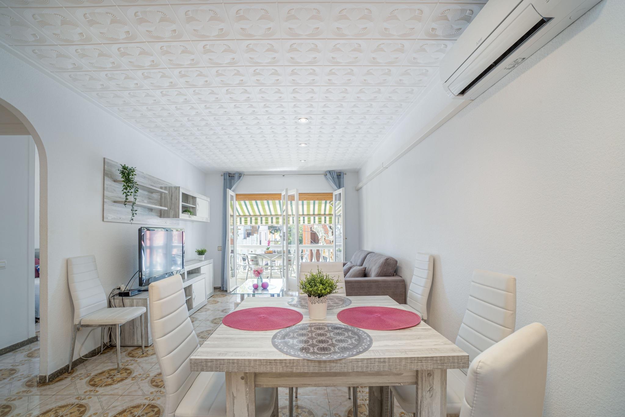 Denne lyse og romslige leiligheten med 2 soverom i Empuriabrava er ideell for familier eller små grupper, og har komfortabel plass til opptil 6 gjester. Med 63 m² boareal og en privat terrasse, tilbyr den en avslappet og praktisk beliggenhet bare 1 km fra sandstranden og 800 meter fra et supermarked. Beliggende i et livlig, familievennlig nabolag nær butikker og restauranter, er det et flott utgangspunkt for å utforske Costa Brava. Leiligheten har to doble soverom og en dobbel sovesofa i stuen. Det åpne kjøkkenet er fullt utstyrt med keramisk koketopp, stekeovn, mikrobølgeovn, kaffetrakter, brødrister og vannkoker. Gjestene kan nyte fasiliteter som Wi-Fi, klimaanlegg i stuen, elektrisk oppvarming, vaskemaskin og TV. Terrassen med hagemøbler gir et hyggelig uteområde for å spise eller slappe av. Leiligheten ligger i første etasje, er kjæledyrvennlig på forespørsel og tilbyr enkel tilgang til lokale attraksjoner som Aquabrava badeland (8 km), Peralada Golf (16 km) og Figueres AVE/TGV-stasjon (20 km). Girona lufthavn ligger 60 km unna. Med sin praktiske beliggenhet, viktige fasiliteter og rimelige pris er denne leiligheten et godt valg for en komfortabel strandferie.