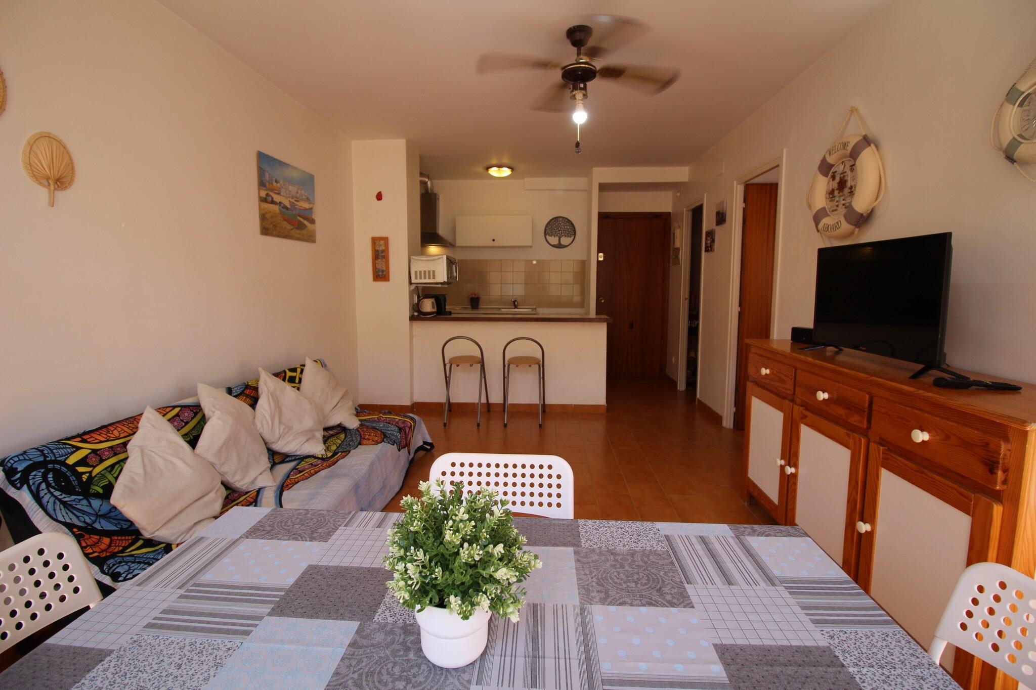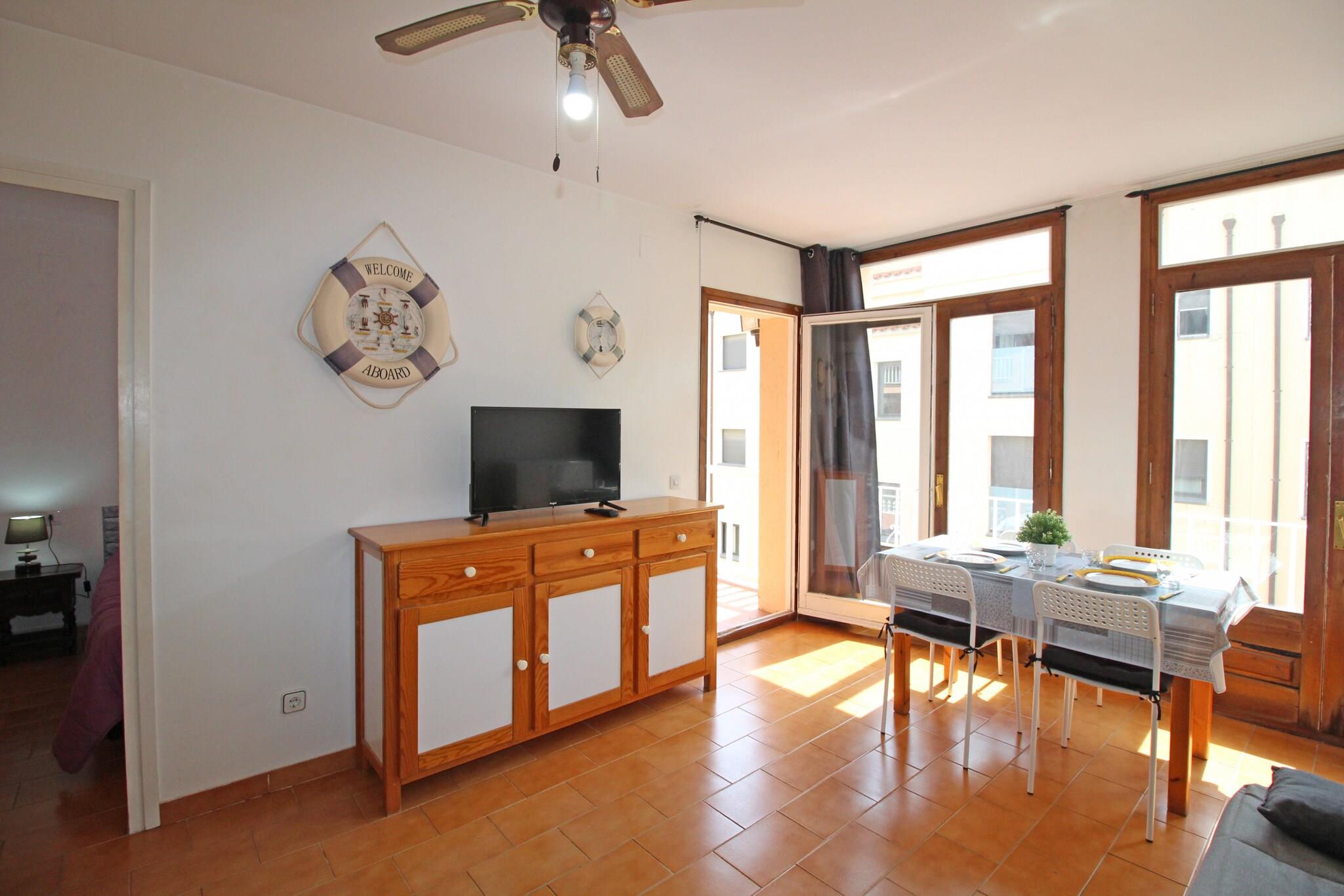 Denne koselige leiligheten på 39 m² i Empuriabrava er perfekt for par eller små familier, og tilbyr overnatting for opptil 3 gjester. Den ligger i andre etasje og har ett soverom med dobbeltseng og en dobbel sovesofa i stuen. En liten terrasse på 3 m² med hagemøbler gir et hyggelig sted å nyte den friske luften, bare 300 meter fra sandstranden. Det åpne kjøkkenet er utstyrt med keramisk koketopp, kjøleskap, mikrobølgeovn, vaskemaskin, kaffetrakter og alt nødvendig utstyr for et komfortabelt selvhushold. Leiligheten har også Wi-Fi (valgfritt), TV, en vifte og tilgang til et felles svømmebasseng (tilgjengelig mot et gebyr, med detaljer hos conciergen). Kjæledyr er velkomne på forespørsel, noe som gjør den til et flott alternativ for kjæledyreiere. Leiligheten har en beleilig beliggenhet i nærheten av et supermarked (150 m) og nær restauranter, butikker og lokale attraksjoner, og ligger godt til for å utforske området. Gjestene kan enkelt komme seg til badelandet Aquabrava (12 km), golfbanen Peralada (16 km) og Dalí-museet i Figueres (20 km). Girona lufthavn ligger 65 km unna, noe som gir enkel tilgang for reisende som ønsker å nyte Costa Brava.