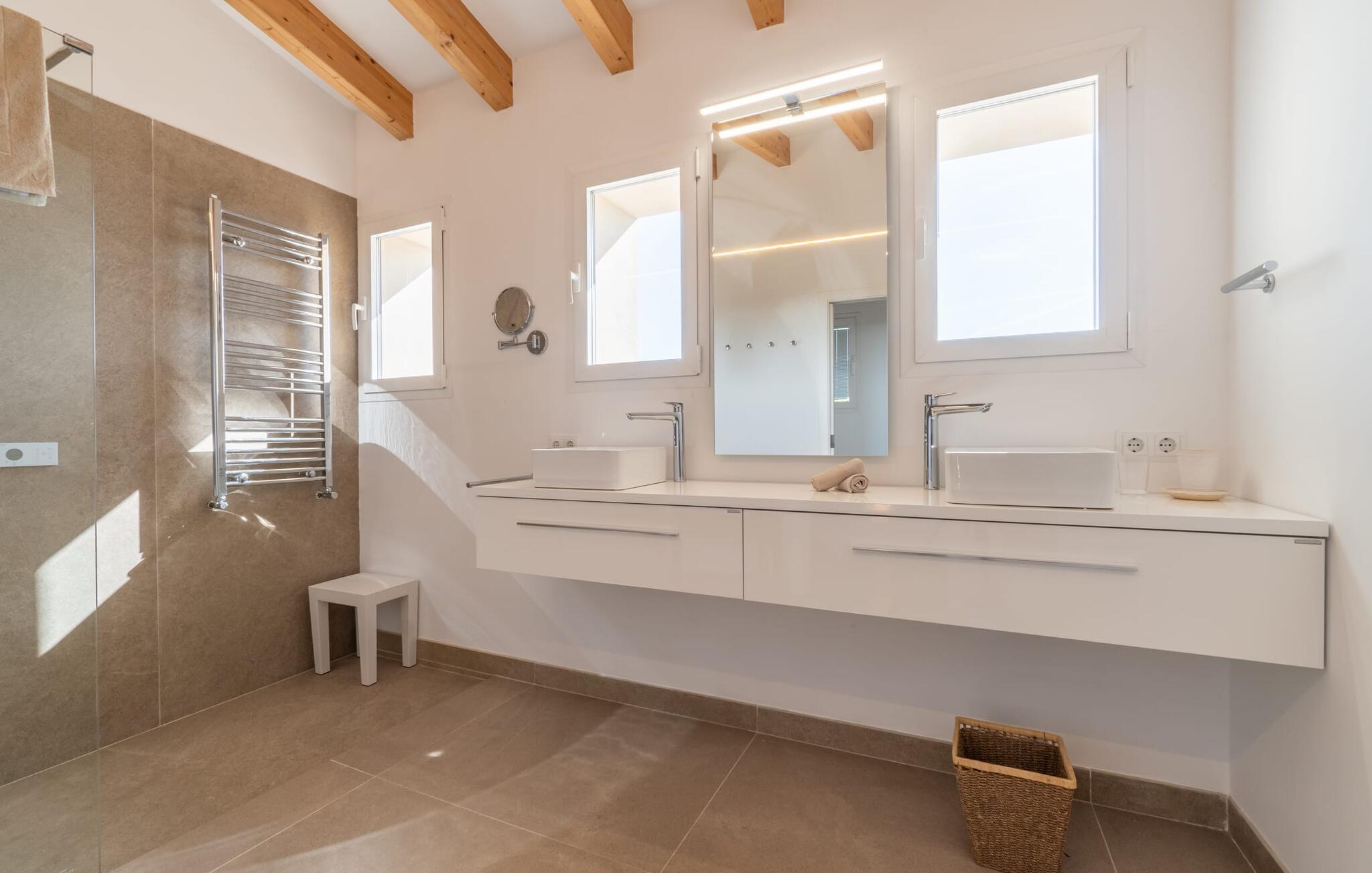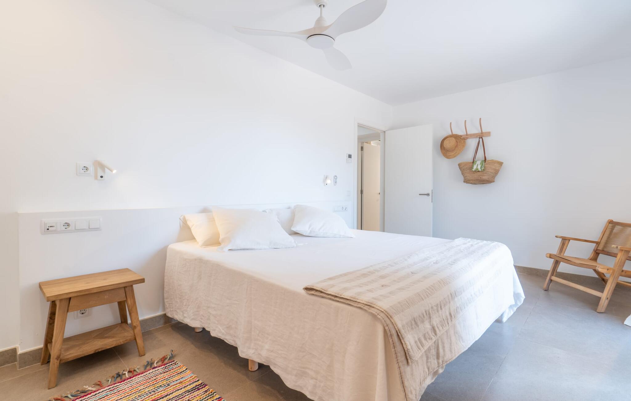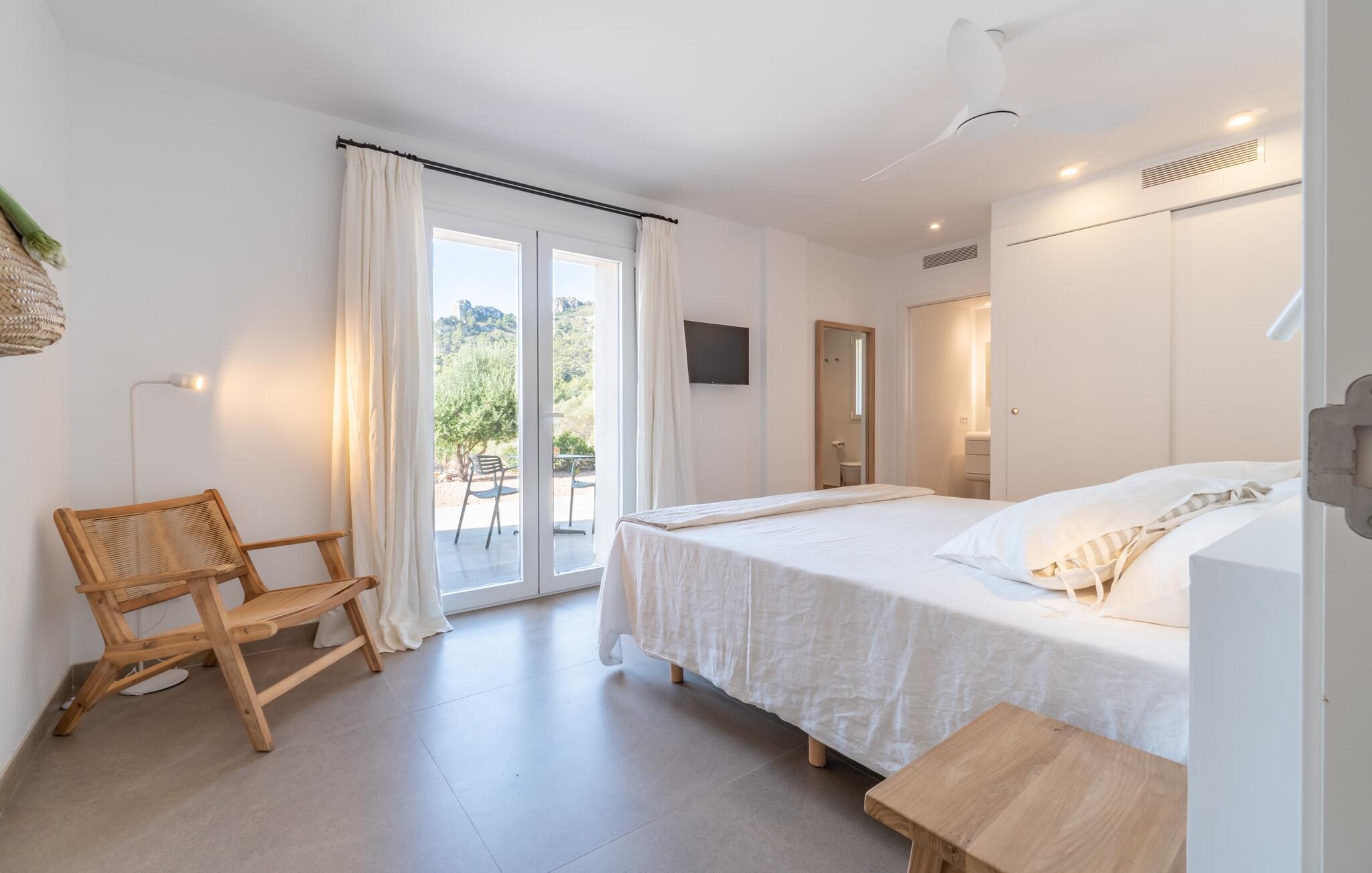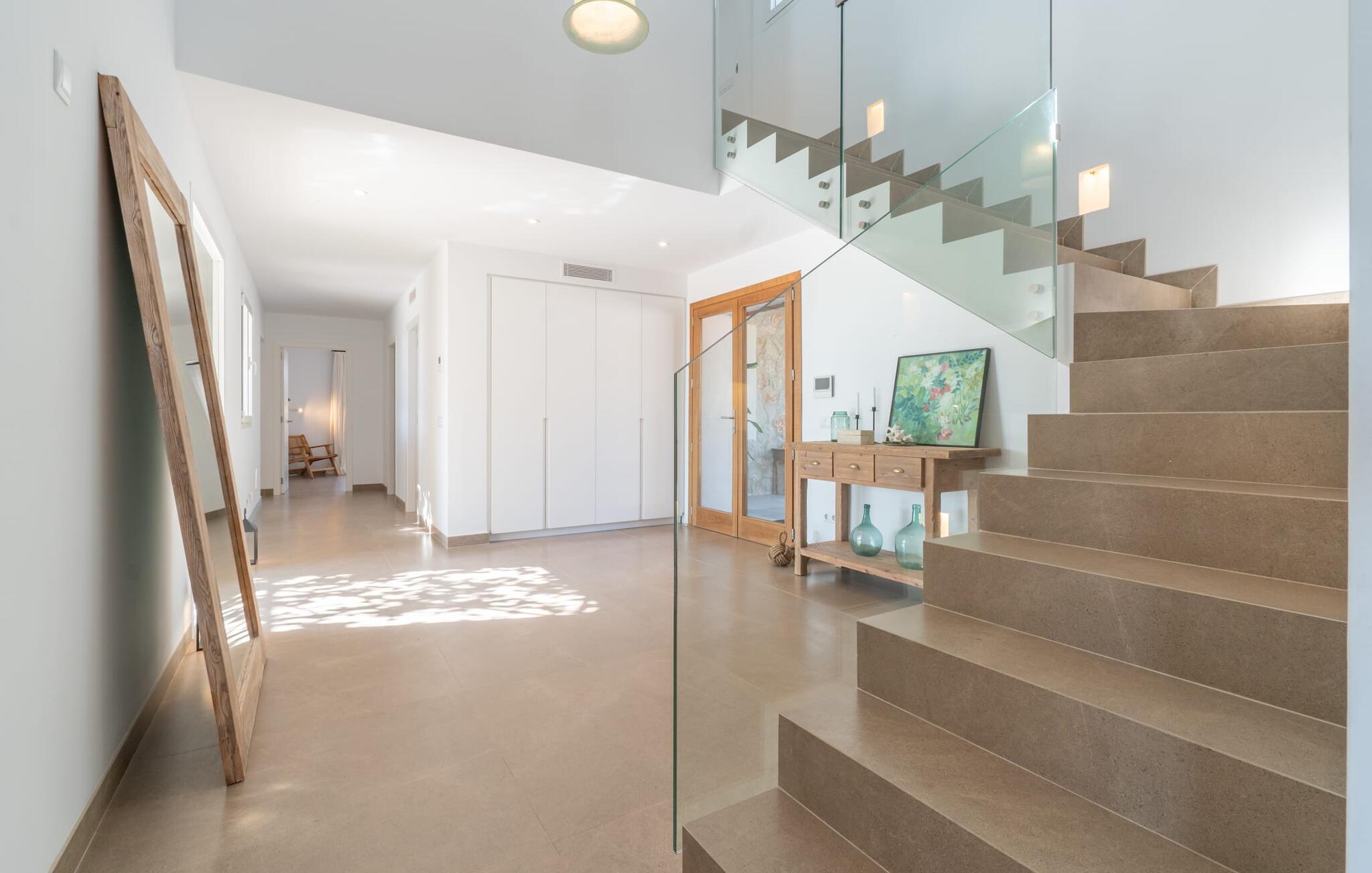 I første etasje finner du to sjarmerende soverom med dobbeltseng, hvert med sitt eget bad, samt et gjestetoalett. I andre etasje. Et romslig hovedsoverom med omkledningsrom og stort bad venter på deg. Den tilstøtende terrassen tilbyr fantastisk utsikt helt til havet. Både soverommene og stuen er utstyrt med klimaanlegg, mens hele huset har gulvvarme for å sikre din komfort under hele oppholdet.