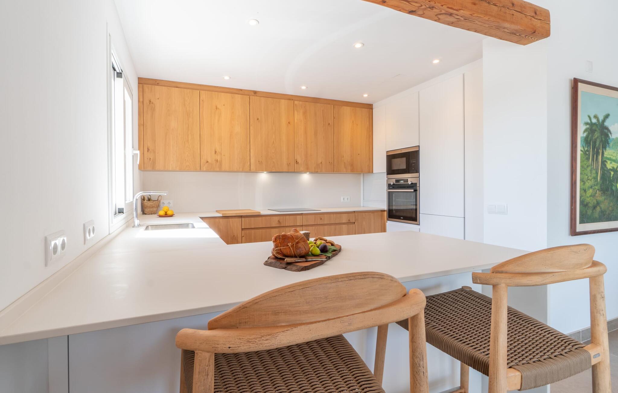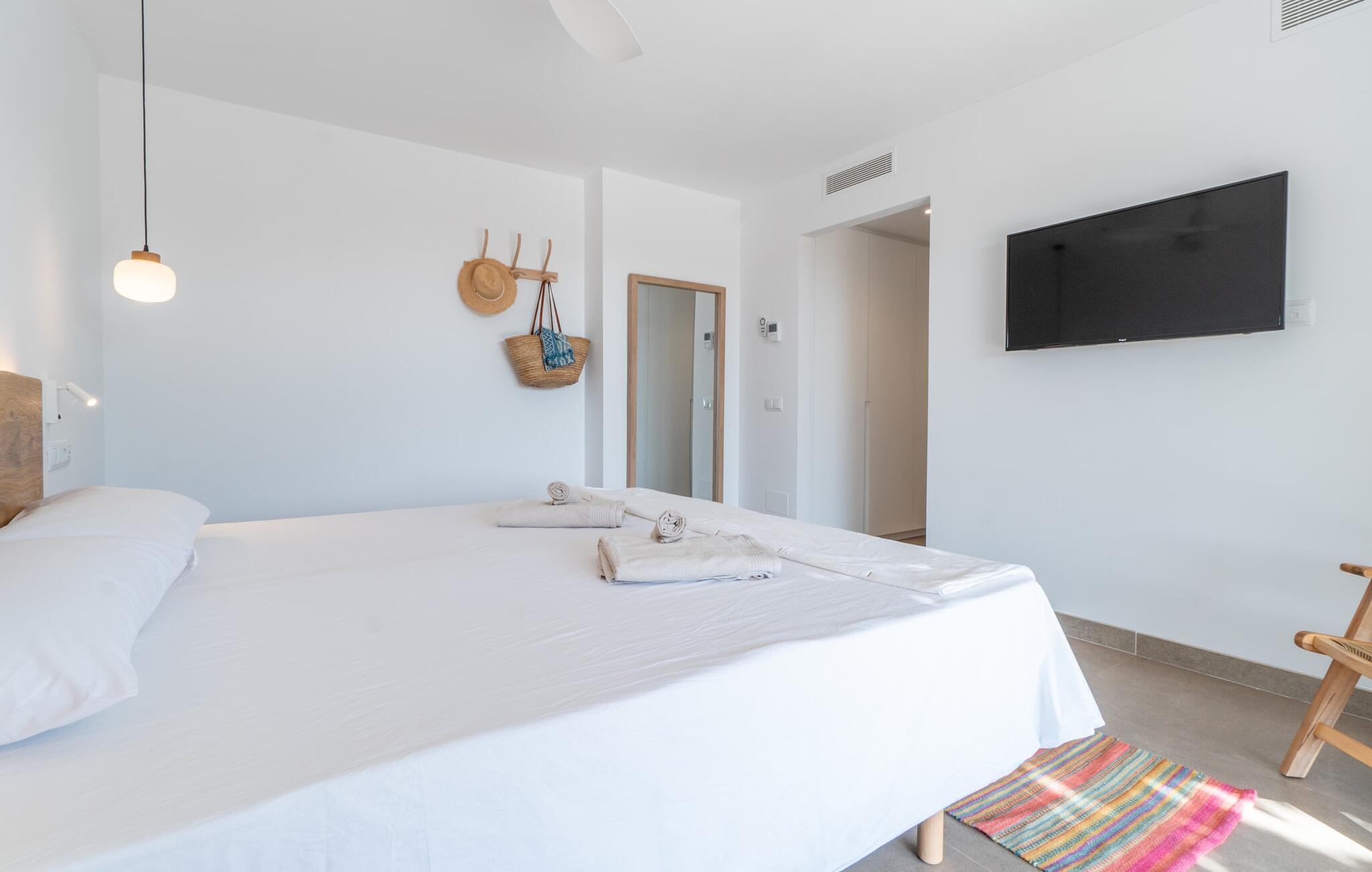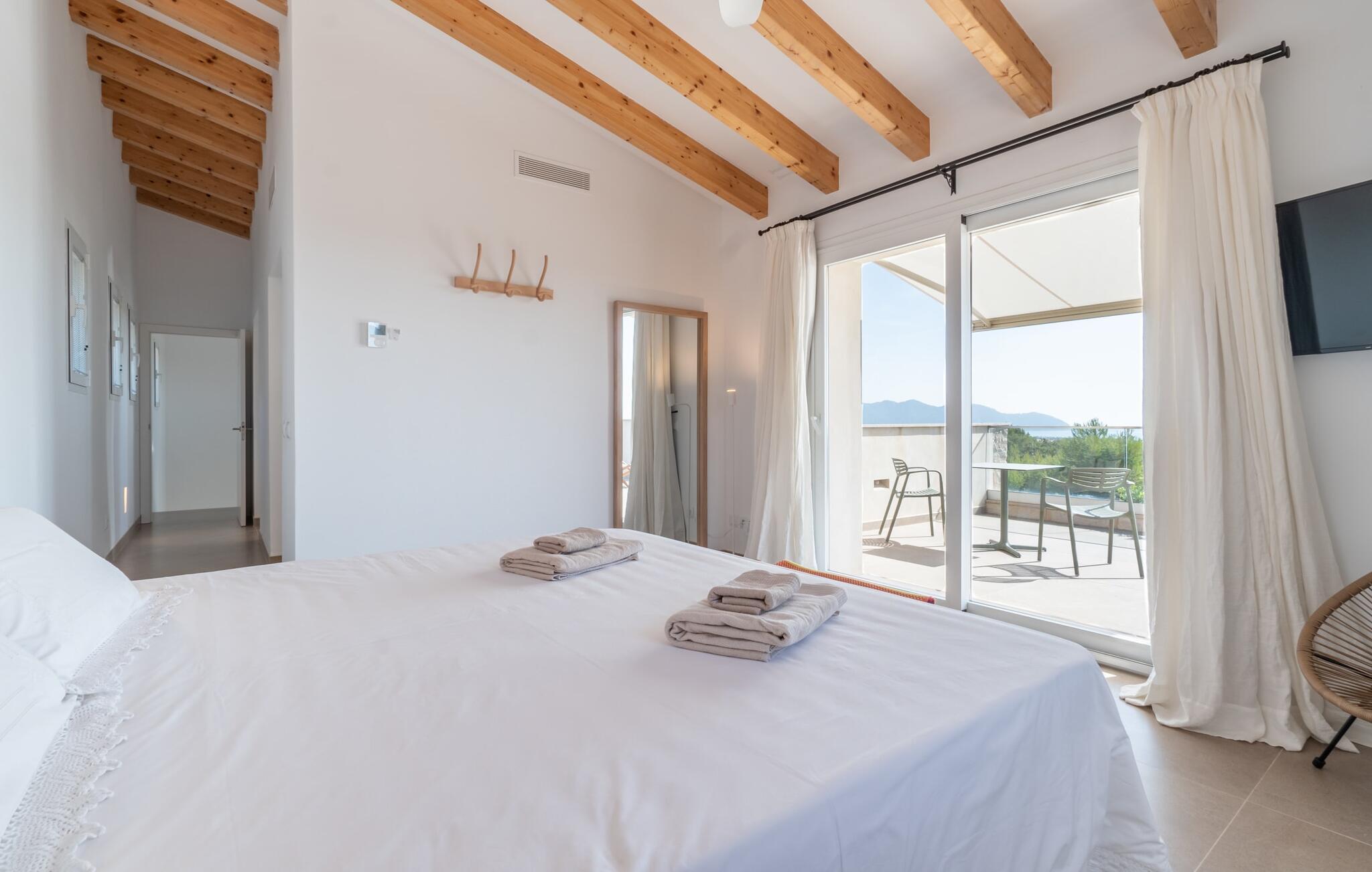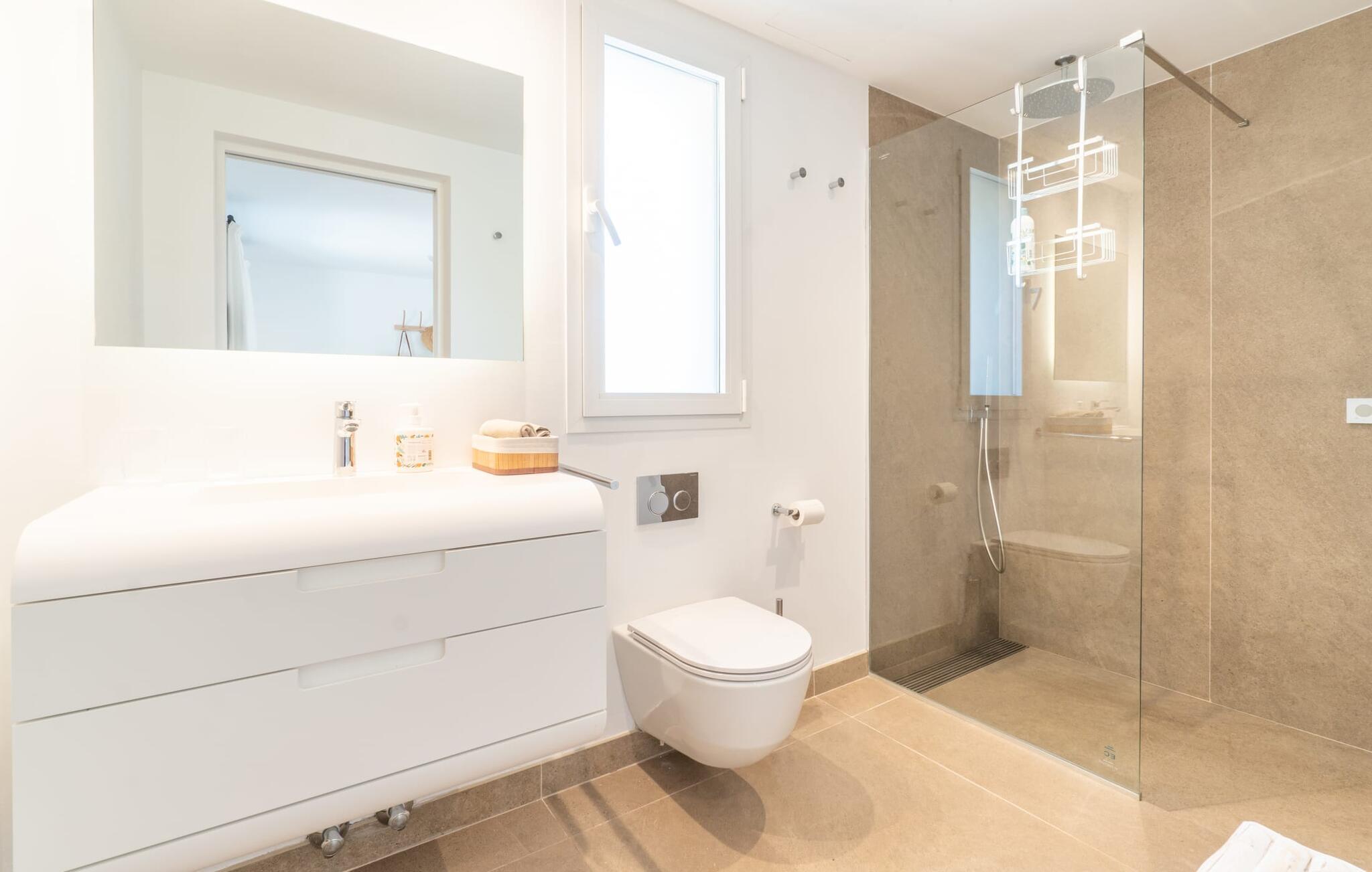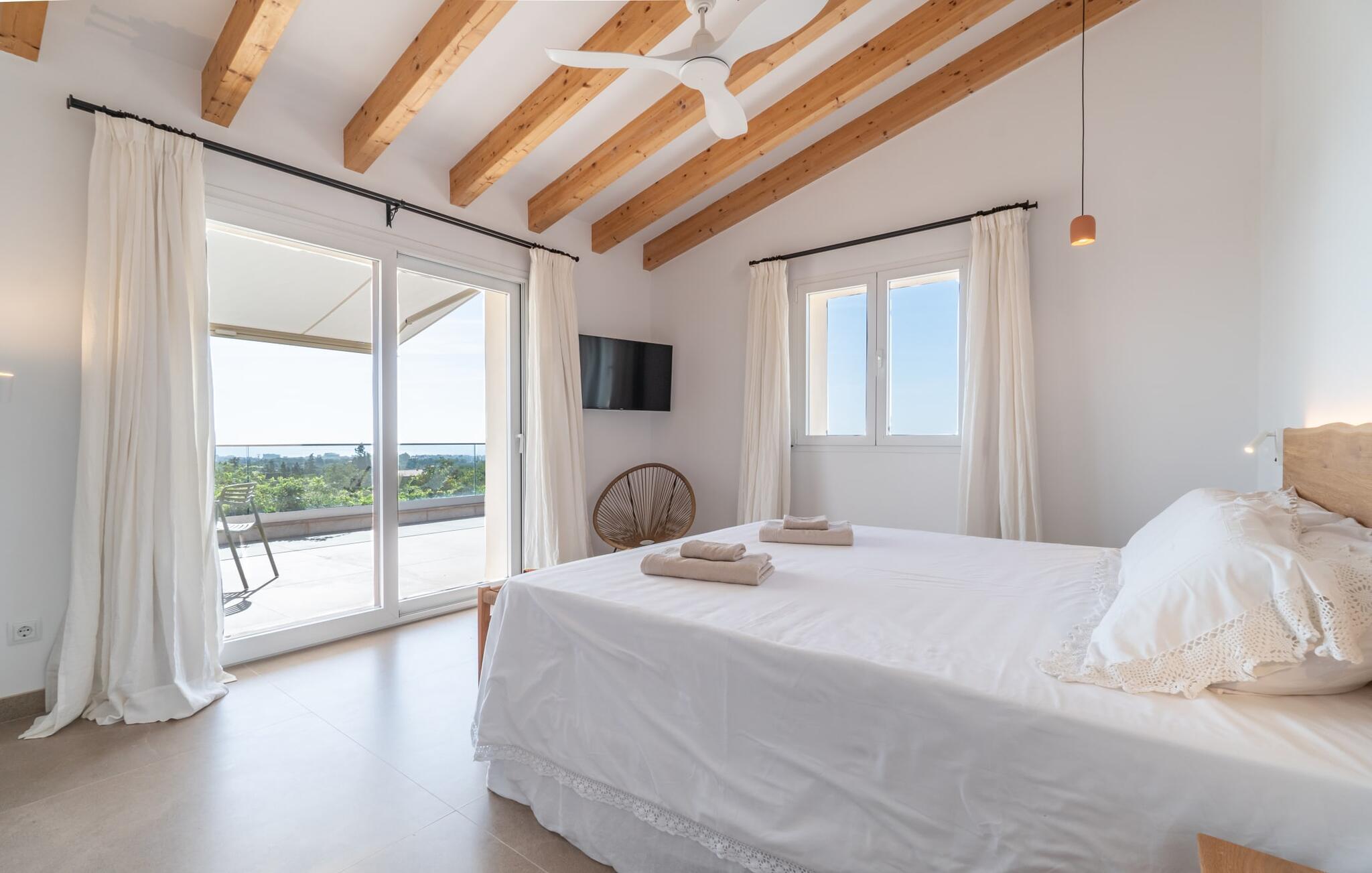 I første etasje finner du to sjarmerende soverom med dobbeltseng, hvert med sitt eget bad, samt et gjestetoalett. I andre etasje. Et romslig hovedsoverom med omkledningsrom og stort bad venter på deg. Den tilstøtende terrassen tilbyr fantastisk utsikt helt til havet. Både soverommene og stuen er utstyrt med klimaanlegg, mens hele huset har gulvvarme for å sikre din komfort under hele oppholdet.