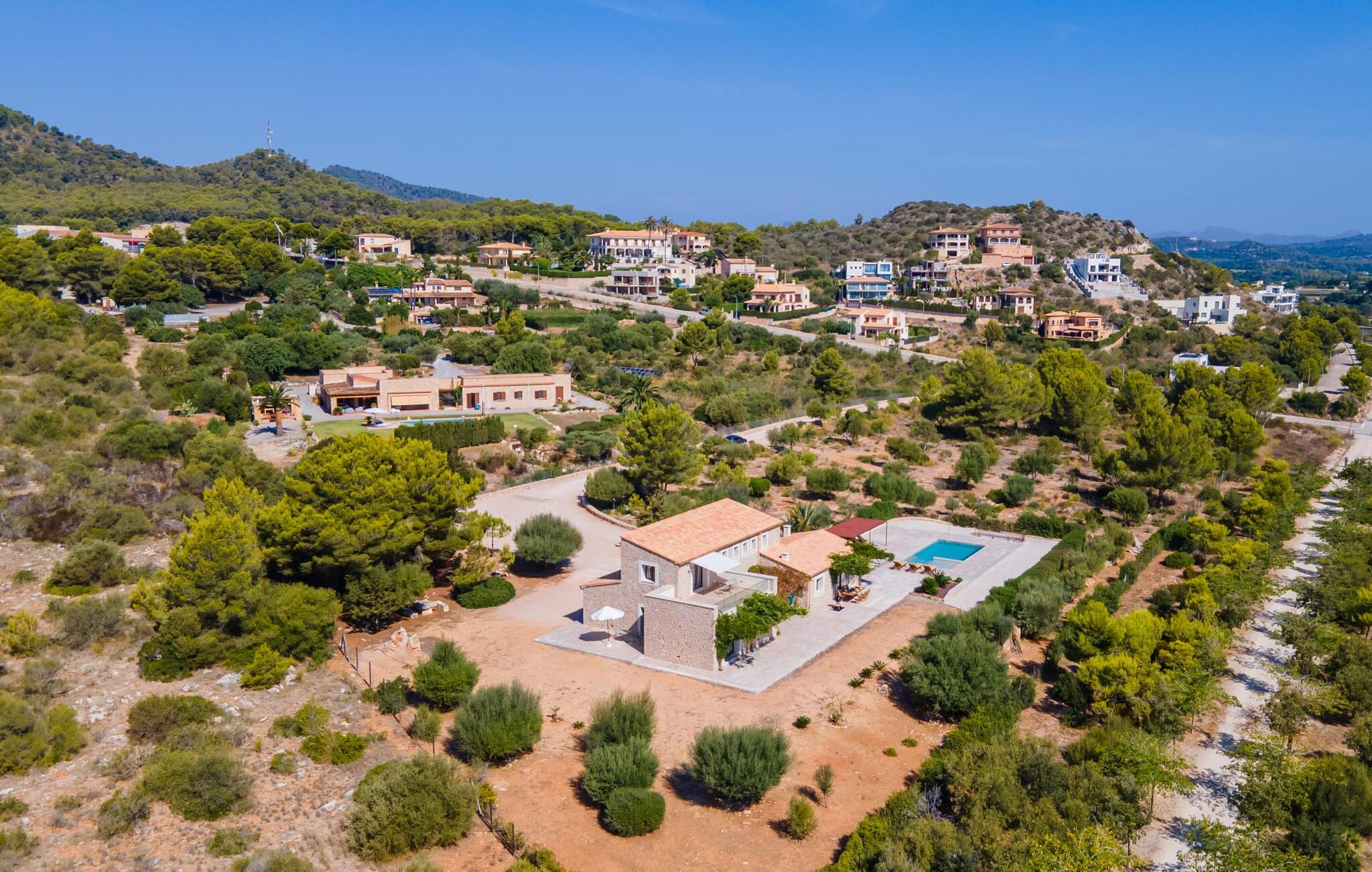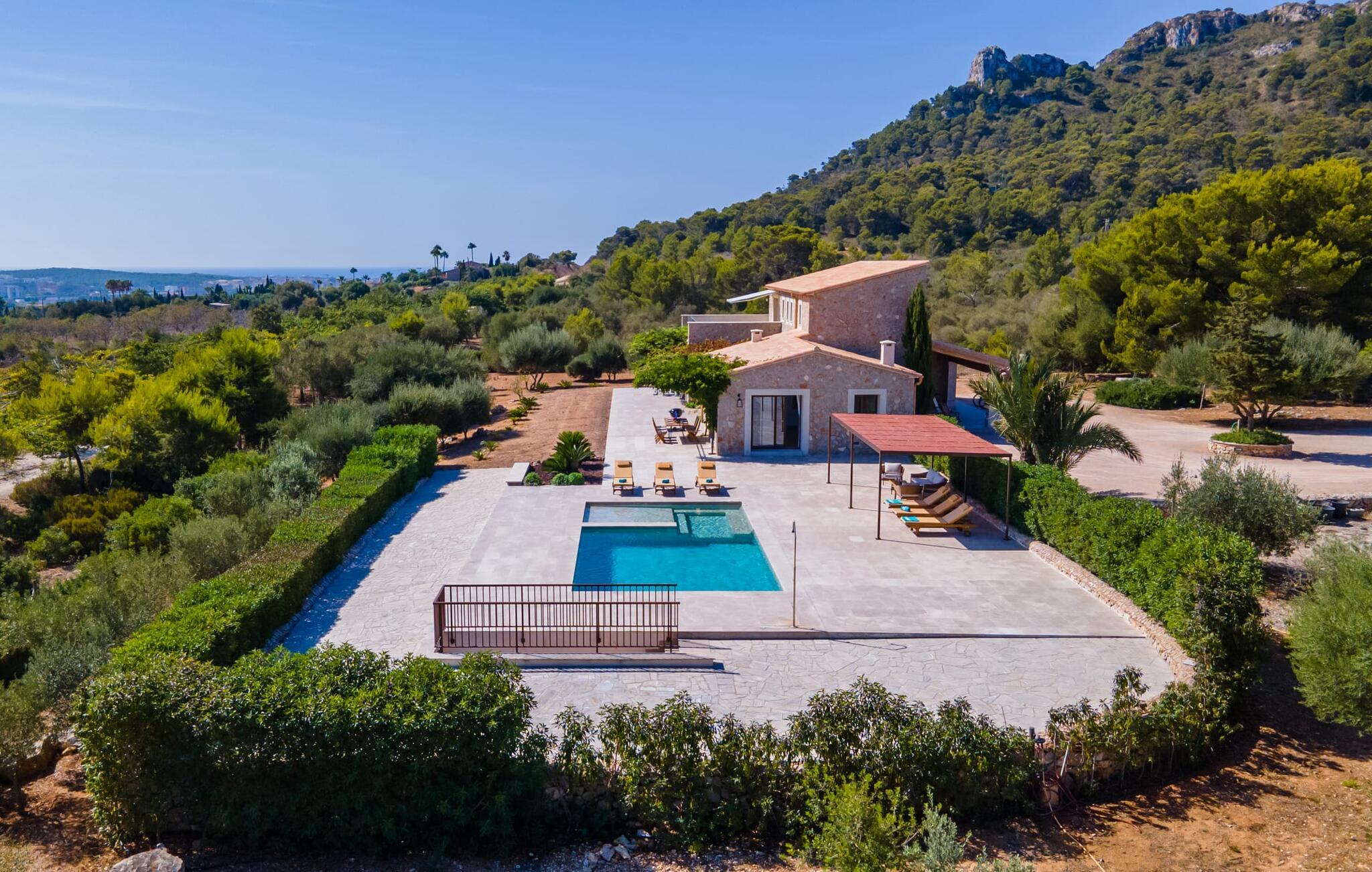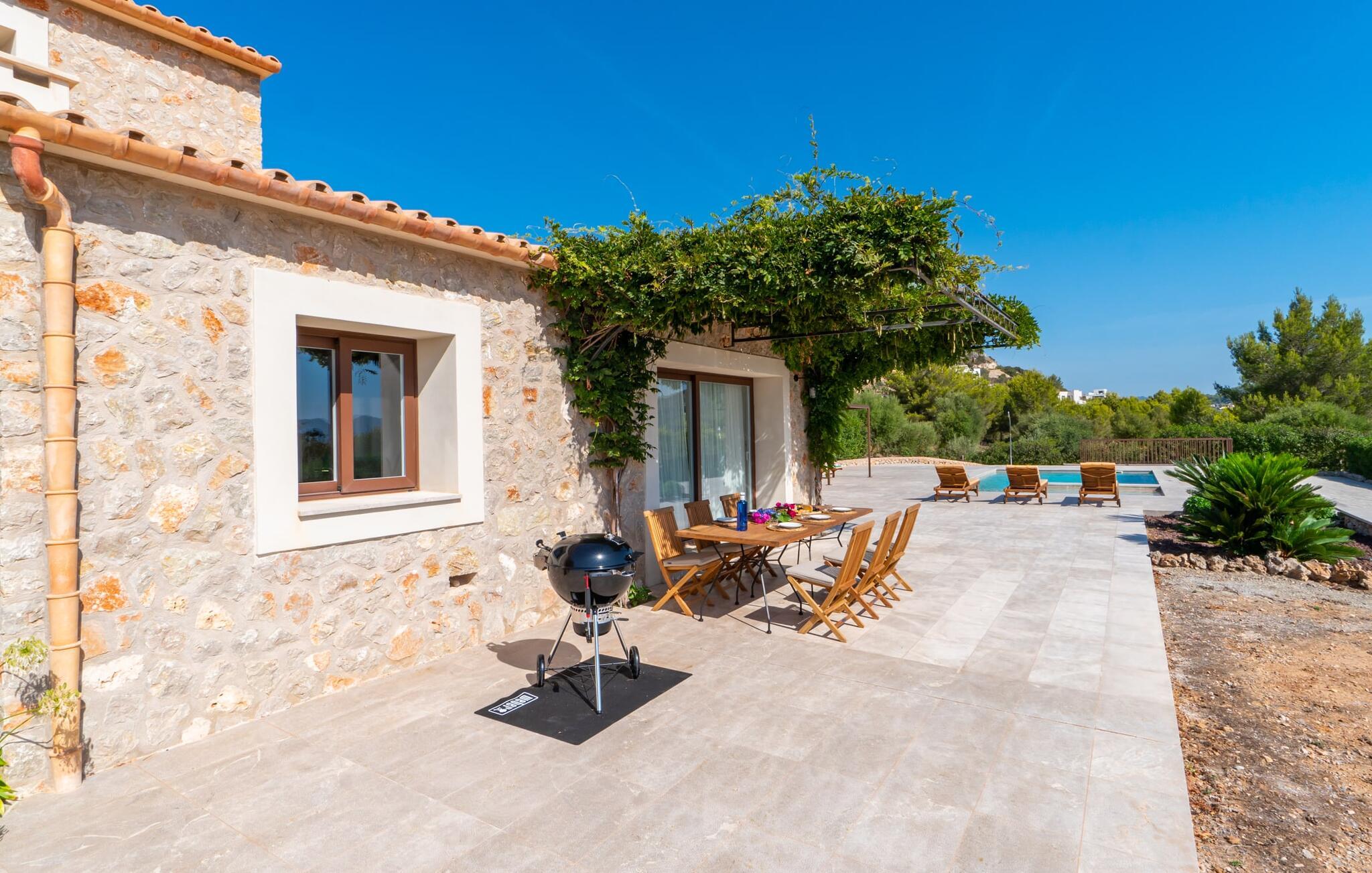 Natursteinfincaen Es Llorer de na Penyal ligger i det pittoreske landskapet nær østkysten av Mallorca, og tilbyr et fredelig tilfluktssted for ferien din. Fra den elegante bassengterrassen kan du nyte den fantastiske utsikten over det svakt bølgende landskapet.