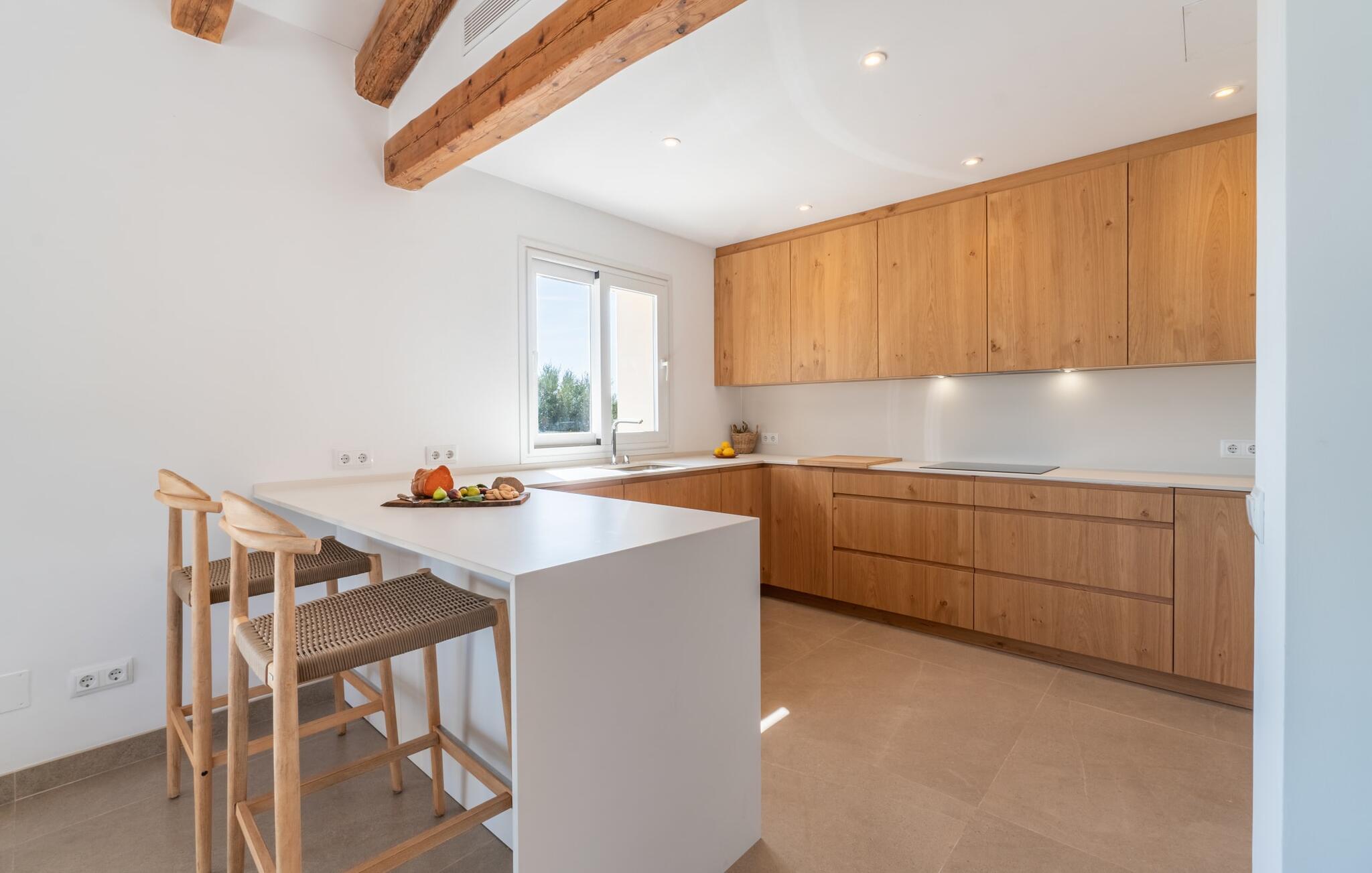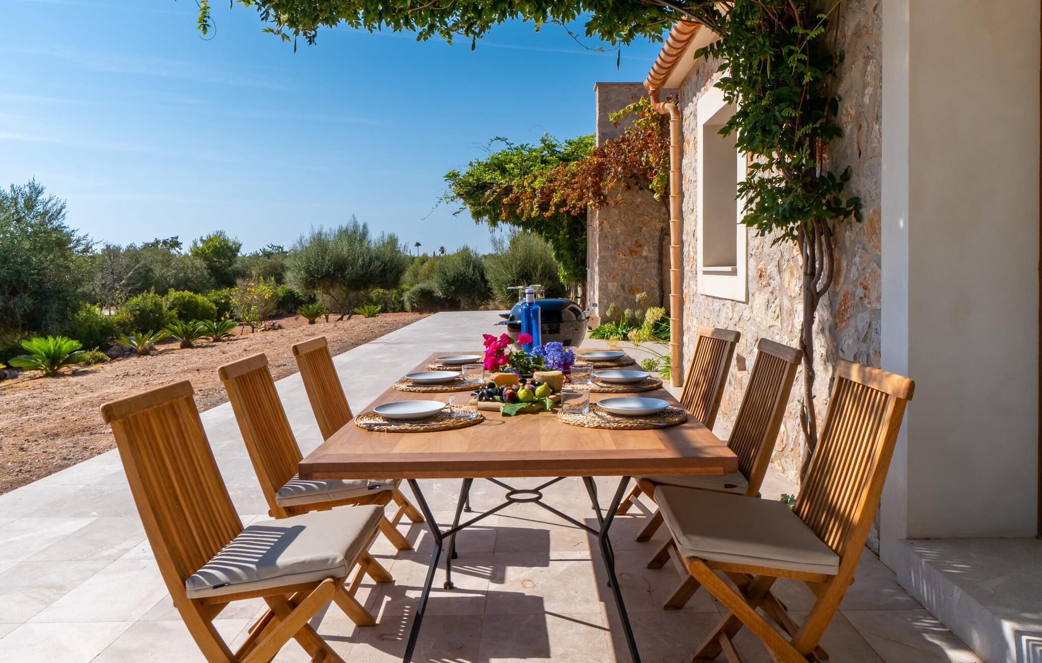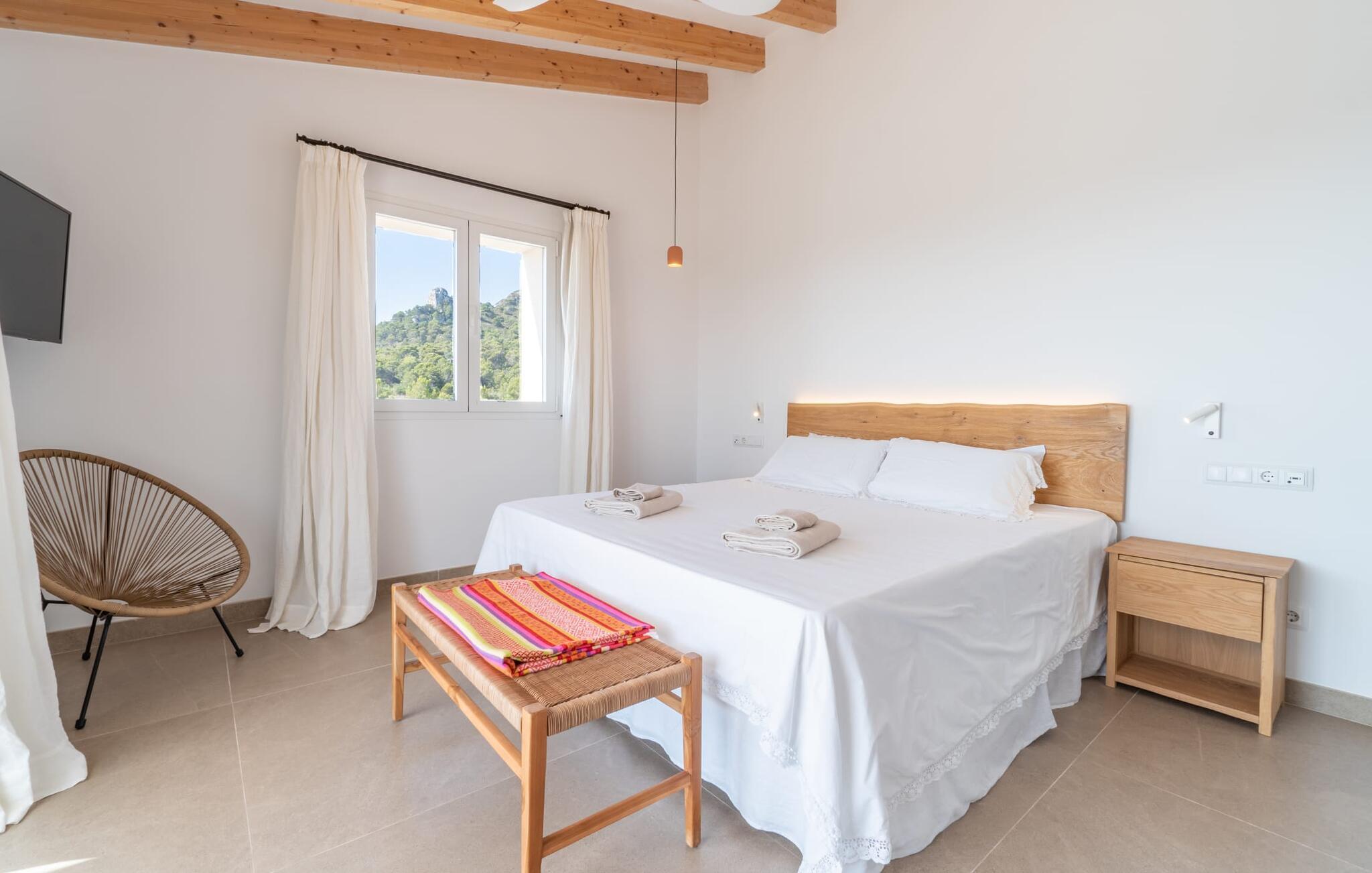 Natursteinfincaen Es Llorer de na Penyal ligger i det pittoreske landskapet nær østkysten av Mallorca, og tilbyr et fredelig tilfluktssted for ferien din. Fra den elegante bassengterrassen kan du nyte den fantastiske utsikten over det svakt bølgende landskapet.