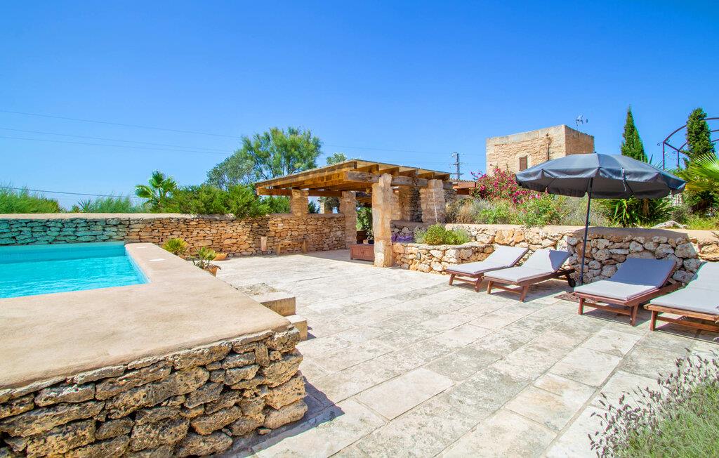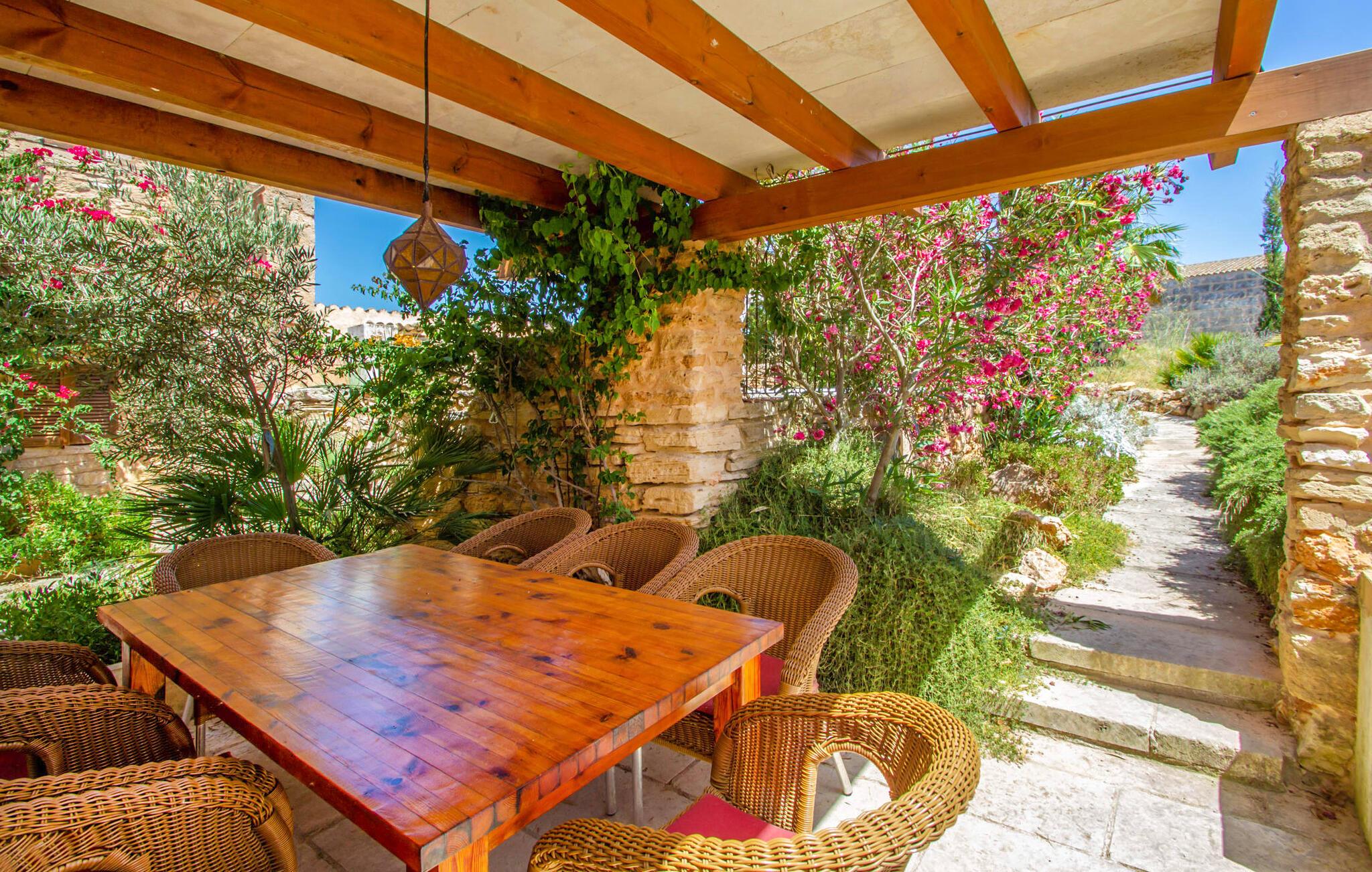 Allerede navnet Es Moli des Trenc avslører mye om hva som tiltrekker seg ved denne usedvanlig individuelle fincaen. Den historiske bygningen tilhørte en gang i tiden møllene som fremdeles preger landskapet på øya, og gjenspeiler dermed et stykke mallorkinsk historie. Den andre delen av navnet skyldes nærheten til en av de vakreste strendene på øya: drømmebukten Es Trenc, som ligger drøyt to kilometer unna, og som til og med kan nås til fots. Her kan du nyte friheten uten naboer på en fantastisk tilbaketrukket beliggenhet. Allerede utenfor den inngjerdede tomten kan du beundre saltmarkene og fjellene som regionen rundt Ses Salines er spesielt kjent for. Den fortryllende hagen ønsker deg velkommen med en frodig middelhavsflora full av palmer, sypresser, oleander og lavendel. Den rammer inn de ulike terrassene rundt huset. Du kan slappe av på de komfortable solsengene ved det opphøyde bassenget. Du kan slappe av i solen eller skyggen på terrassene, nyte freden og roen eller selskapet og nyte måltidene dine.