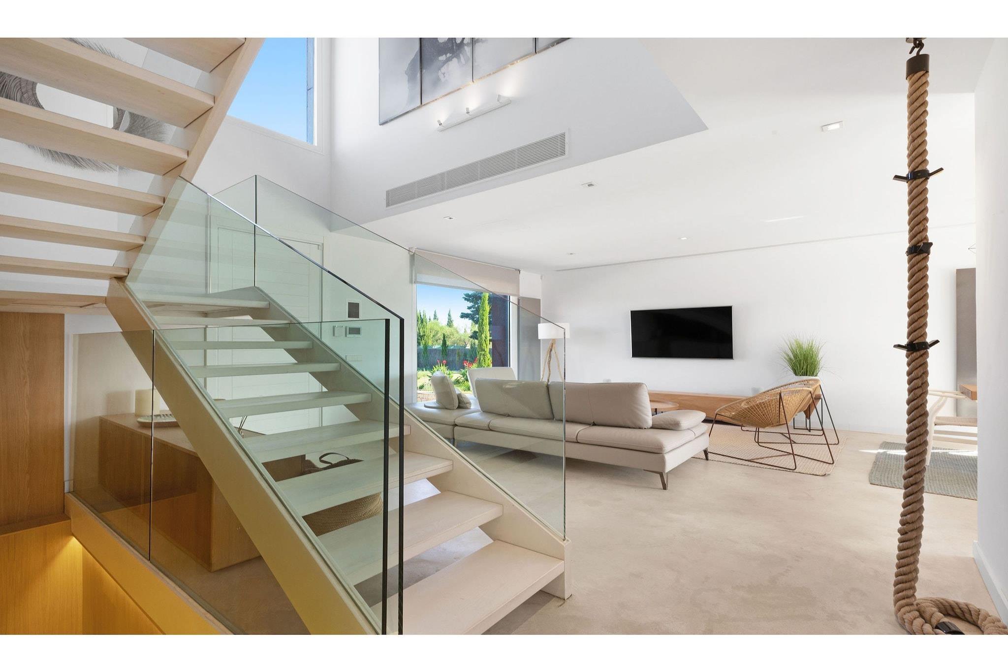 Første etasje: (Kjøkken(spisebord, bar(spisebar), komfyr(keramisk), kaffetrakter, stekovn, mikrobølgeovn, oppvaskmaskin, kjøleskap med fryser), Stue/spisestue(TV(satellitt), spisebord, sittehjørne), soveværelse(dobbeltseng(180 x 200 cm), TV(satellitt), klimaanlegg), bad(dusj(Frittstående dusj), håndvask, toalett)) i 2. etasje: (soveværelse(dobbeltseng(180 x 200 cm), TV(satellitt), klimaanlegg), soveværelse(dobbeltseng(180 x 200 cm), TV(satellitt), klimaanlegg), soveværelse(dobbeltseng(160 x 200 cm), TV(satellitt), klimaanlegg), bad(dusj(Frittstående dusj), håndvask, toalett), bad(badekar, håndvask, toalett)) treningsrom(TV(satellitt)), utendørs kjøkken, tørketrommel, dusj(utendørs), vaskemaskin, balkon, oppvarming(sentral), klimaanlegg, terrasse(140 m2), hage, hagemøbler, solsenge, grill, parkering, Parasoll, svømmebasseng(privat, 12 x 4 m.), fotballmål, terrassemøbler
