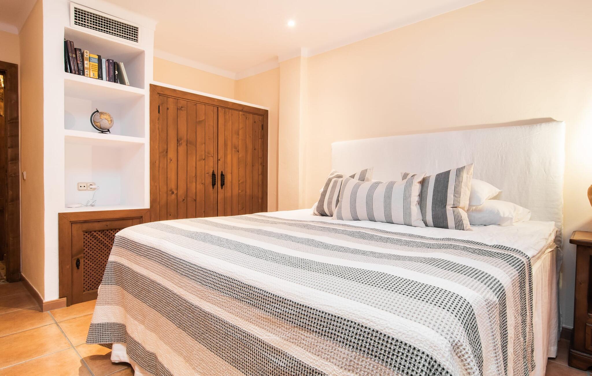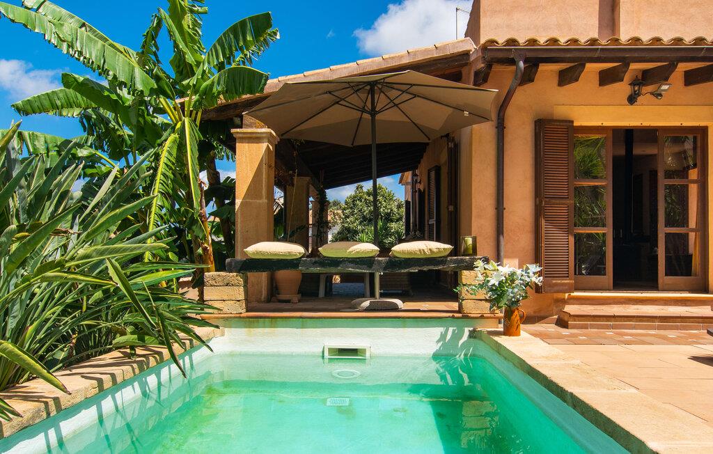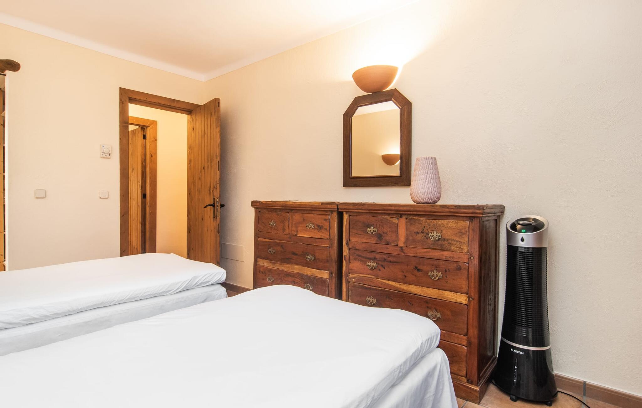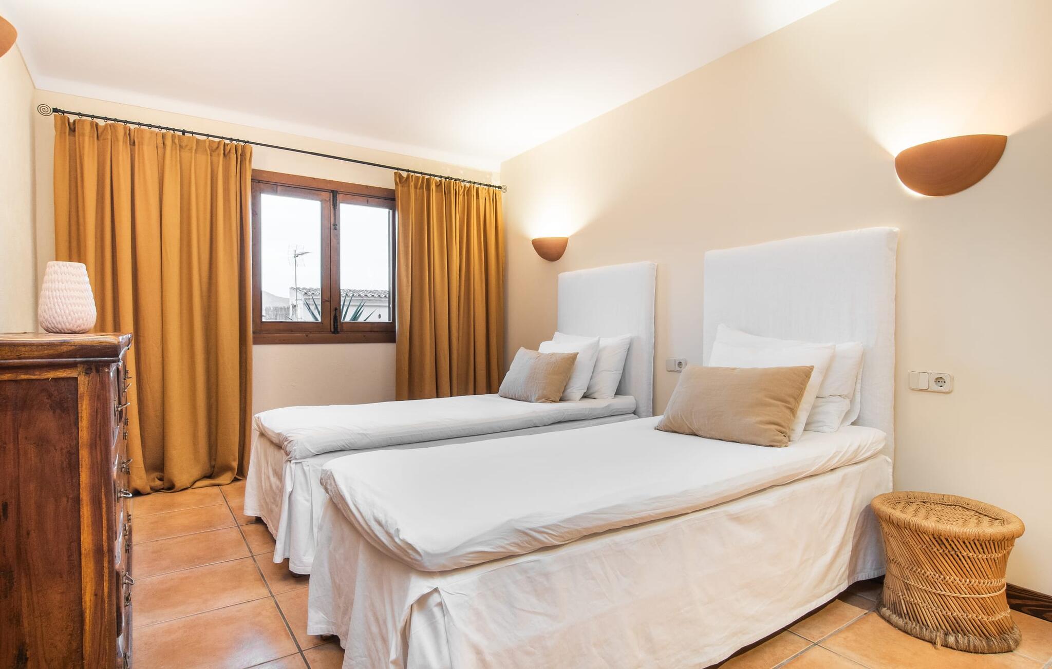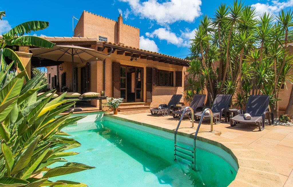 Tenk hva man kan finne gjemt på uteplasser! Veggen til nabohuset er overgrodd av klatreplanter, noe som gjør at hagen føles som en juvel som er beskyttet fra alle kanter når du sitter på den gamle trebjelken over det koselige bassenget. De som ønsker å perfeksjonere sine krabbeferdigheter på ferien, har det kanskje bedre på nærmeste strand, men de som bare setter pris på følelsen av avslapping som et basseng gir, vil tilbringe mange lykksalige timer i denne gårdsplassen som er brolagt med naturlig grus og fliser i den tradisjonelt vakre mallorkinske fargen. Hvis du ønsker å være aktiv, vil bordtennisbordet i skyggen av en pergola komme godt med. Du kan selv velge hvor du vil nyte solen på øya: enten direkte ved bassenget eller ved siden av huset. Med grillen kan du skape et kulinarisk høydepunkt, slik at ikke bare hud og sjel, men også ganen blir skjemt bort på ferien. En overbygd terrasse innbyr til å slappe av i skyggen. Når mørket faller på, tennes utendørsbelysningen som ved et trylleslag, og hagen får umiddelbart en annen form. Benytt anledningen til å oppleve den mens du morer deg med et parti sjakk eller et rimelig utfordrende puslespill.