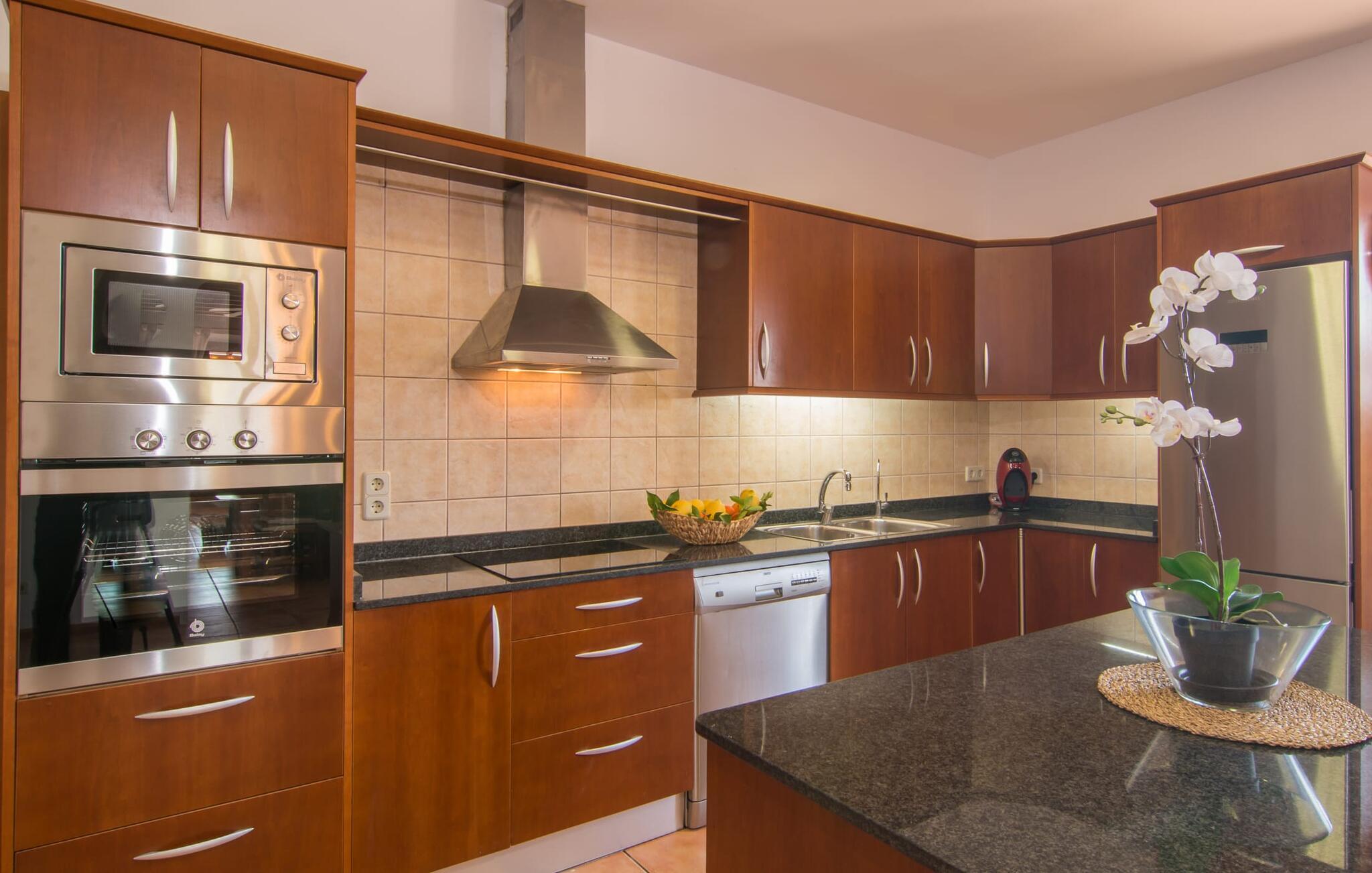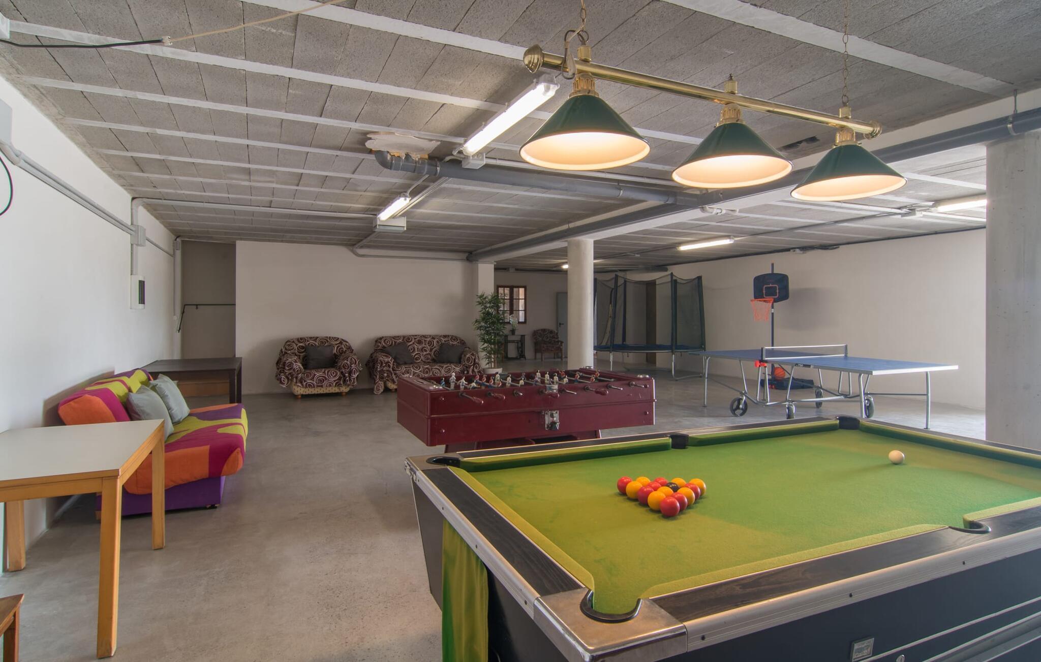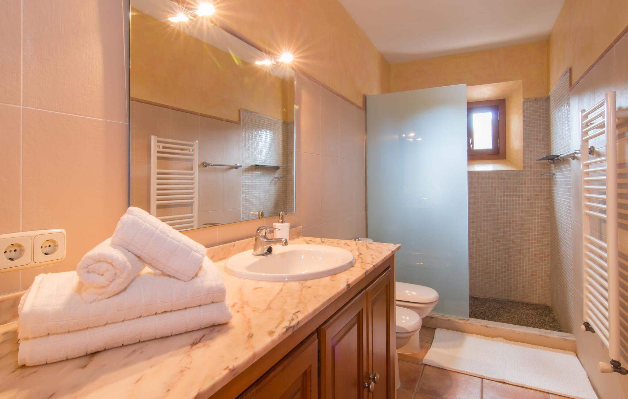 Si hei til Es Sebatlins, et herlig feriehus for hele familien. Med beliggenhet i et av Mallorcas vakreste områder kan du glemme hverdagen og slappe av midt i naturen. Den nybygde eiendommen har et typisk mallorcinsk utseende i naturlig steinbruddstein og imponerer ved første øyekast med sin sofistikerte arkitektur og vellykkede blanding av tradisjon og modernitet. Det velutstyrte uteområdet har en rekke høydepunkter som vil glede både store og små. Med et stort asurblått basseng med en herlig solterrasse og et koselig loungeområde for en forfriskende drink innimellom, en stor privat lekeplass slik at de små gjestene ikke kjeder seg, vil alle finne sitt favorittsted for å nyte ferien til det fulle. Litt nærmere huset ligger den romslige uteserveringen med spisebord og et velutstyrt utekjøkken, som er perfekt for å tilberede regionale delikatesser. Gjør en middag med venner eller familie til en festlig opplevelse! Og det er selvfølgelig mer; villaens smakfullt møblerte interiør imponerer med en like overbevisende blanding av moderne stil og middelhavsoriginalitet. Det elegante kjøkkenet med sine vakre hasselnøttbrune trefronter og skinnende granittbenkeplater ser flott ut og har alle fasiliteter som trengs for en ekte matlagingsopplevelse. Med direkte tilgang til spise- og oppholdsrommet kan kokken også nyte en hyggelig atmosfære. Og hvis du vil ta det rolig om kvelden, er det bare å slappe av i de herlig myke loungemøblene. Nå er det bare å bestemme seg for om man vil tenne opp i peisen og nyte en knitrende ild eller se en spennende film på flatskjerm-TV-en. Etter en herlig dag på øya, når øynene blir tunge, venter allerede tre vakre soverom på deg. Møblene og tekstilene er holdt i beroligende naturfarger, som i kombinasjon med de svært komfortable sengene sørger for en avslappende nattesøvn. Disse tre soverommene, som er sanne oaser av velvære, overgås bare av de to førsteklasses badene, som oppfyller selv de høyeste krav. Sist, men ikke minst, byr huset på en spesiell godbit: et fullt utstyrt treningsområde. Hvis du ikke vil gå glipp av litt sport på ferien, kan du svette så mye du vil her (eller bare nyte de mange mallorkinske delikatessene). Hvis du foretrekker naturen fremfor treningsstudioet, er området rundt villaen ideelt for lange spaserturer eller fotturer gjennom det fortryllende landskapet i den østlige delen av øya. Har du lyst på litt mallorkinsk kultur og byliv? En kjøretur til Sant Llorenç des Cardassar tar bare 1,8 km. Her venter alle slags små butikker, kafeer og restauranter på å bli oppdaget. Og hvis du foretrekker en mild havbris, er det bare å pakke strandbagene og dra til den vakre sandstranden Sa Coma, som ligger bare 20 minutter unna med bil. Den særdeles familievennlige Finca Es Sebatlins ligger i fortryllende omgivelser i den vakre østlige delen av øya. Eiendommen ligger midt i naturen, med fantastisk utsikt over det mallorkinske landskapet. I Sant Llorenc, bare 1,8 km unna, finner du alt du trenger for dine daglige behov, fra supermarked og bakerier til kafeer, banker og apotek. Og den nærmeste sandstranden, som Sa Coma, kan nås med bil på bare 20 minutter.