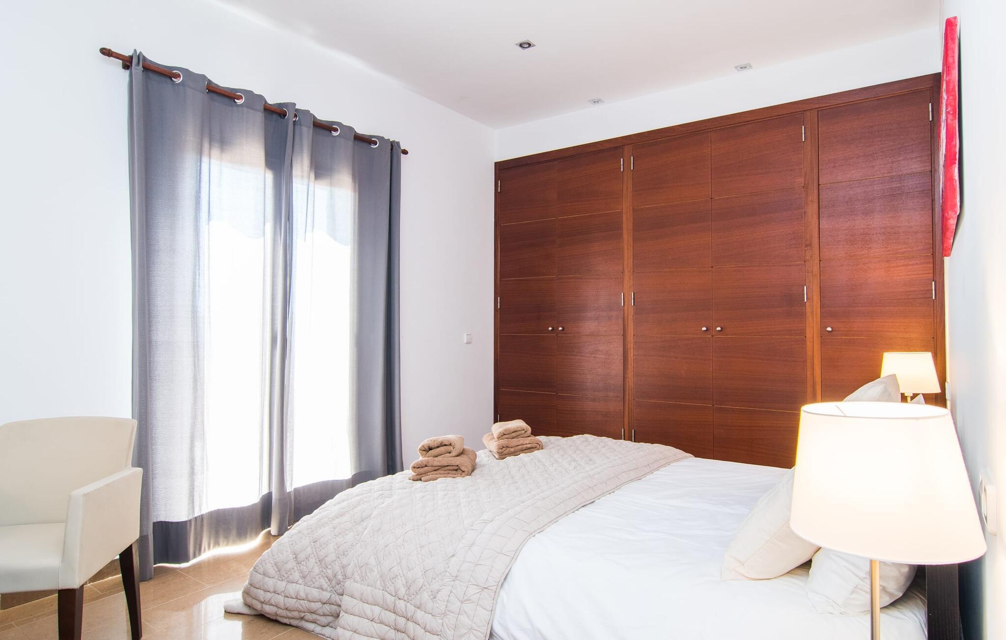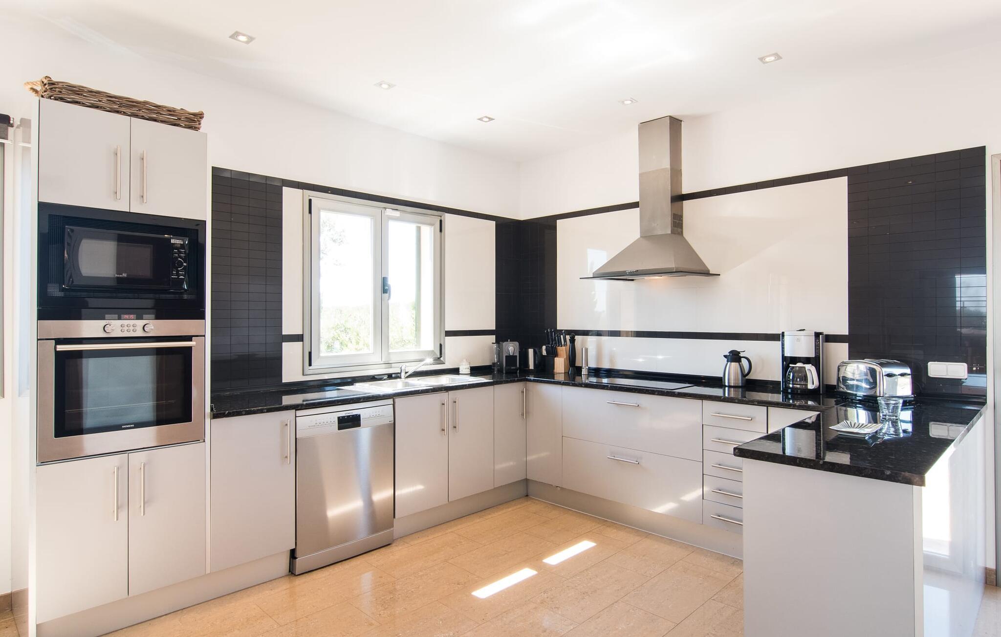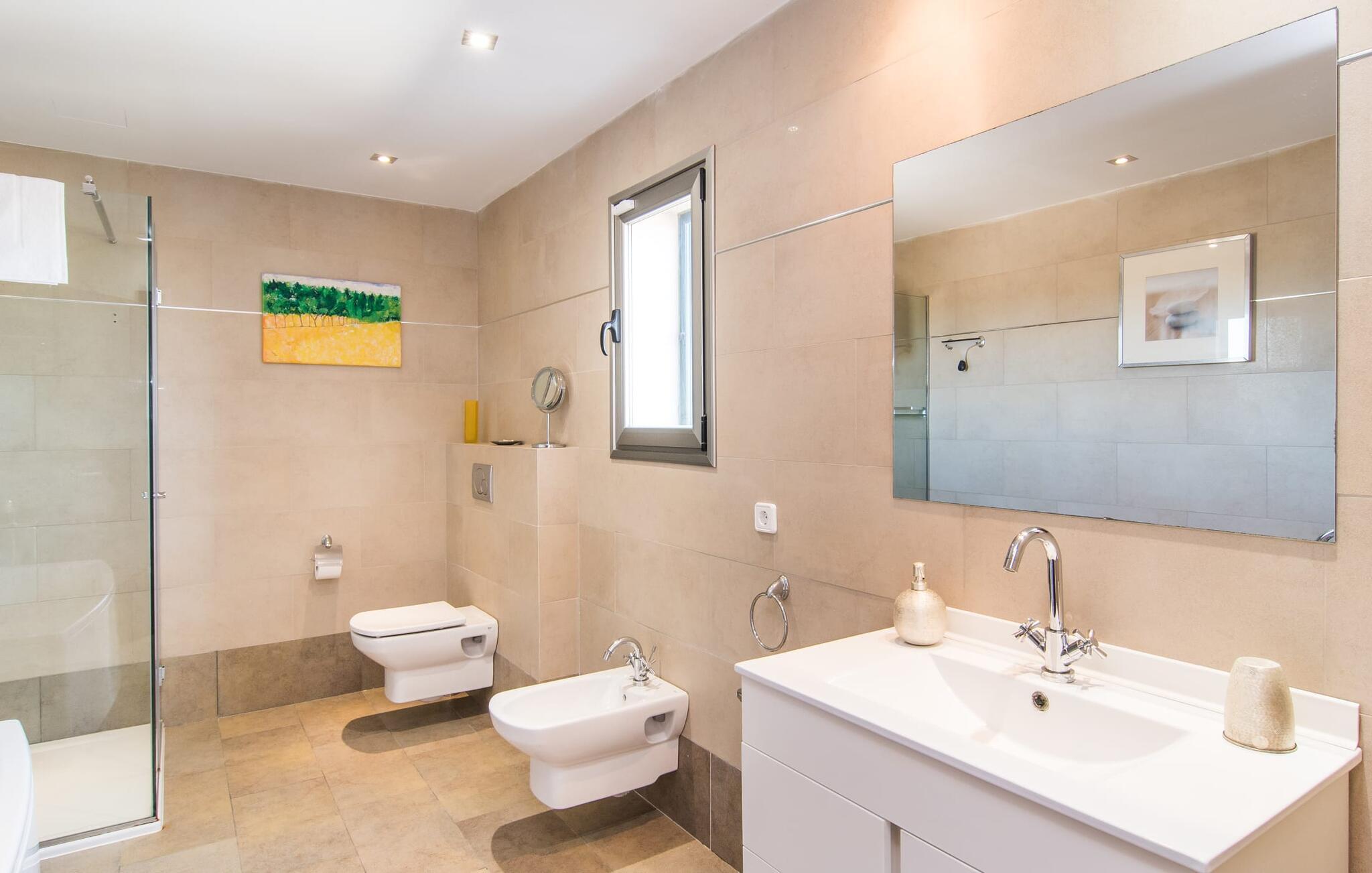 De nye eierne har pusset opp villaen innvendig og innredet den med eksepsjonell smak og komfort: Stilen er lys og minimalistisk, men med lyse fargeaksenter på veggene, møblene er elegante og komfortable, den store flatskjerm-TV-en er et skikkelig blikkfang, og kjøkkenet er et skinnende rike for kokker med side-by-side-kjøleskap og elektriske apparater av høy kvalitet. Taklamper sørger for at de vakre rommene er diskret opplyst overalt. Den øverste etasjen er forbeholdt feriedrømmene, og disse kan bare være rosa: Alle de fire dobbeltrommene (med senger på 1,80 eller 1,60 x 2 meter) har eget bad med dusjkabinett og direkte utgang til den solfylte balkongen. Gulvvarme og klimaanlegg sørger for en behagelig temperatur i rommet, noe som gjør villaen ideell for en time-out både sommer og vinter.