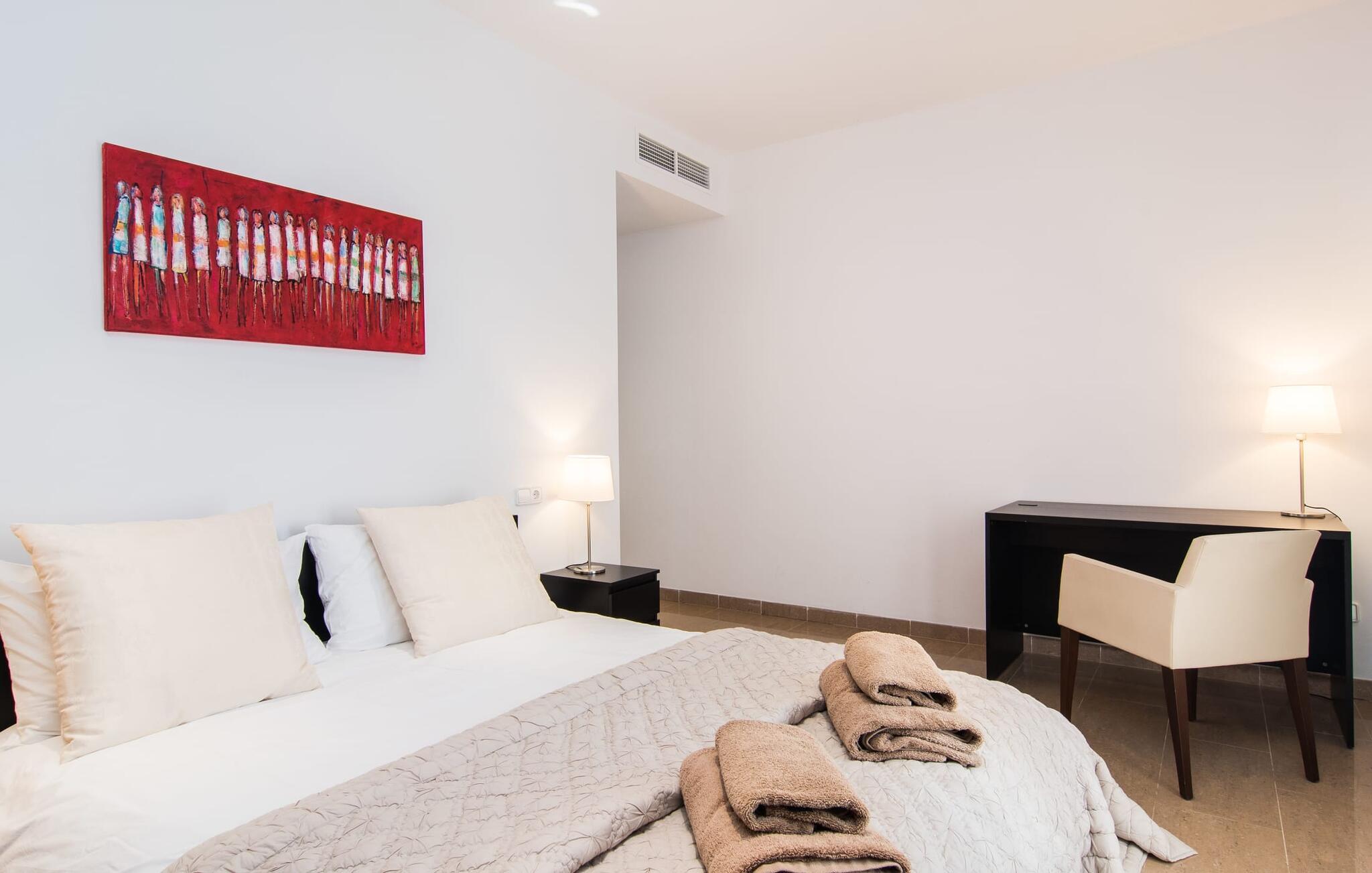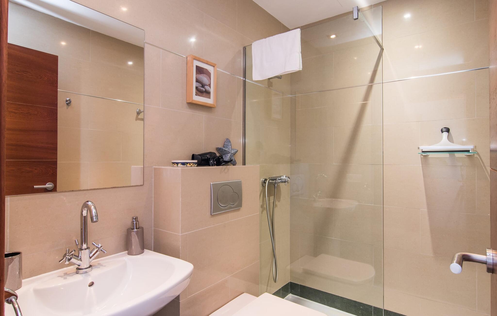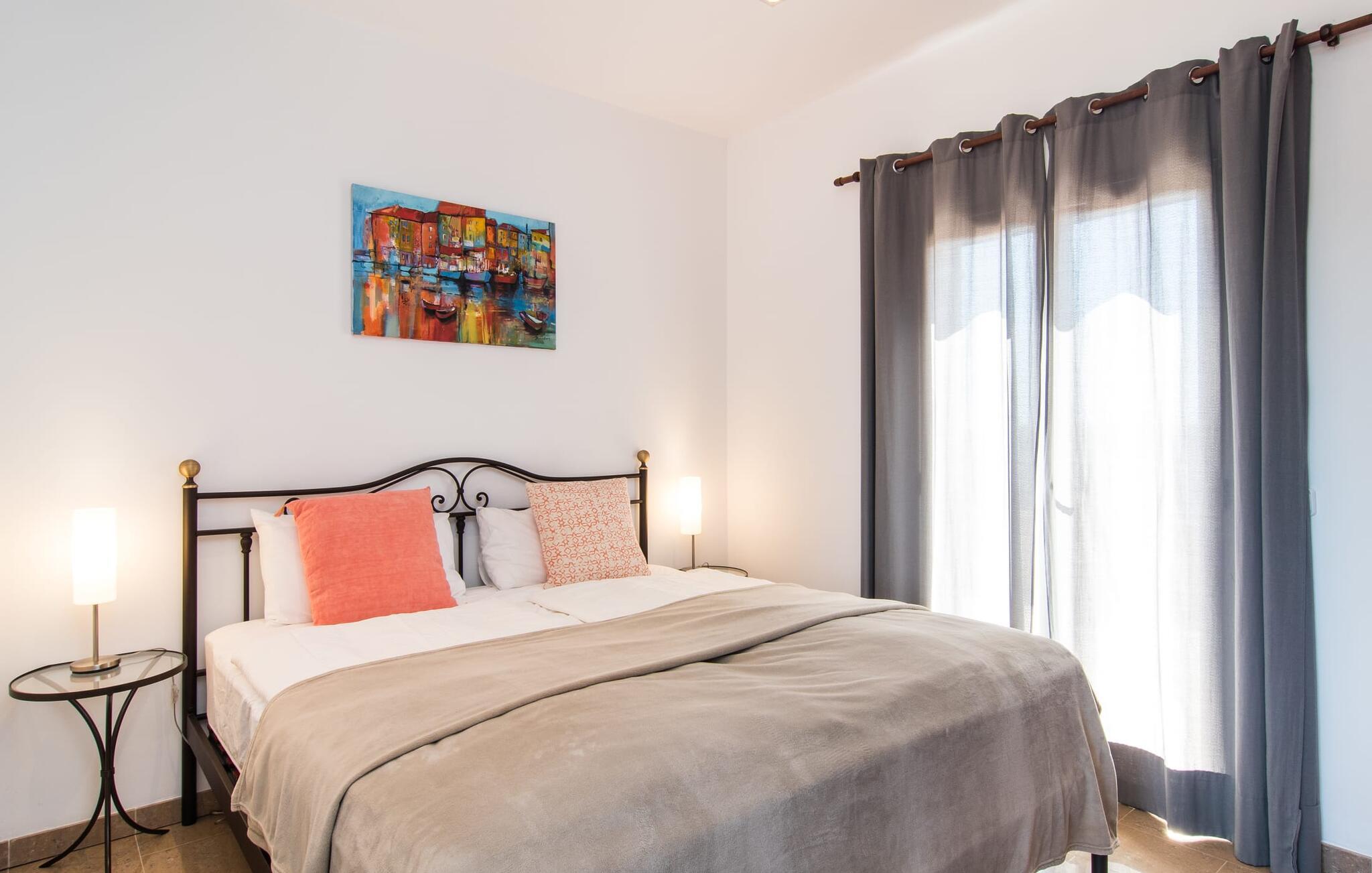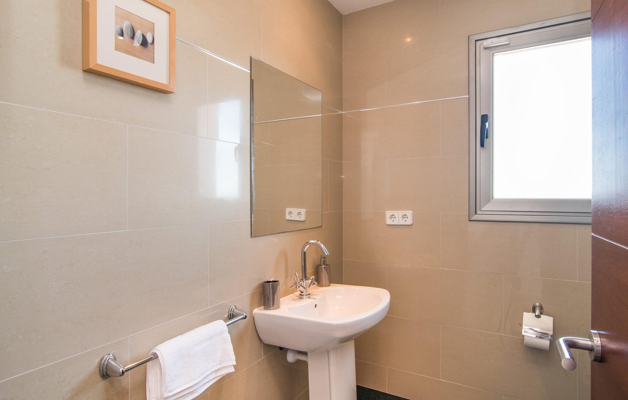 De nye eierne har pusset opp villaen innvendig og innredet den med eksepsjonell smak og komfort: Stilen er lys og minimalistisk, men med lyse fargeaksenter på veggene, møblene er elegante og komfortable, den store flatskjerm-TV-en er et skikkelig blikkfang, og kjøkkenet er et skinnende rike for kokker med side-by-side-kjøleskap og elektriske apparater av høy kvalitet. Taklamper sørger for at de vakre rommene er diskret opplyst overalt. Den øverste etasjen er forbeholdt feriedrømmene, og disse kan bare være rosa: Alle de fire dobbeltrommene (med senger på 1,80 eller 1,60 x 2 meter) har eget bad med dusjkabinett og direkte utgang til den solfylte balkongen. Gulvvarme og klimaanlegg sørger for en behagelig temperatur i rommet, noe som gjør villaen ideell for en time-out både sommer og vinter.