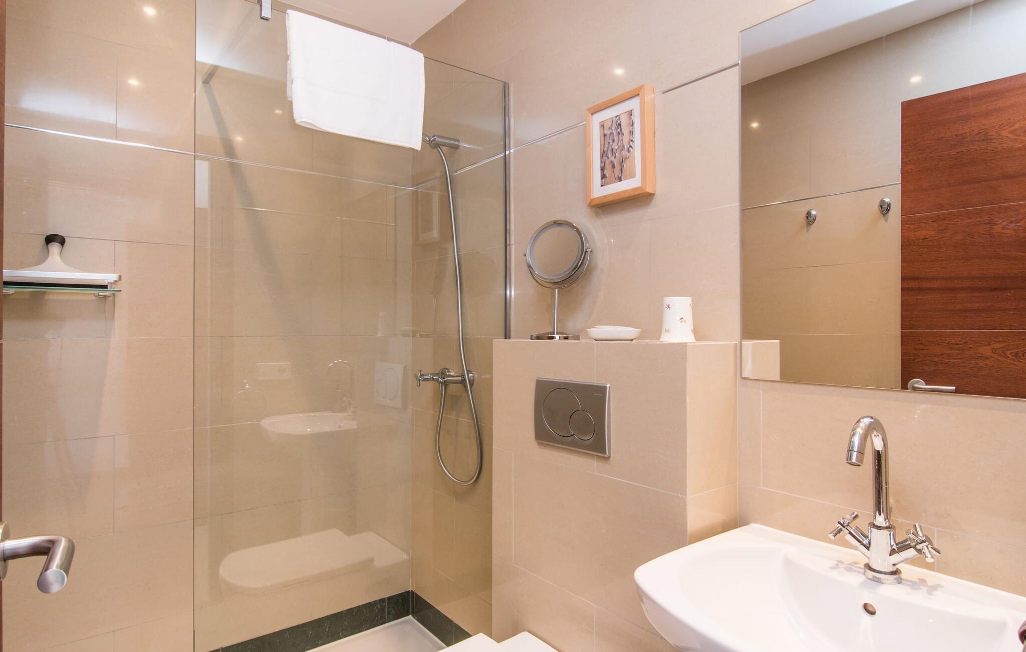 - WC med varmt og kaldt vann, Dusj