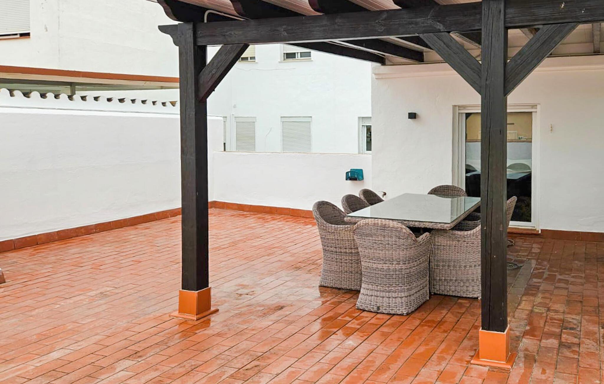 Denne innbydende og romslige ferieleiligheten i Estepona på Costa del Sol er den ideelle rammen for en herlig familieferie. Det fargerike interiøret kombinerer en koselig atmosfære med moderne komfort. Om morgenen kan dere samles på kjøkkenet og tilberede frokosten sammen, som dere deretter kan nyte i fred og ro på terrassen. Stuen har også et hyggelig spisebord og en komfortabel sofagruppe, perfekt for filmkvelder og sosialt samvær. Kanskje kan dere lage en rask matbit og deretter gå ut til bassenget. Her kan du plaske rundt med barna så mye du vil.