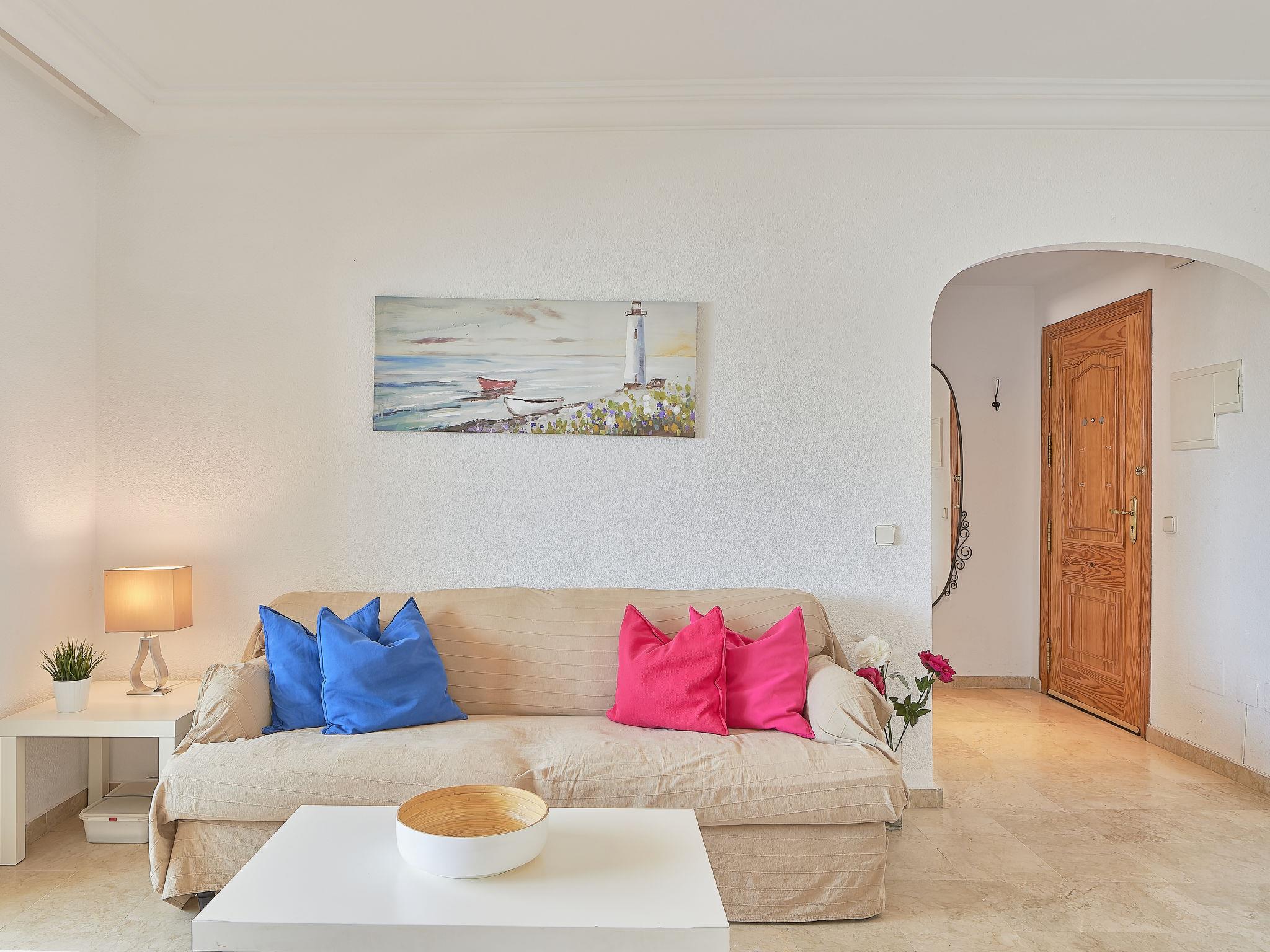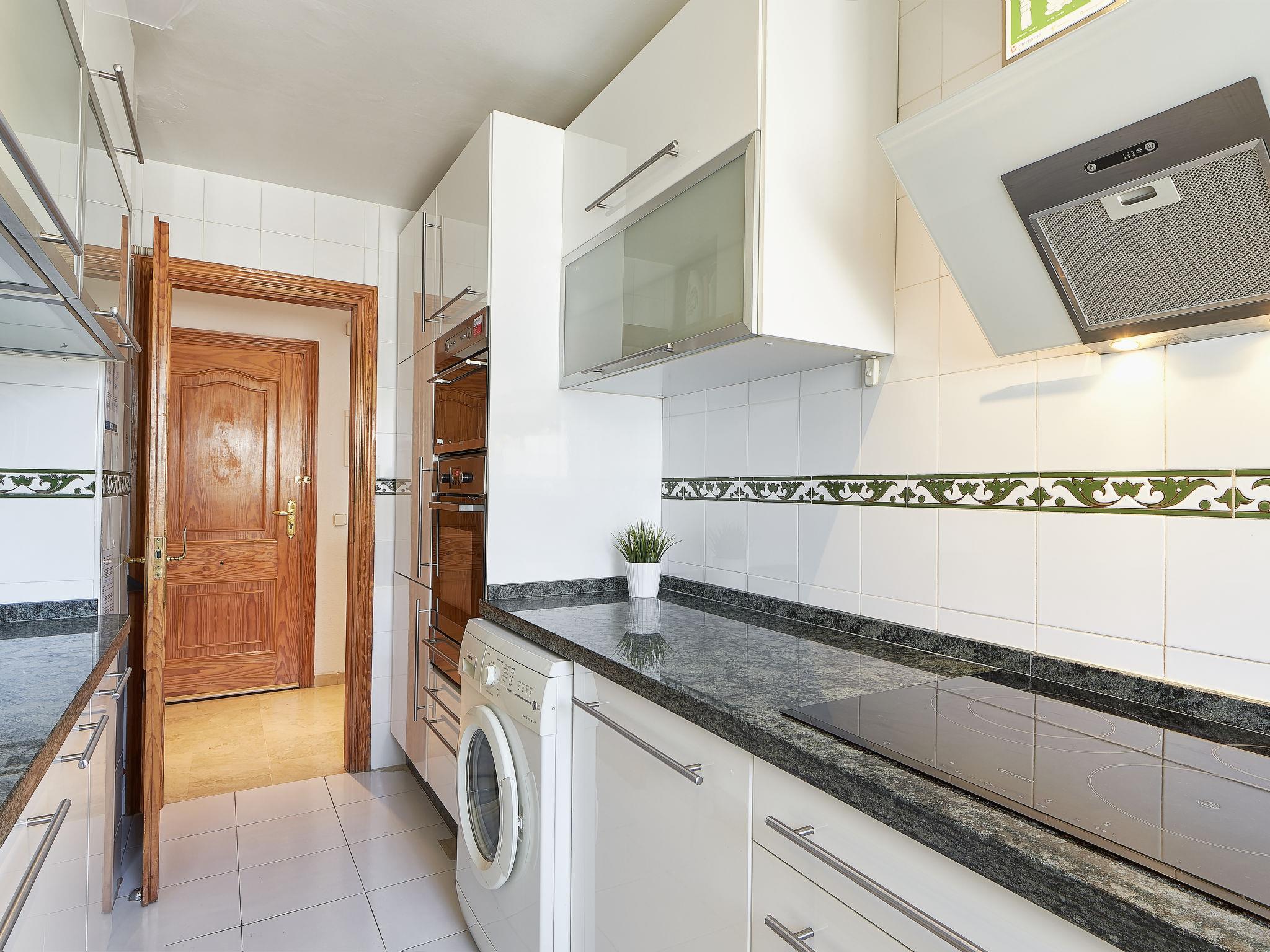 Apartment block "Marina Bay". In the resort, 1 km from the centre, 50 m from the sea, 80 m from the beach, south facing position. For shared use: swimming pool (10 x 20 m, depth 107 - 207 cm, seasonal availability: 01.Jul. - 15.Sep.). In the house: lift. Communal covered parking. Shop, grocery, restaurant 100 m, bus stop 150 m, sandy beach "Playa del Cristo" 50 m. Sports harbour 200 m, golf course (18 hole) 4 km, tennis 1 km, riding stable 2 km. Object suitable for 4 adults. The owner does not accept any groups. The owner does not accept any youth groups. Neighbourhood highly sensitive to noise. Quietness and good behaviour expected.