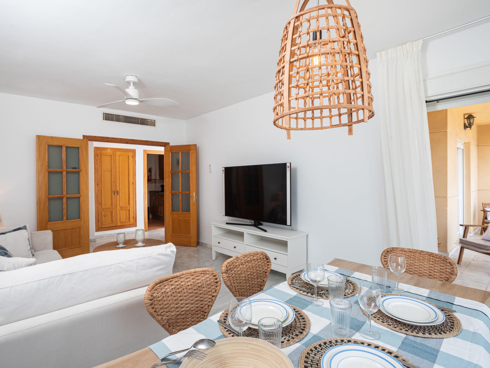 "Alborán", 4-room apartment 80 m2. Object suitable for 6 adults. Bright, partly renovated in 2023, very practical and beautiful furnishings: living/dining room with dining table, TV, international TV channels, flat screen, air conditioning and forced-air heating. Exit to the terrace. 1 room with 1 bed (150 cm, length 190 cm), shower/bidet/WC, air conditioning and forced-air heating. 1 room with 2 beds (90 cm, length 190 cm), air conditioning and forced-air heating. 1 room with 1 pull-out bed (2 pers. 2 x 80 cm, length 200 cm), air conditioning and forced-air heating. Exit to the terrace. Kitchen (oven, dishwasher, 4 ceramic glass hob hotplates, toaster, kettle, microwave, freezer, electric coffee machine, Capsules for coffee machine (Dolce Gusto) extra). Shower/bidet/WC. Terrace 10 m2. Terrace furniture. Marvellous view of the sea. Facilities: washing machine, iron, children's high chair, baby cot for up to 2 year olds, hair dryer. Garage space n 10 (1 car). Please note: suitable for families. Non-smokers only. Maximum 1 small pet/ dog allowed. Fire extinguisher. VUT/MA/67569 // Reg. Nr.: ESFCTU0000290360003147430000000000000000VUT/MA/675690