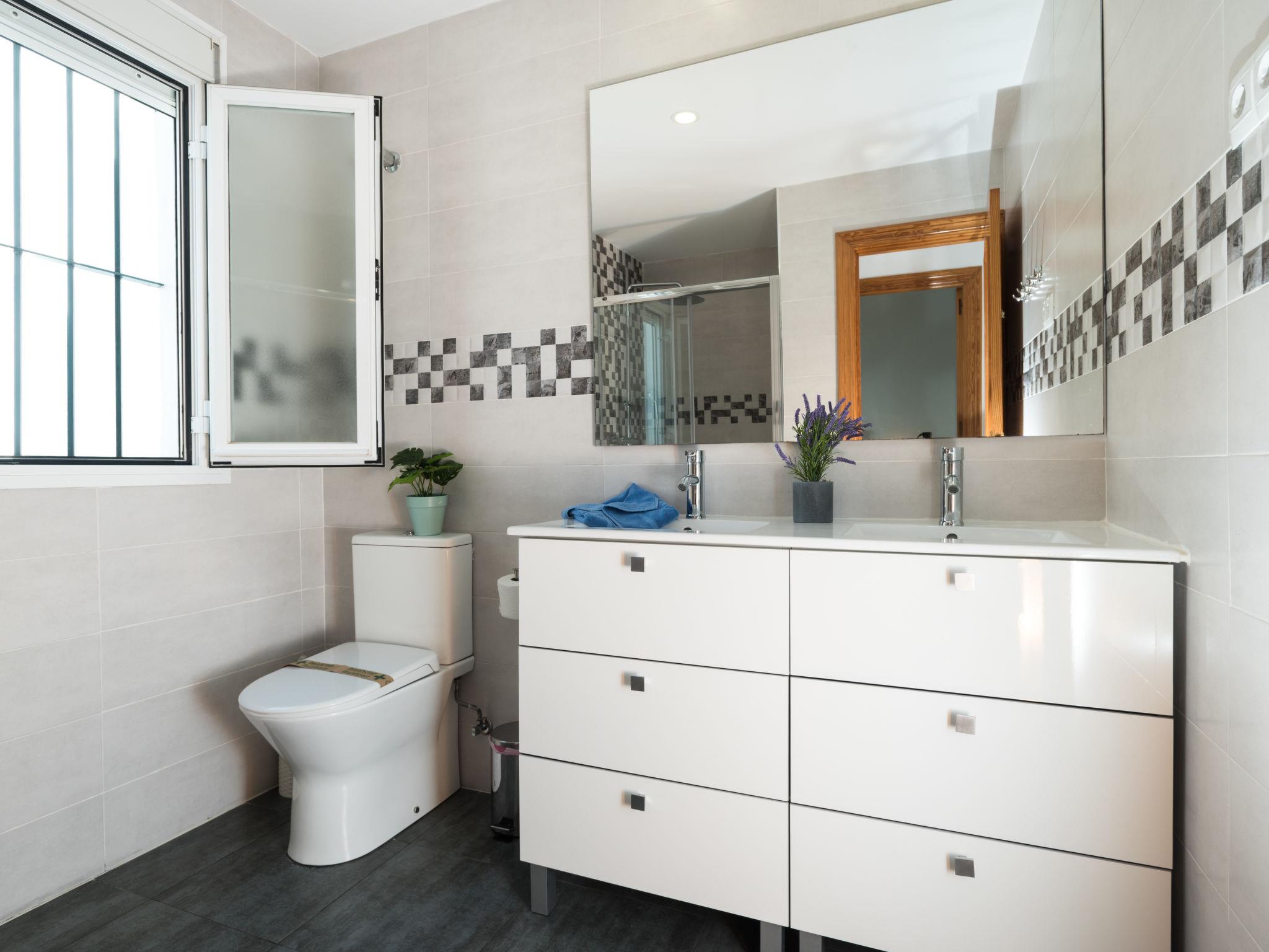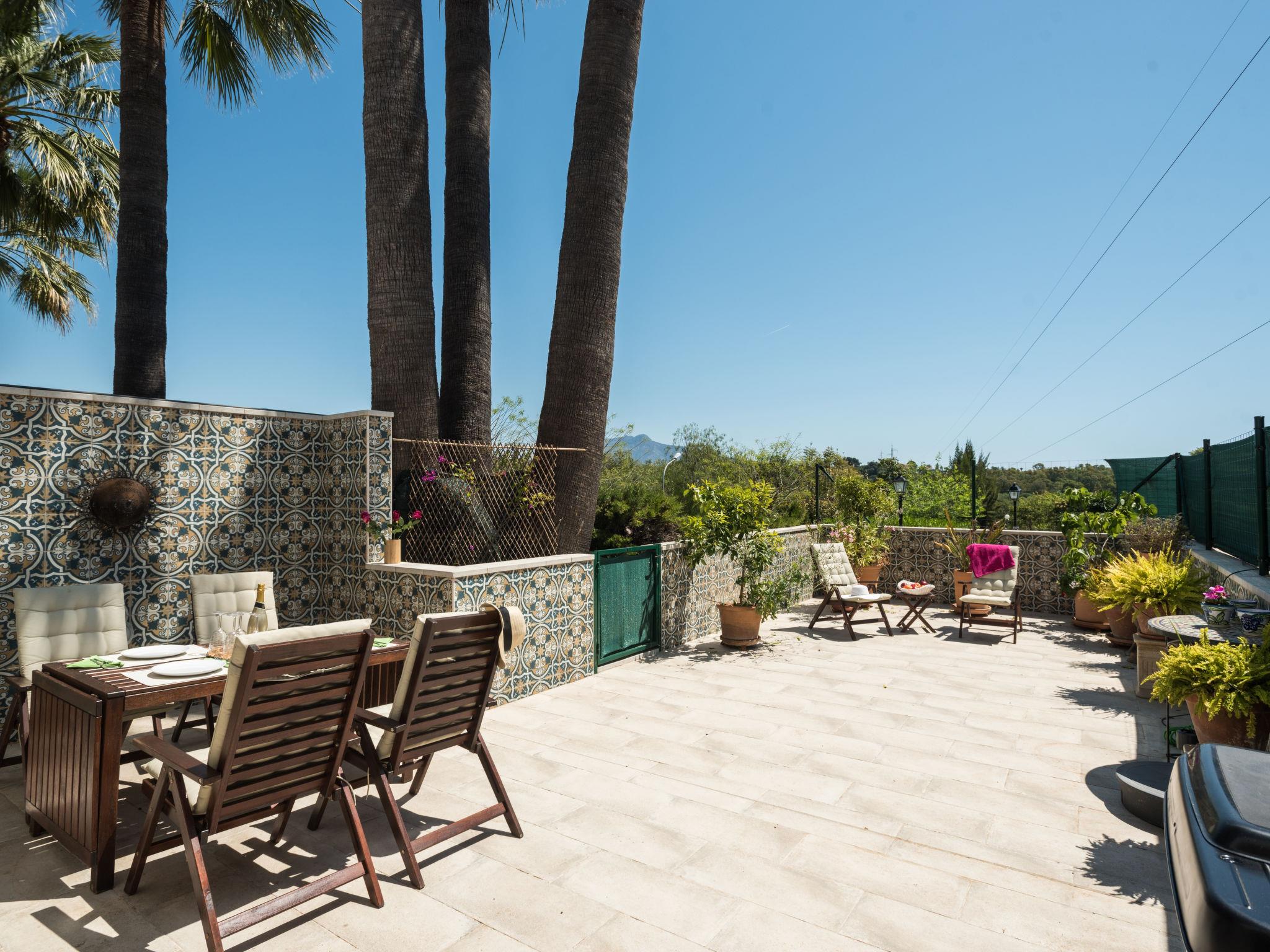 Beautiful, cosy terraced house "Villas de Madrid", 2 storeys. In the district of Bel Air 16 km from the centre of Marbella, 9 km from the centre of Puerto Banús, 10 km from the centre of Estepona, in a quiet, sunny position, 1.7 km from the sea, 1.7 km from the beach. For shared use: garden with lawn and flowers, swimming pool (seasonal availability: 01.Jun. - 15.Sep. pool opening hours: 11:00-21:00). Outdoor shower, public parking on the road. Supermarket, restaurant 650 m, bus stop "Flamingos Golf" 650 m, pebble beach 1.7 km. Golf course (18 hole) 500 m. Object suitable for 6 adults. The owner does not accept any groups. The owner does not accept any youth groups.