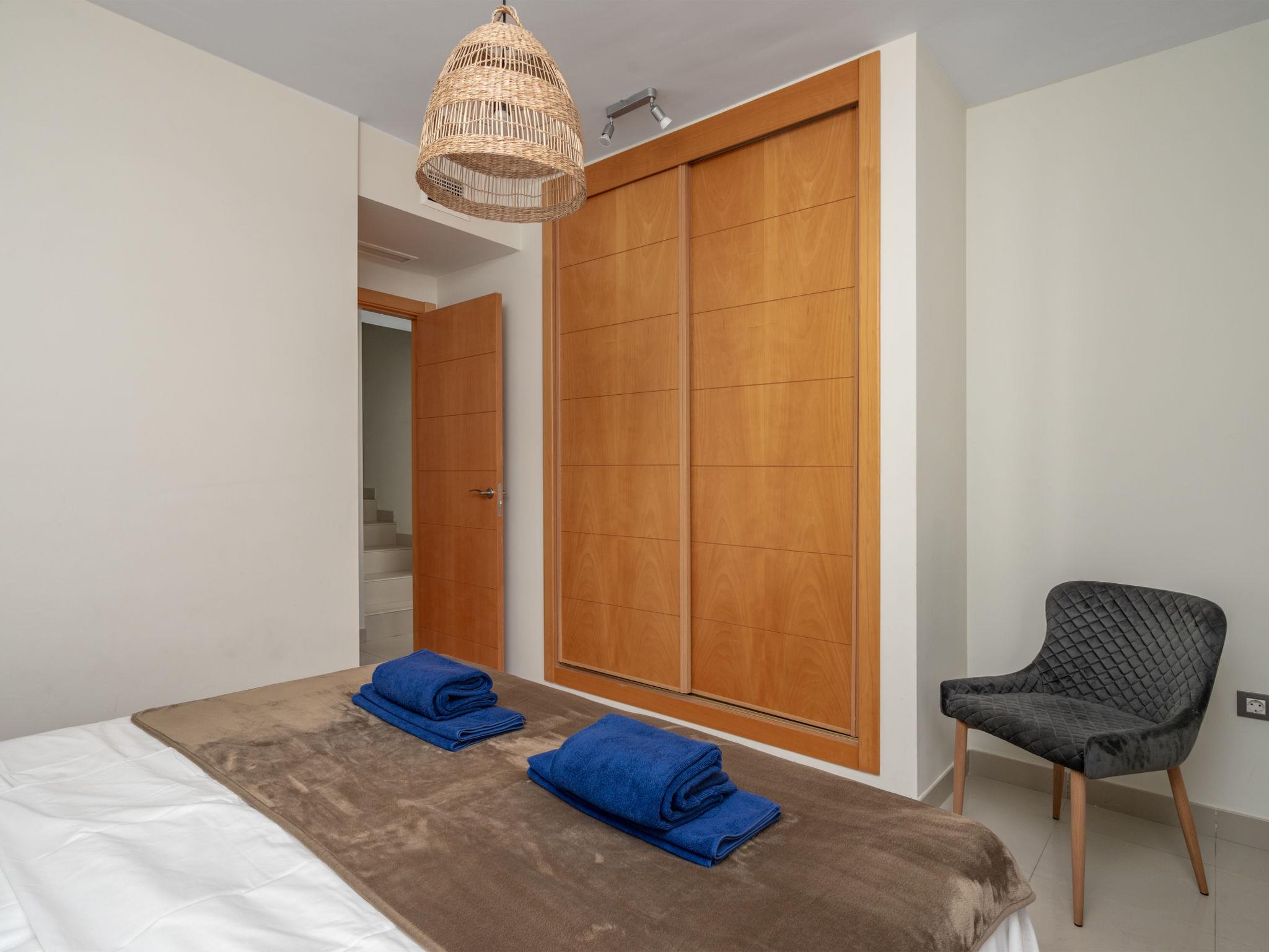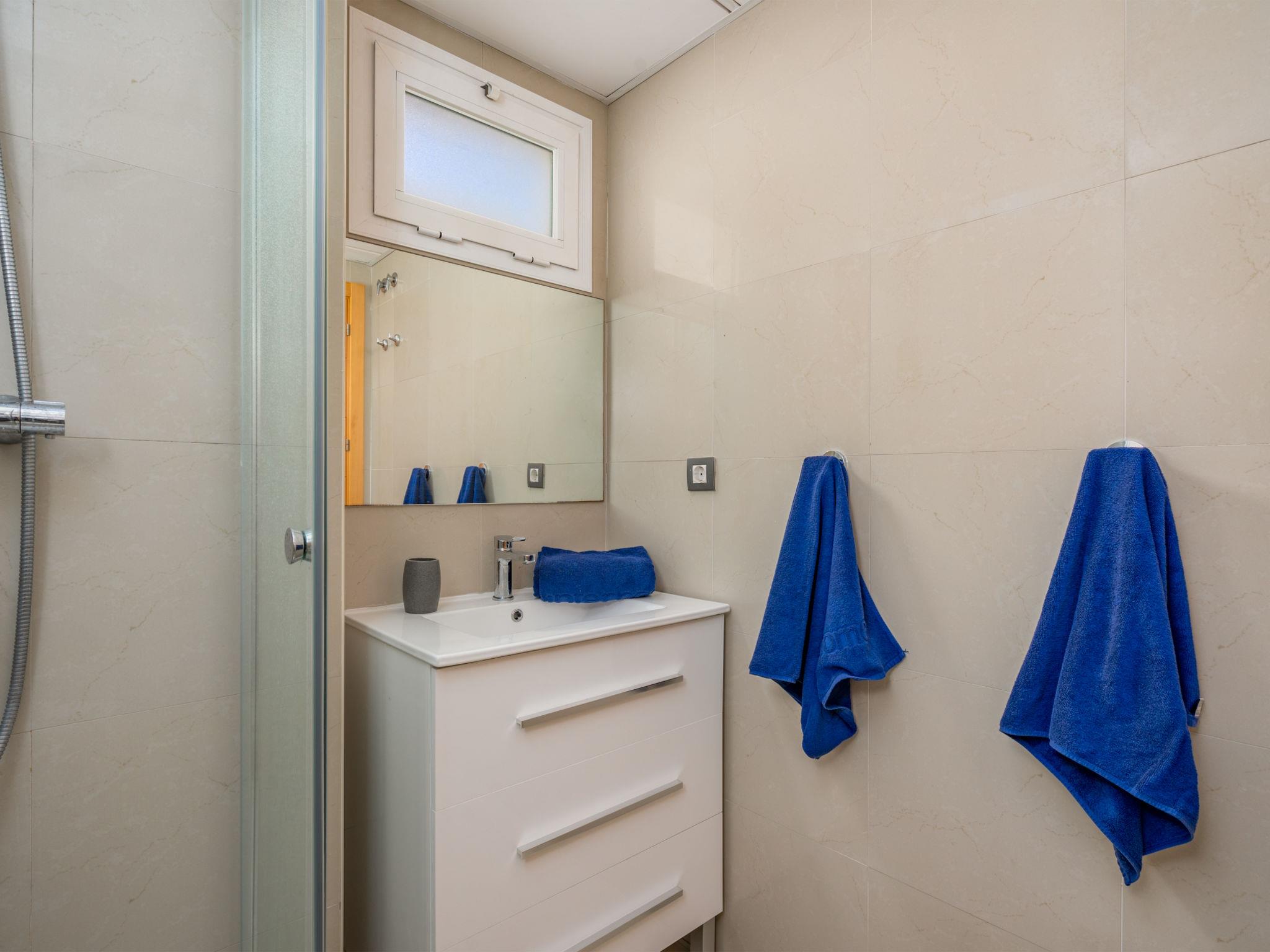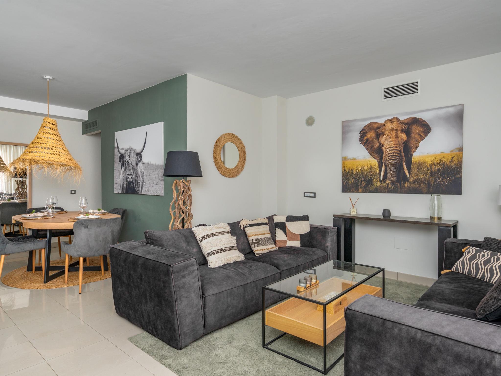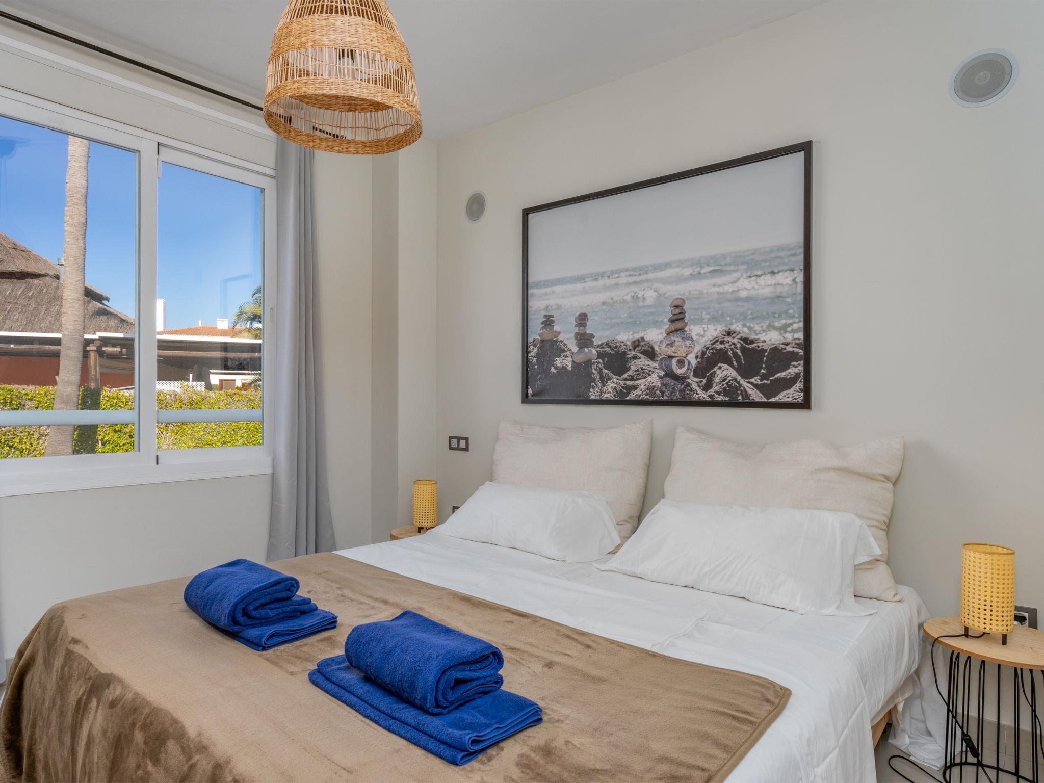 "Cortijo del Mar - Marisma", 4-room apartment 130 m2 on 2 levels, on the top floor. Object suitable for 4 adults + 2 children. Spacious and bright, comfortable and beautiful furnishings: living/dining room with digital TV, air conditioning and forced-air heating. Exit to the terrace. 1 room with 2 beds (80 cm, length 205 cm), air conditioning and forced-air heating. 1 room with 1 sofabed (140 cm, length 200 cm), air conditioning and forced-air heating. Kitchen (oven, dishwasher, 4 ceramic glass hob hotplates, toaster, kettle, microwave, freezer, electric coffee machine, Capsules for coffee machine (Nespresso) extra). 2 baths/WC. Upper floor: 1 room with 1 french bed (180 cm, length 200 cm), bath/WC (private) air conditioning and forced-air heating. Exit to the terrace. 2 terraces. Terrace furniture. Side view of the sea and the swimming pool. Facilities: washing machine, iron, children's high chair, baby cot, hair dryer. Internet (WiFi, free). Parking space n 157. Please note: suitable for families. Non-smokers only. VUT/MA/92926 // Reg. Nr.: ESFCTU0000290370004876590000000000000000VUT/MA/929265
