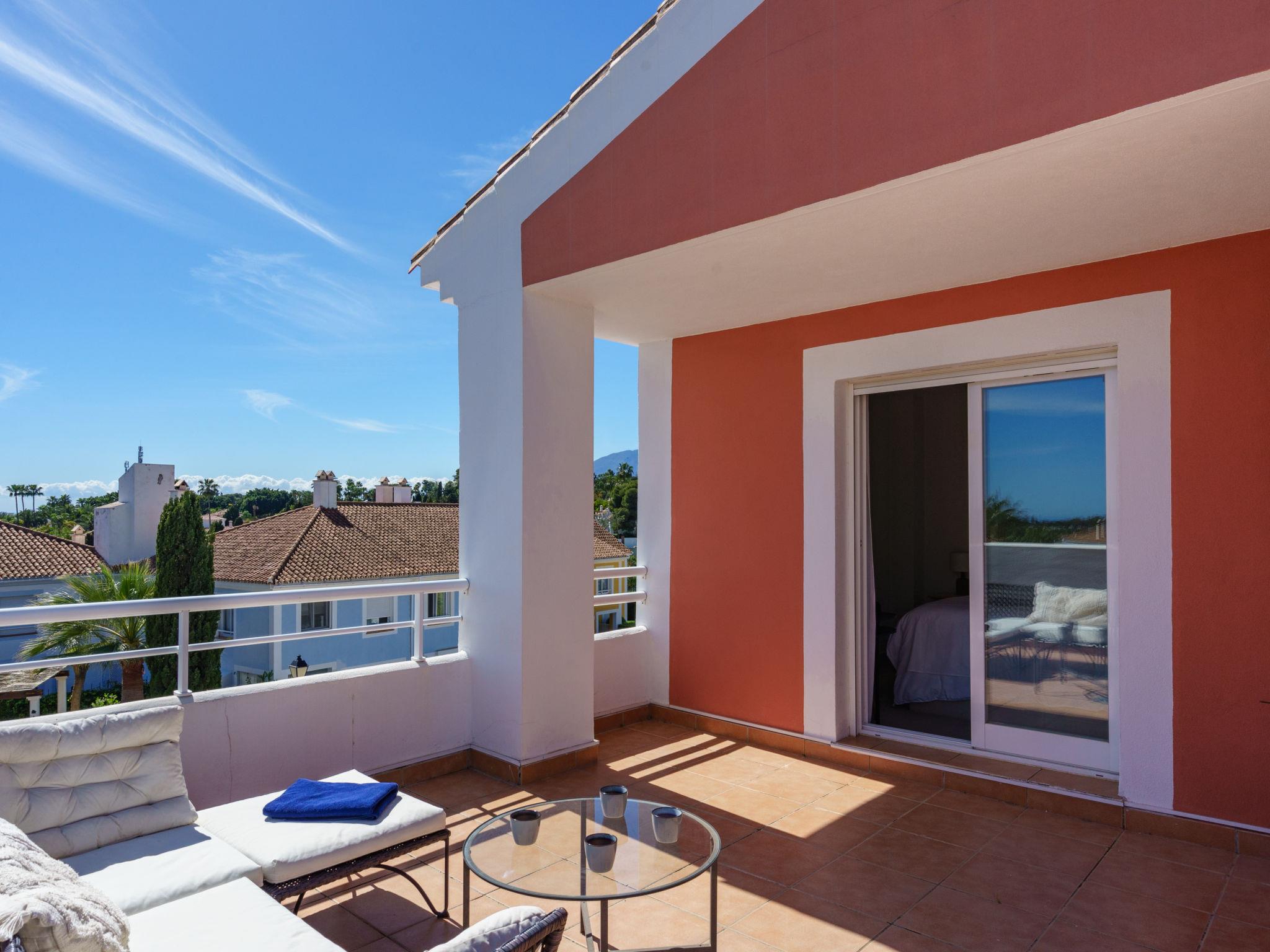 Very beautiful, cosy, very comfortable resort "Cortijo del Mar", built in 2011, surrounded by trees. 5 km from the centre of San Pedro de Alcantara, 14 km from the centre of Estepona, outside the resort, 16 km from the centre of Marbella, in the district El Paraiso, in a quiet, sunny position, traffic calmed area, 1.6 km from the sea, 2.6 km from the beach. For shared use: garden with lawn, natural garden, lawn for sunbathing, swimming pool kidney-shaped (43 x 23 m, depth 100 - 210 cm, seasonal availability: 01.Apr. - 15.Oct. pool opening hours: 11:00-18:00 and 11:00-20:00). Shower/WC in the pool area, children's pool, outdoor shower. Shop, supermarket, restaurant 500 m, bus stop "El Pilar" 800 m, sandy beach "Playa Salduna" 2.6 km. Sports harbour 9 km, marina 9 km, golf course (18 hole) 2.4 km. The owner does not accept any youth groups. Please note: guarded residence. Additional accommodations can be booked.