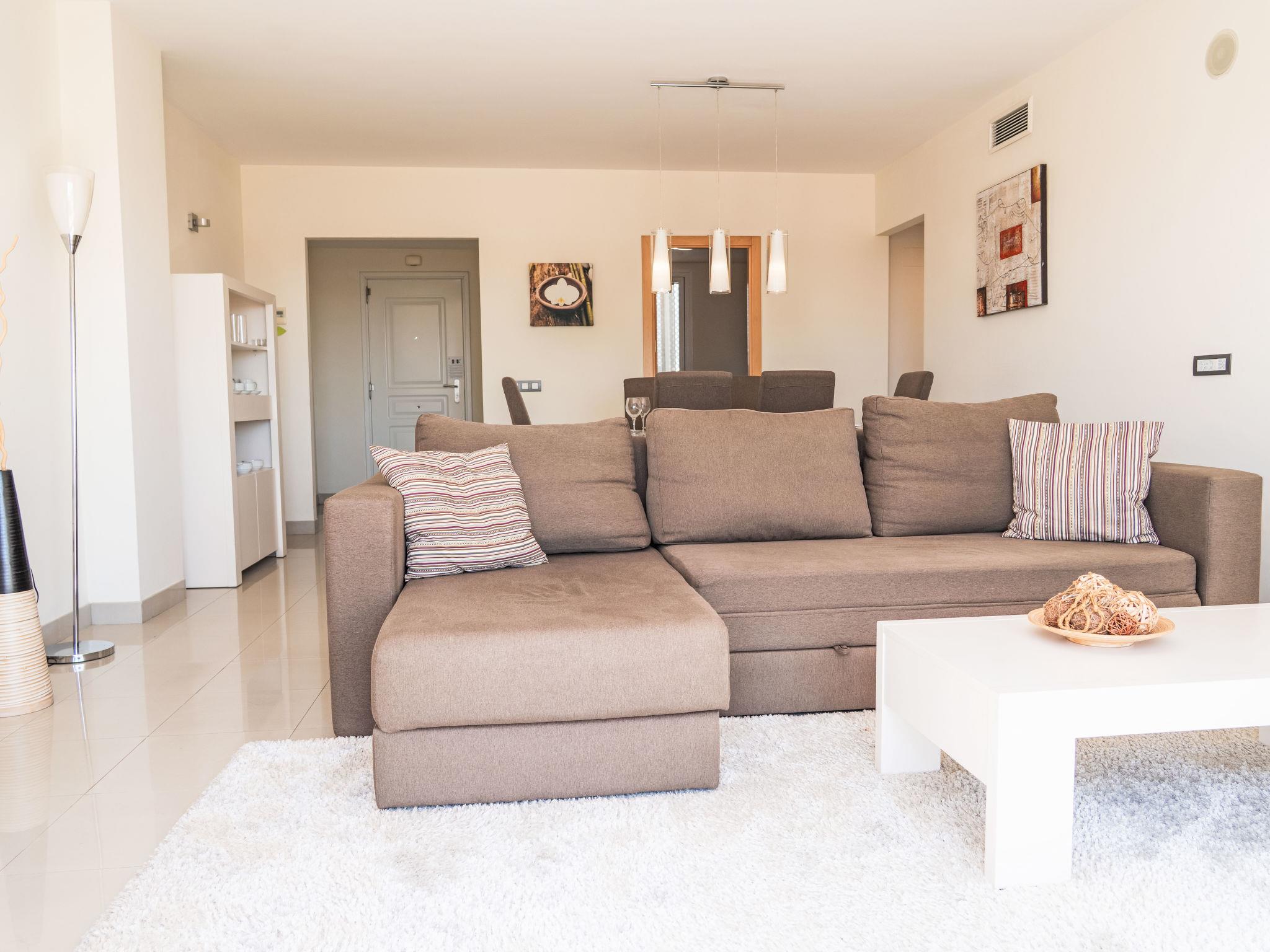 "Cortijo sunset", 3-room apartment 106 m2, south facing position. Bright, very comfortable and beautiful furnishings: living/dining room with digital TV, air conditioning and forced-air heating. Exit to the terrace. 1 room with 1 french bed (180 cm, length 200 cm), bath/WC and double hand-basin (private) air conditioning and electric shutters. Exit to the terrace. 1 room with 2 beds (105 cm, length 200 cm), air conditioning and forced-air heating. Kitchen (oven, dishwasher, 4 ceramic glass hob hotplates, toaster, kettle, microwave, freezer, electric coffee machine). Shower/WC. Terrace. Terrace furniture. View of the sea, the swimming pool and the garden. Facilities: washing machine, iron, children's high chair, baby cot, hair dryer. Internet (WiFi, free). Garage. VUT/MA/90593 // Reg. Nr.: ESFCTU0000290370004869420000000000000000VUT/MA/905935
