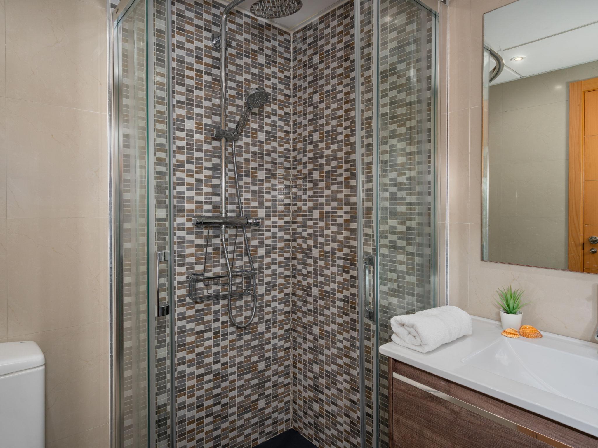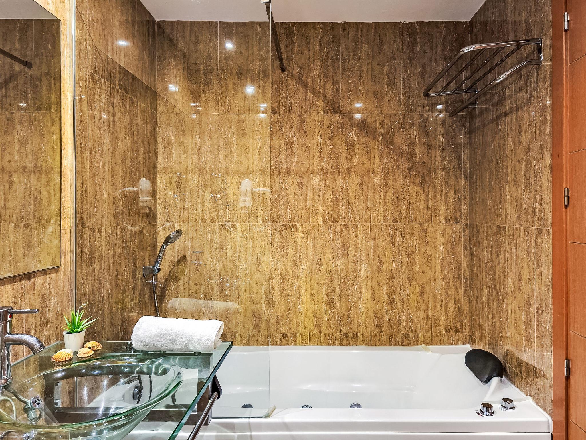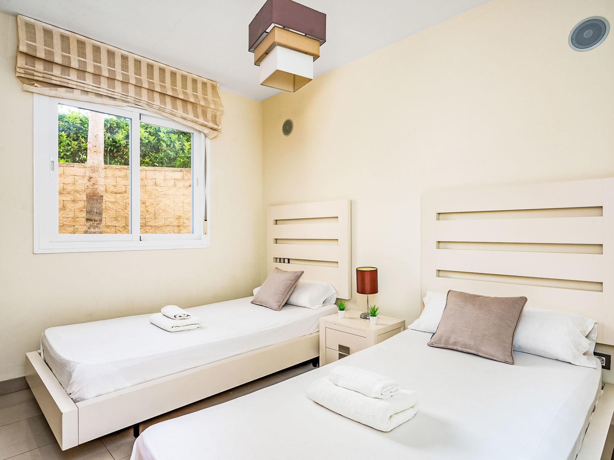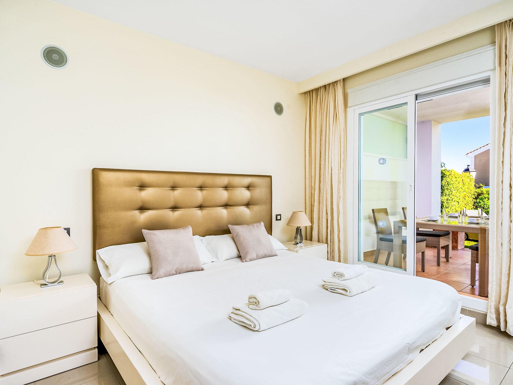 "Cortijo del Mar Sunshine", 3-room apartment 90 m2, lower ground floor. Object suitable for 4 adults. Spacious and bright, comfortable and modern furnishings: living/dining room with digital TV. Exit to the terrace. 1 room with 1 french bed (180 cm, length 200 cm), bath/WC, double hand-basin and hydro massage bath (private). Exit to the terrace. 1 room with 2 beds (90 cm, length 200 cm). Kitchen (oven, dishwasher, 4 ceramic glass hob hotplates, toaster, kettle, microwave, freezer, electric coffee machine, Capsules for coffee machine (Dulce gusto) extra). Shower/WC. Air-conditioning, forced-air heating. Patio 33 m2, garden 29 m2. Terrace furniture, deck chairs (2). Facilities: washing machine, iron, children's high chair, baby cot, hair dryer. Internet (WiFi, free). Parking space n 187. Please note: non-smokers only. VUT/MA/92314 // Reg. Nr.: ESFCTU0000290370004873140000000000000000VUT/MA/923148