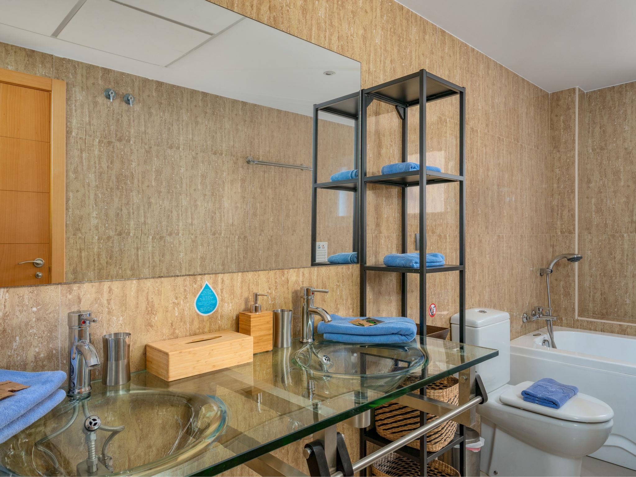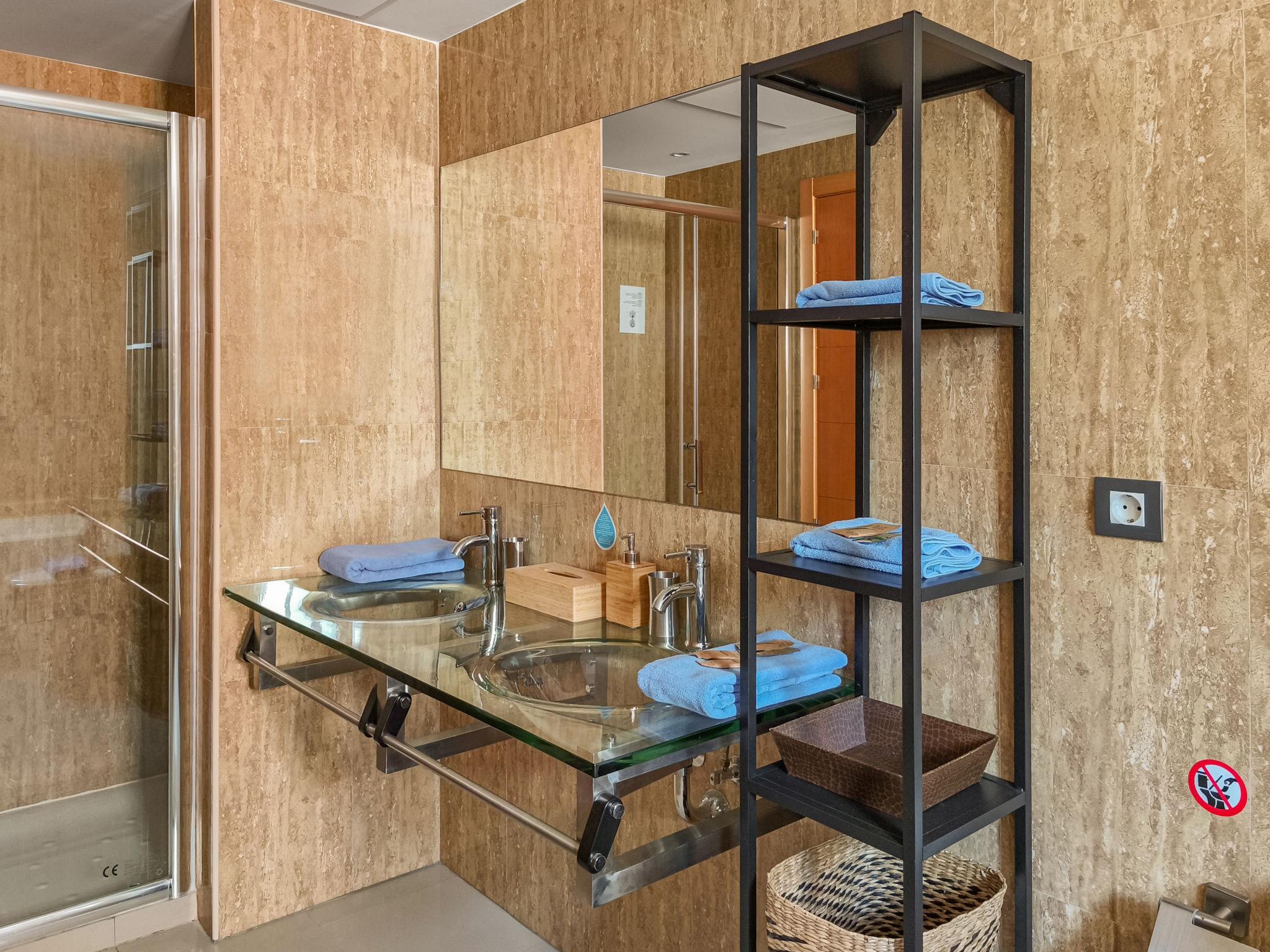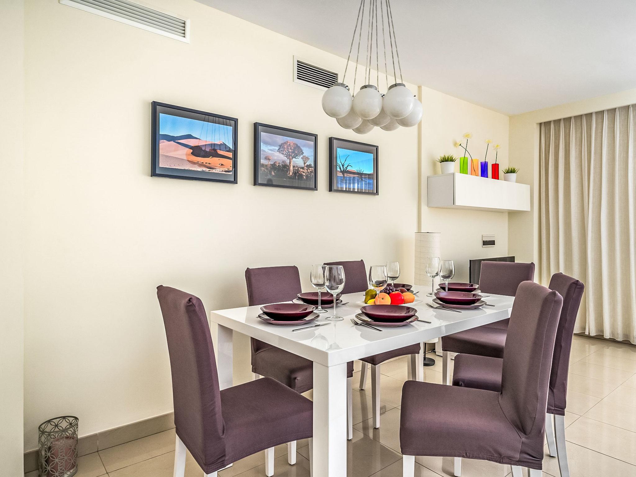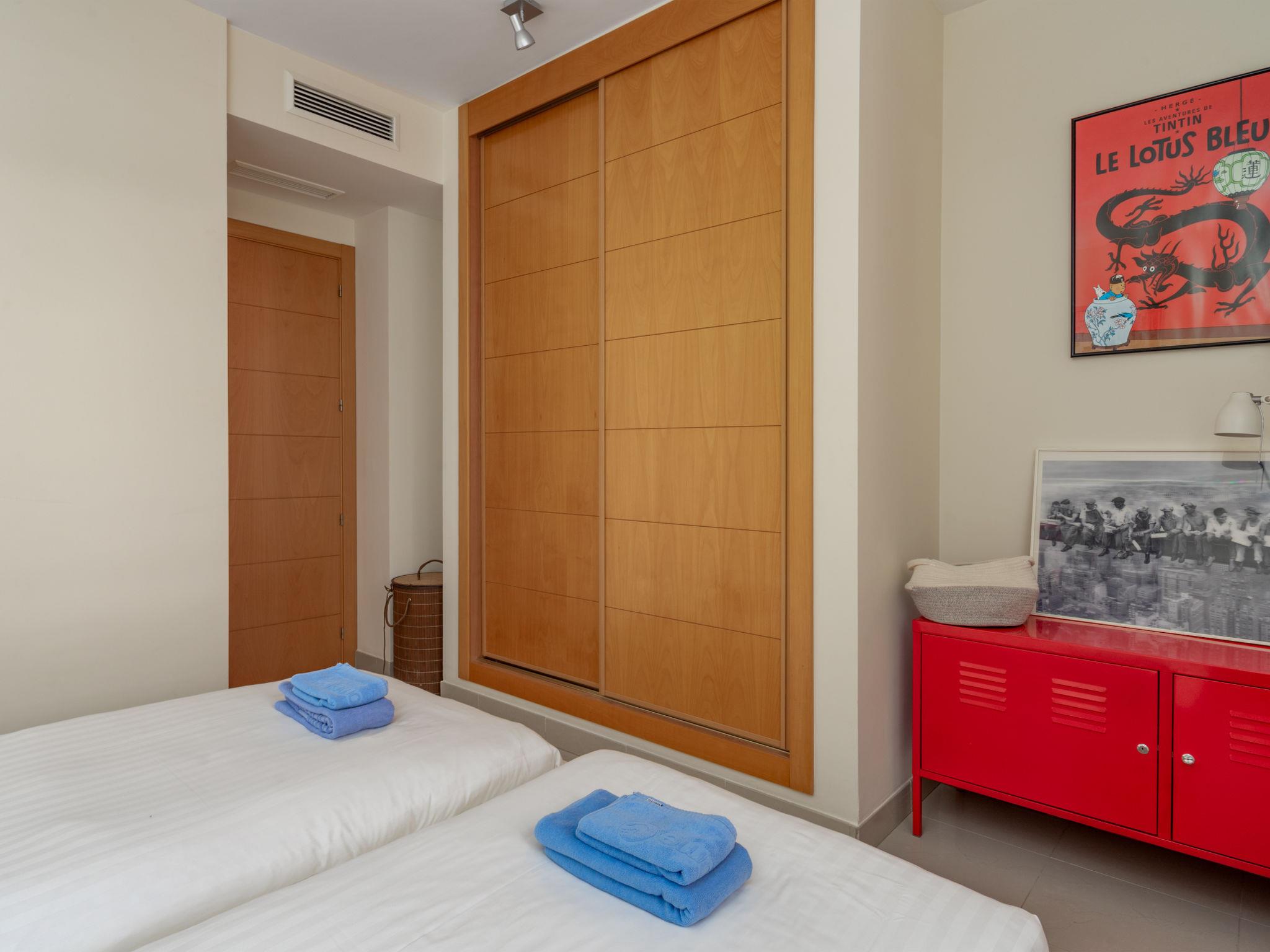 "Cortijo del Mar - Coral Nest", 4-room apartment 129 m2 on 2 levels, on the top floor. Spacious and bright, comfortable and beautiful furnishings: living/dining room with digital TV. Exit to the terrace. 1 room with 2 beds (90 cm, length 200 cm). 1 room with 1 french bed (180 cm, length 200 cm). Kitchen (oven, dishwasher, 4 ceramic glass hob hotplates, toaster, kettle, microwave, freezer, electric coffee machine). 2 baths/WC. Upper floor: 1 room with 1 french bed (180 cm, length 200 cm), bath/WC (private). Exit to the terrace. Terrace. Terrace furniture. Side view of the sea and the swimming pool. Facilities: washing machine, iron, children's high chair, baby cot, hair dryer. Internet (WiFi, free). Parking space n 68. Please note: non-smokers only. VUT/MA/91645 // Reg. Nr.: ESFCTU0000290370004883280000000000000000VUT/MA/916450