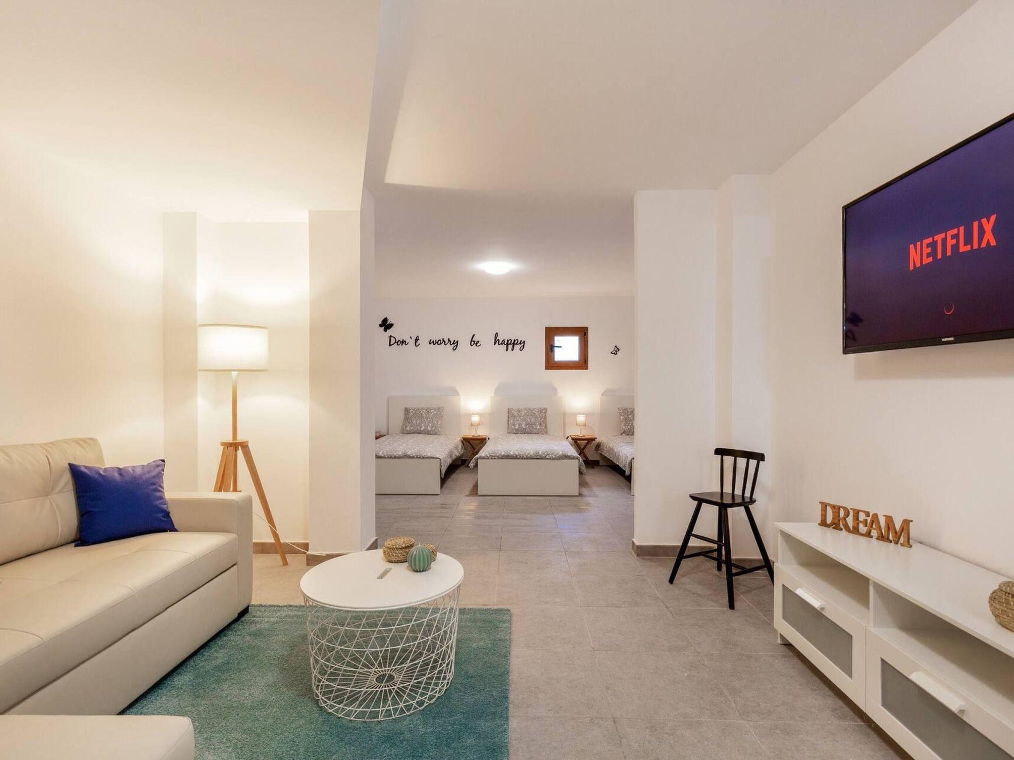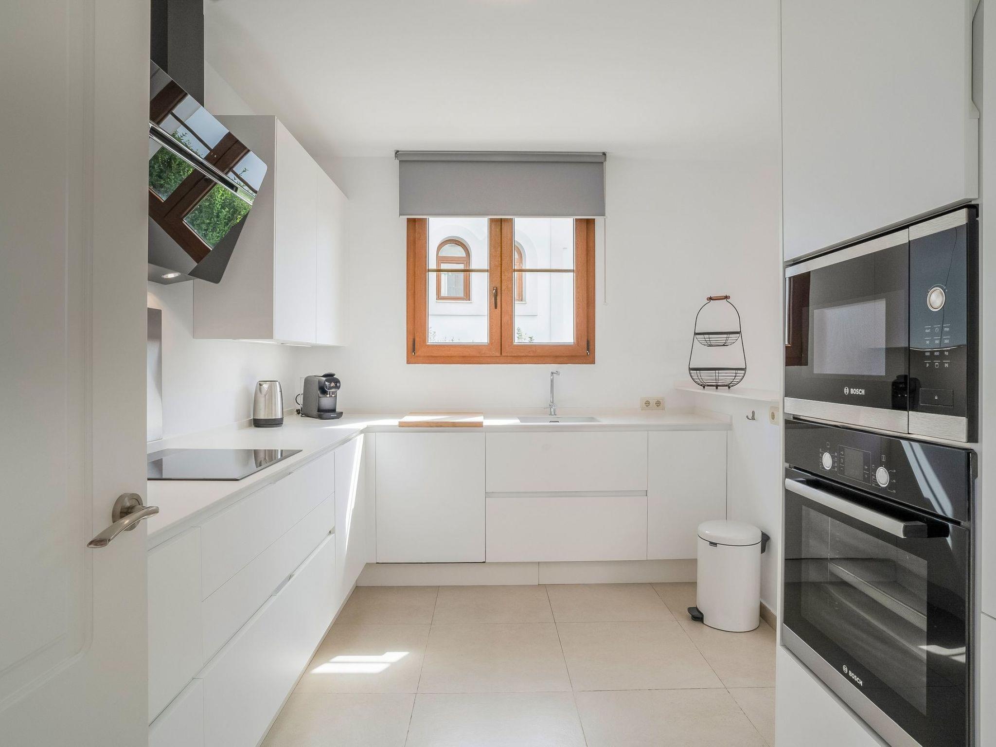 The interior of this luxurious villa leaves nothing to be desired. Designed to comfortably accommodate up to 14 people, it features a fully equipped kitchen, a spacious living room with a 50-inch TV and Stereo Bosé sound system, as well as high-speed fibre optic connection and Smart TVs in every room with access to Netflix. All the necessary amenities to ensure unparalleled comfort are at your disposal, including hot/cold air conditioning throughout the house, comfortable new beds and bath and pool towels for all guests.