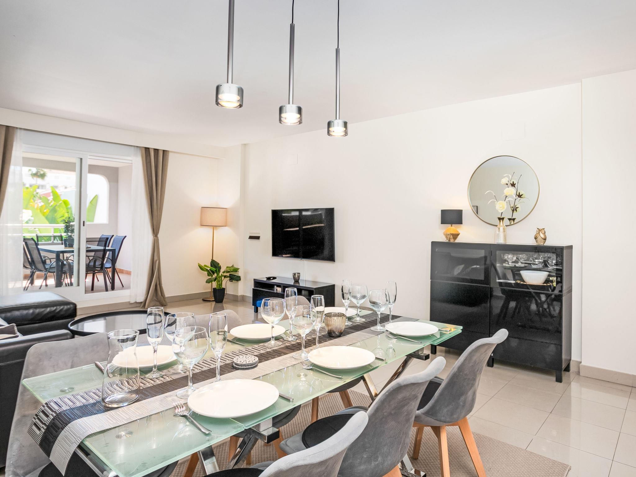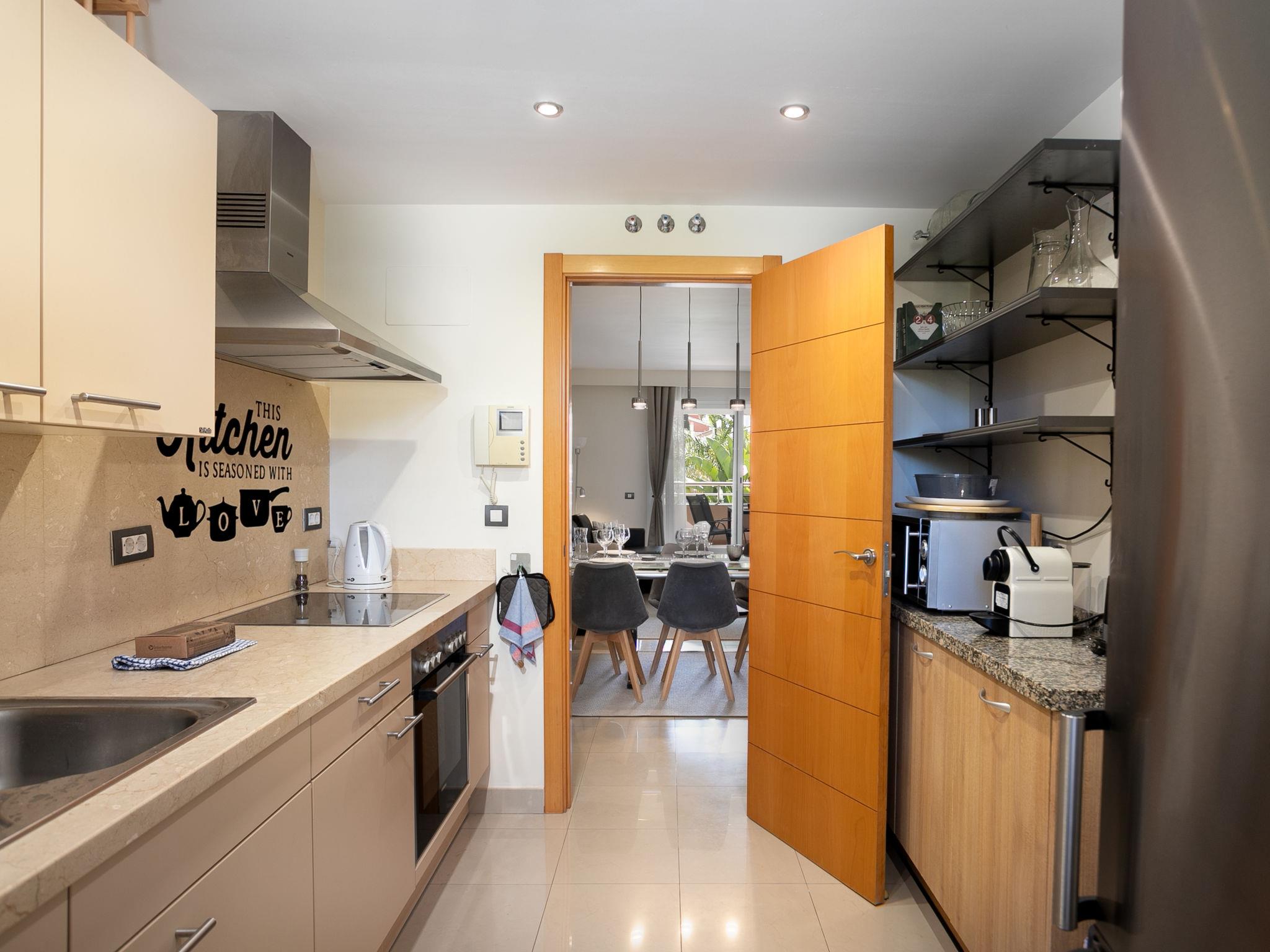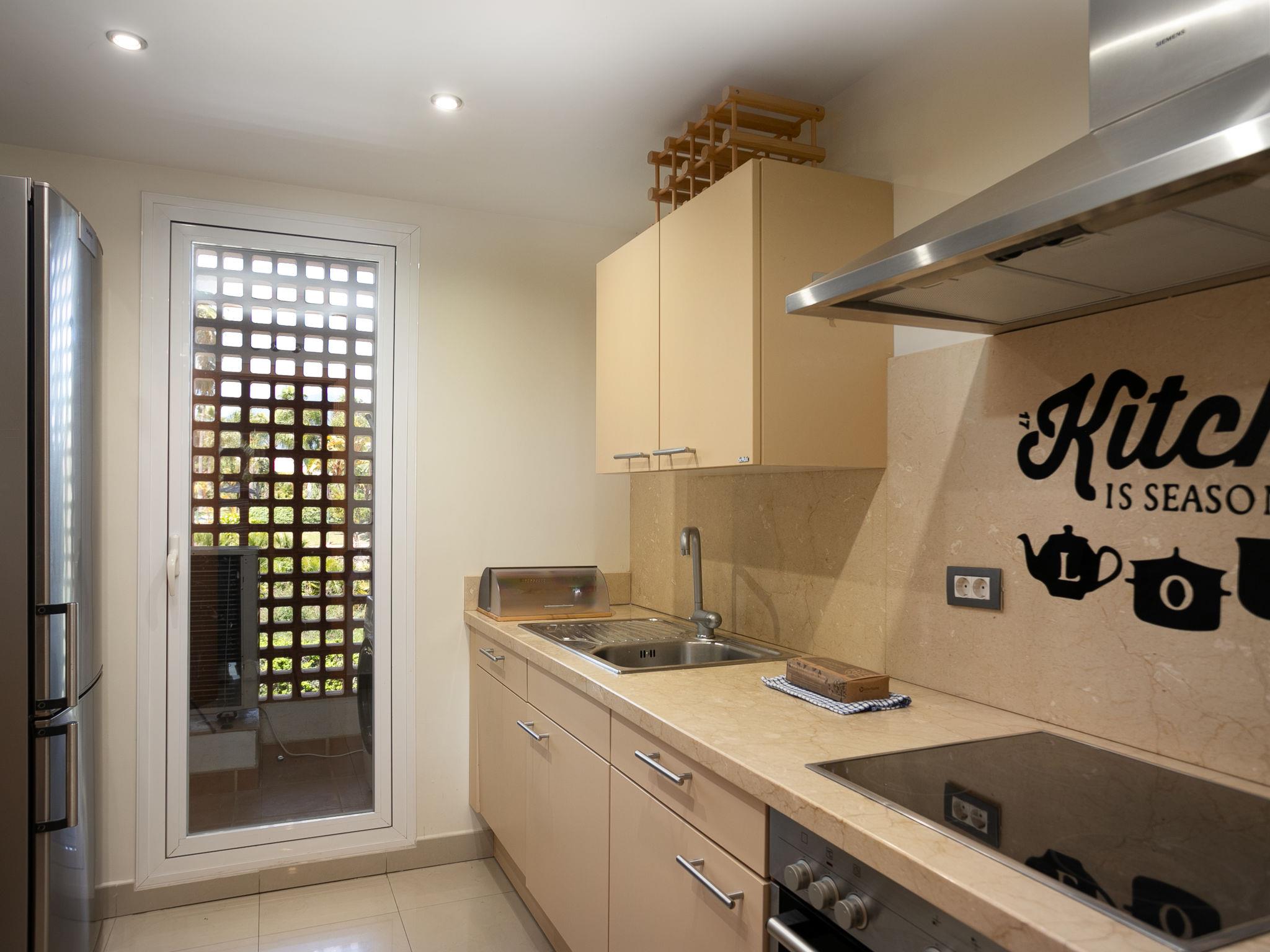 "Cortijo oceania", 3-room apartment 106 m2 on 1st floor. Living/dining room with digital TV, air conditioning and forced-air heating. Exit to the terrace. 1 room with 1 french bed (180 cm, length 200 cm), bath/WC (private) air conditioning and forced-air heating. 1 room with 2 beds (90 cm, length 200 cm). Kitchen (oven, dishwasher, 4 ceramic glass hob hotplates, toaster, kettle, microwave, freezer, electric coffee machine). Shower/WC. Large terrace. Terrace furniture, barbecue, deck chairs (2). View of the swimming pool and the countryside. Facilities: washing machine, iron, children's high chair, baby cot, hair dryer. Internet (WiFi, free). Parking space n 11. Please note: non-smokers only. VUT/MA/89927 // Reg. Nr.: ESFCTU0000290370004886940000000000000000VUT/MA/899278