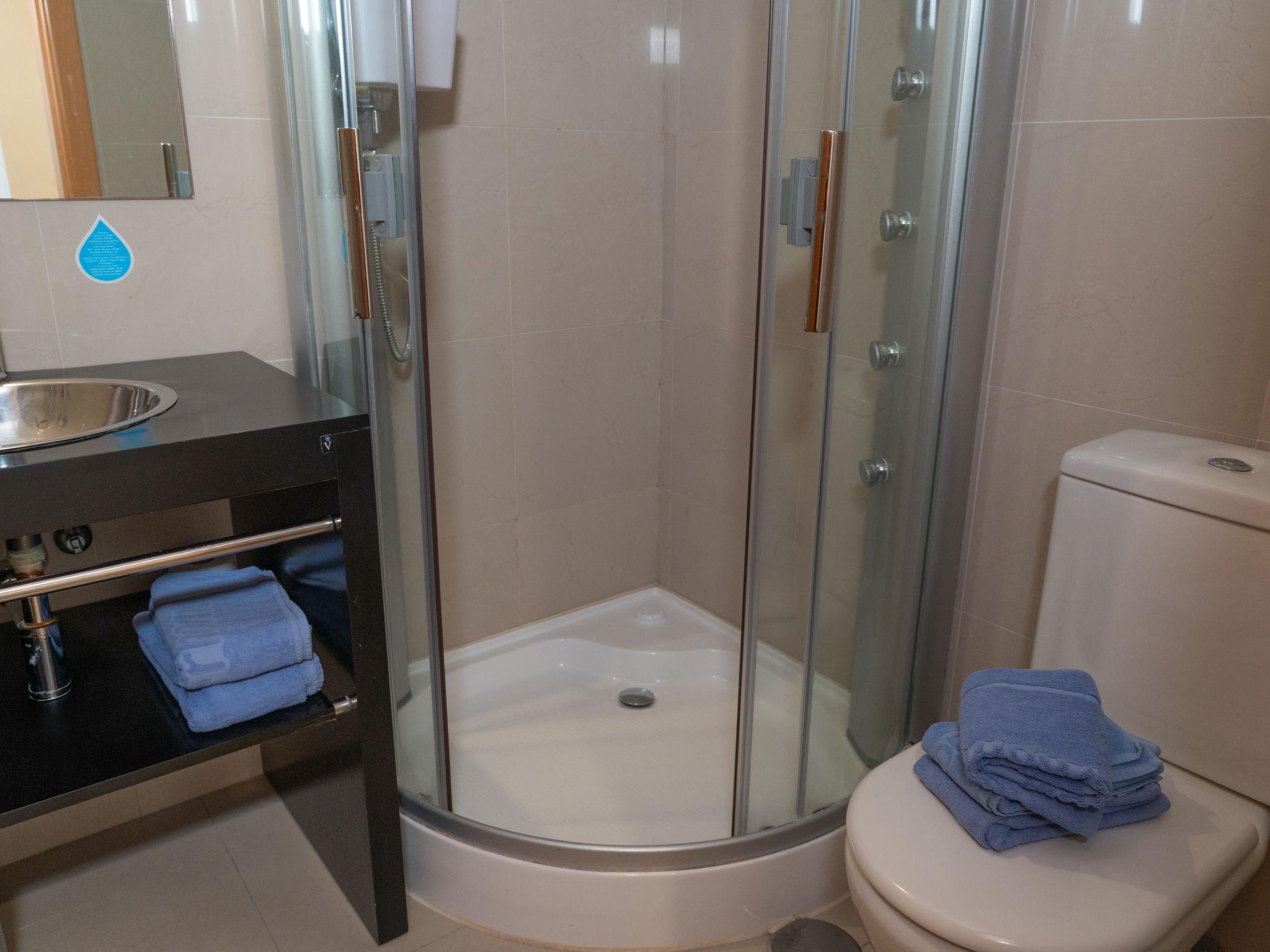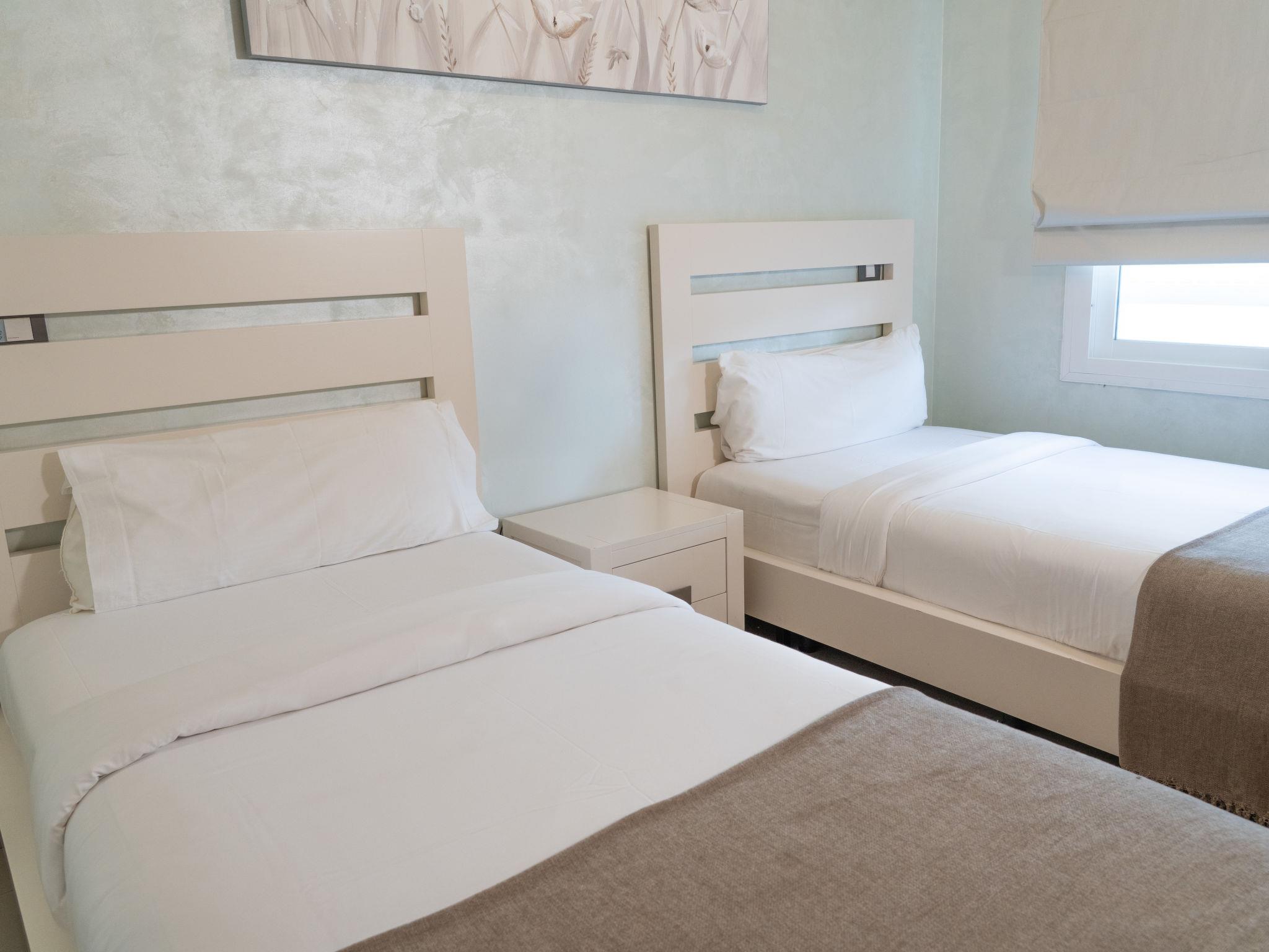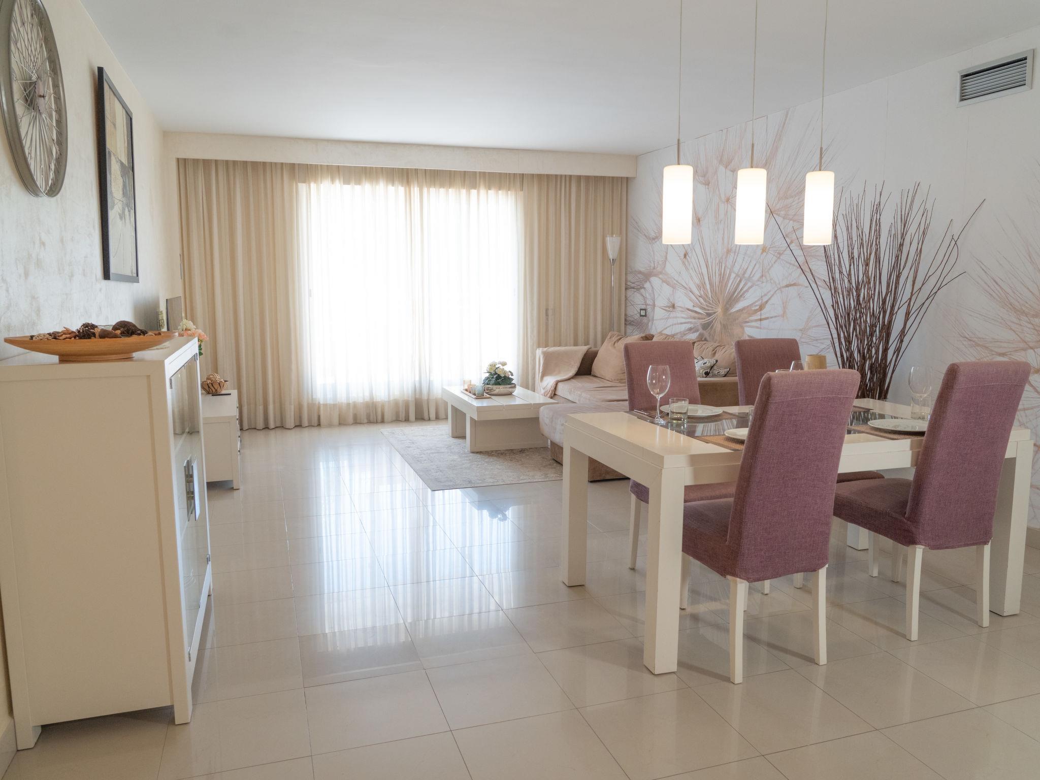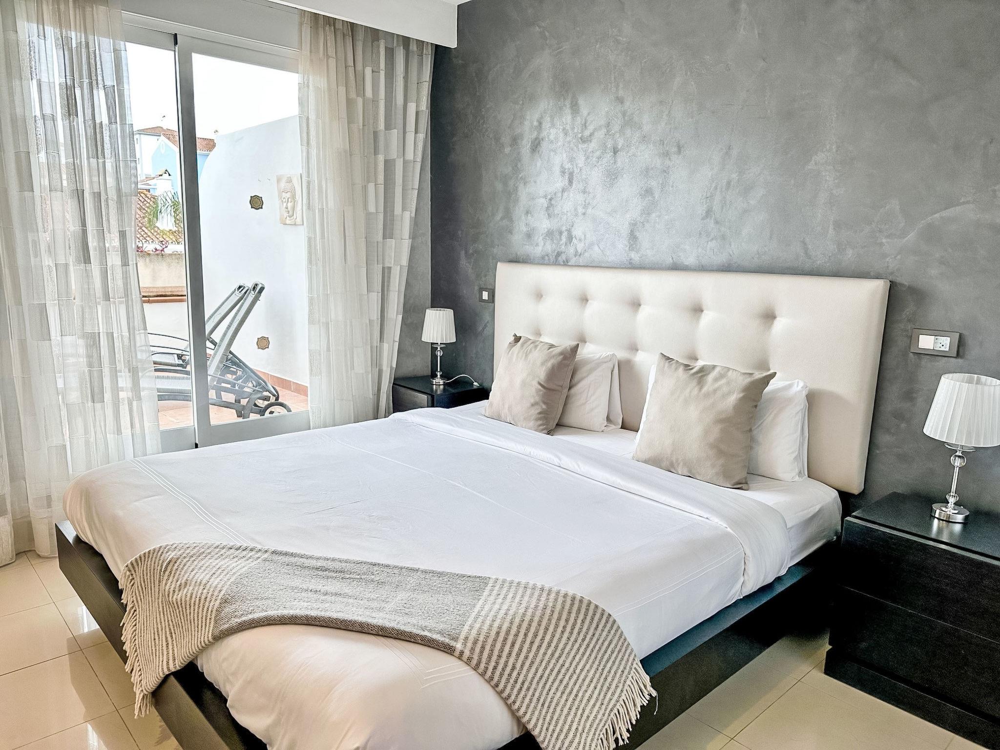 "Cortijo Aqua Marina", 3-room apartment 106 m2, south facing position. Bright, very comfortable and beautiful furnishings: living/dining room with satellite TV, air conditioning and forced-air heating. Exit to the terrace. 1 room with 1 french bed (180 cm, length 200 cm), bath/WC, double hand-basin and hydro massage shower (private) air conditioning, forced-air heating and electric shutters. Exit to the terrace. 1 room with 2 beds (105 cm, length 200 cm), air conditioning and forced-air heating. Kitchen (oven, dishwasher, 4 ceramic glass hob hotplates, toaster, kettle, microwave, freezer, electric coffee machine). Shower/WC. Terrace. Terrace furniture. View of the swimming pool and the garden. Facilities: washing machine, iron, children's high chair, baby cot, hair dryer. Internet (WiFi, free). Garage space n 13. VUT/MA/90596 // Reg. Nr.: ESFCTU0000290370004887170000000000000000VUT/MA/905968